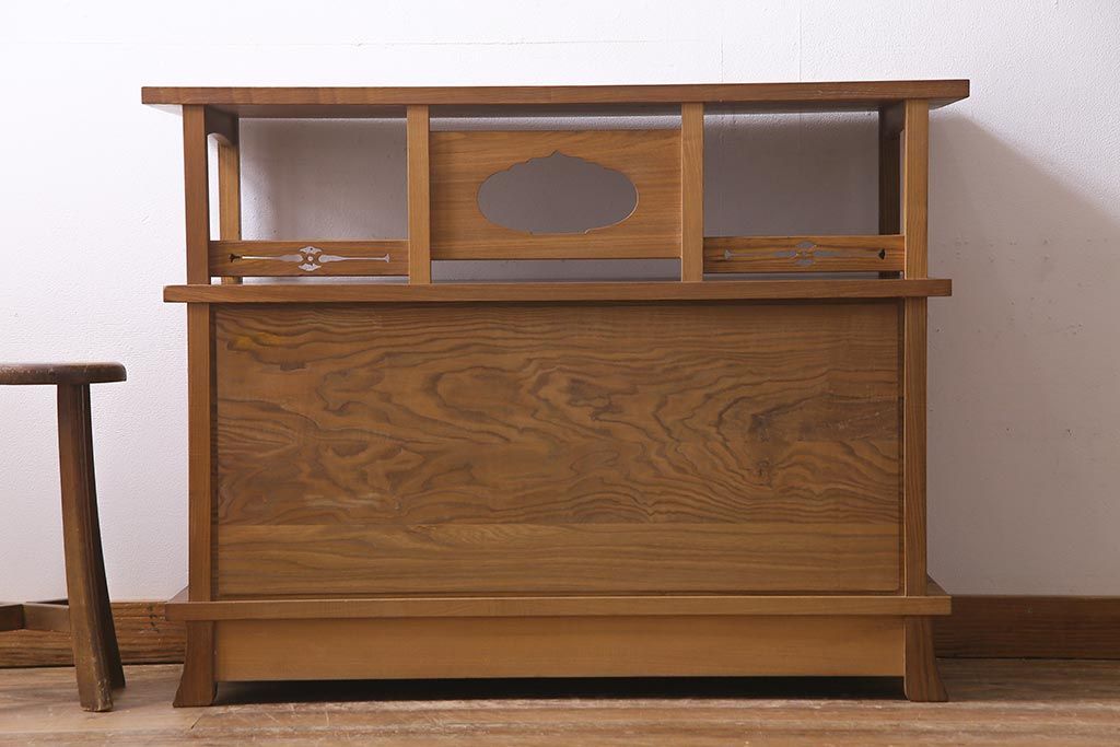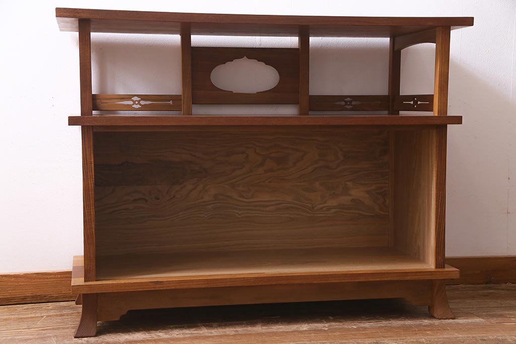 中古 指物工芸家具 桑総無垢材 高級品!和の趣たっぷりの茶箪笥(飾り棚)(R-038133)(定価約80万円)