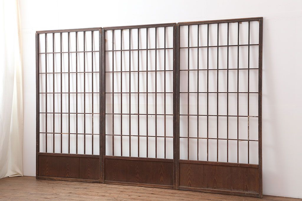ラフジュ工房> ドア・建具> 引き戸 > アンティーク建具 昭和初期 シンプルデザインの和レトロな障子戸3枚セット(引き戸、建具)(R-037083)
