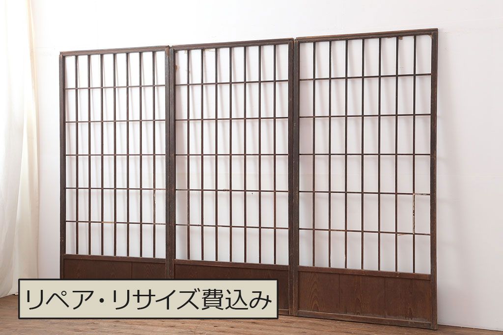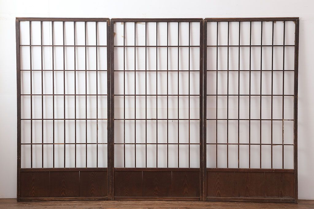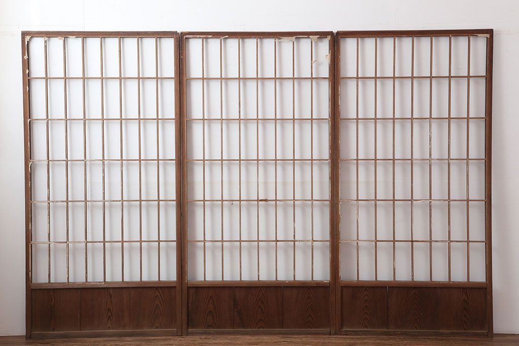 アンティーク建具 昭和初期 シンプルデザインの和レトロな障子戸3枚セット(引き戸、建具)(R-037083)
