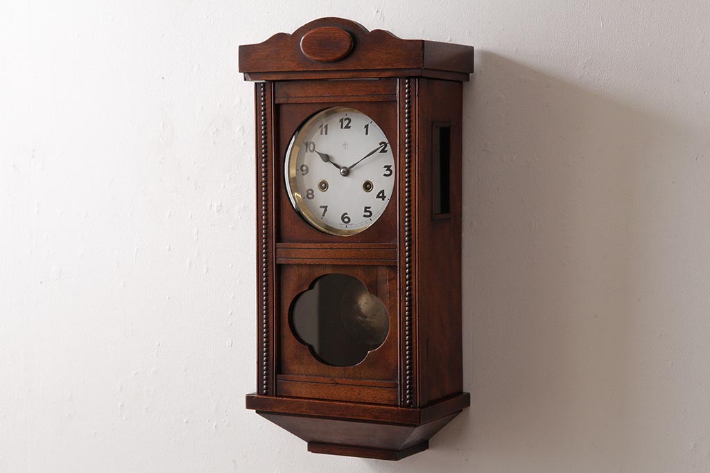時計> 掛け時計 > アンティーク雑貨 JUNGHANS(ユンハンス)社 手巻き式 レトロシックな振り子時計(柱時計、掛け時計、古時計)(R-037777)
