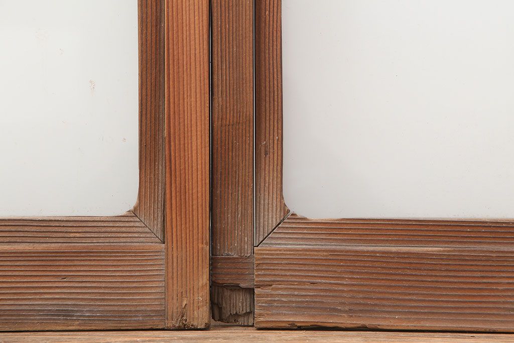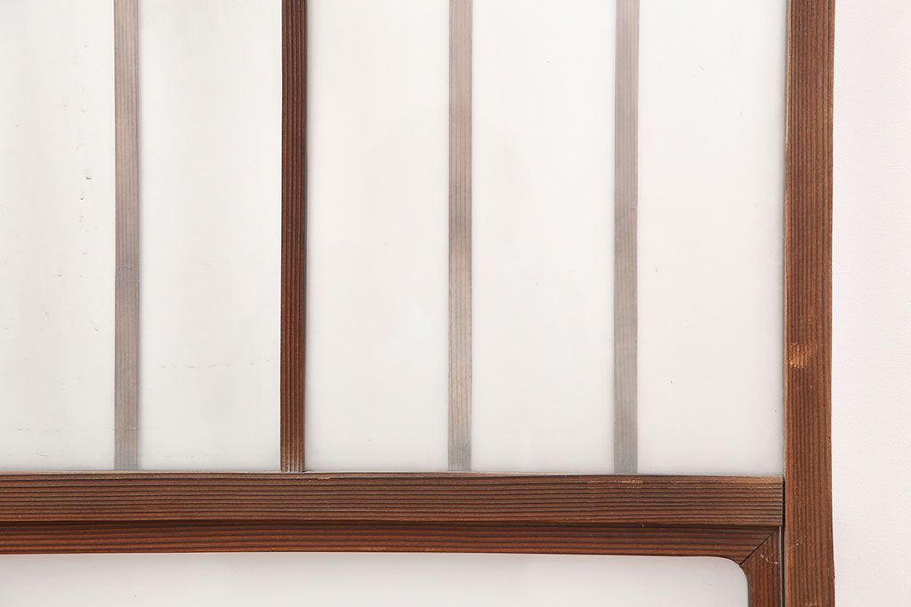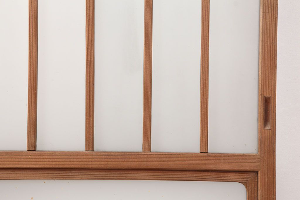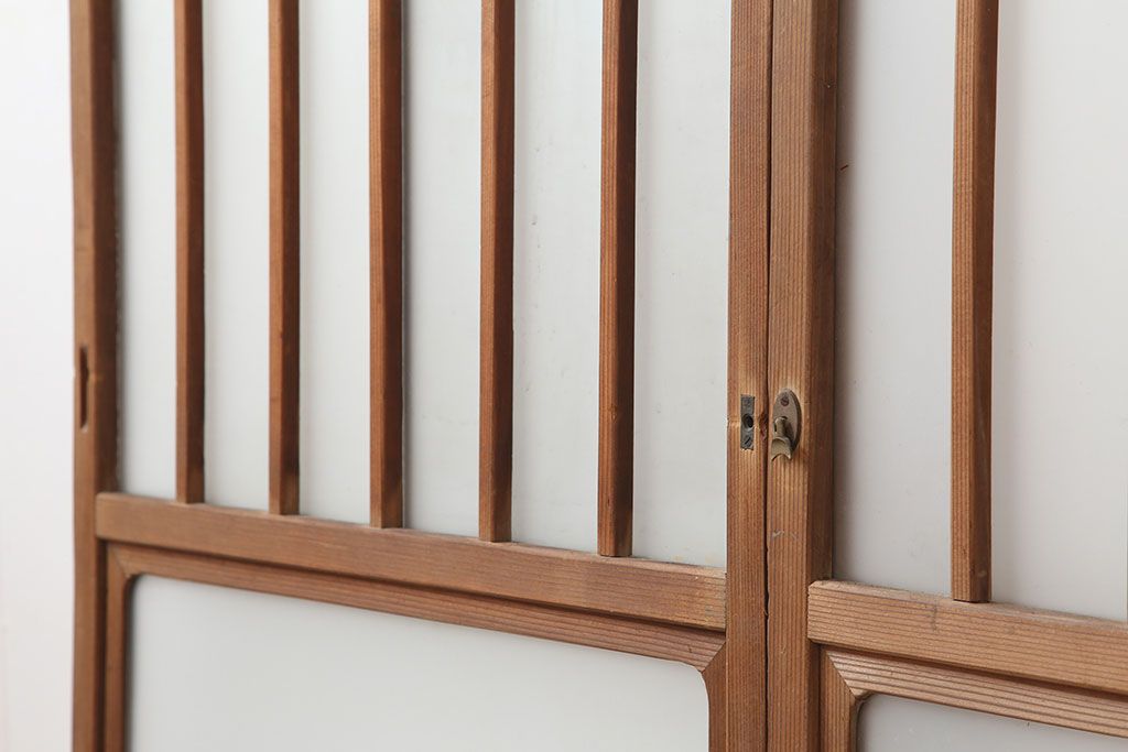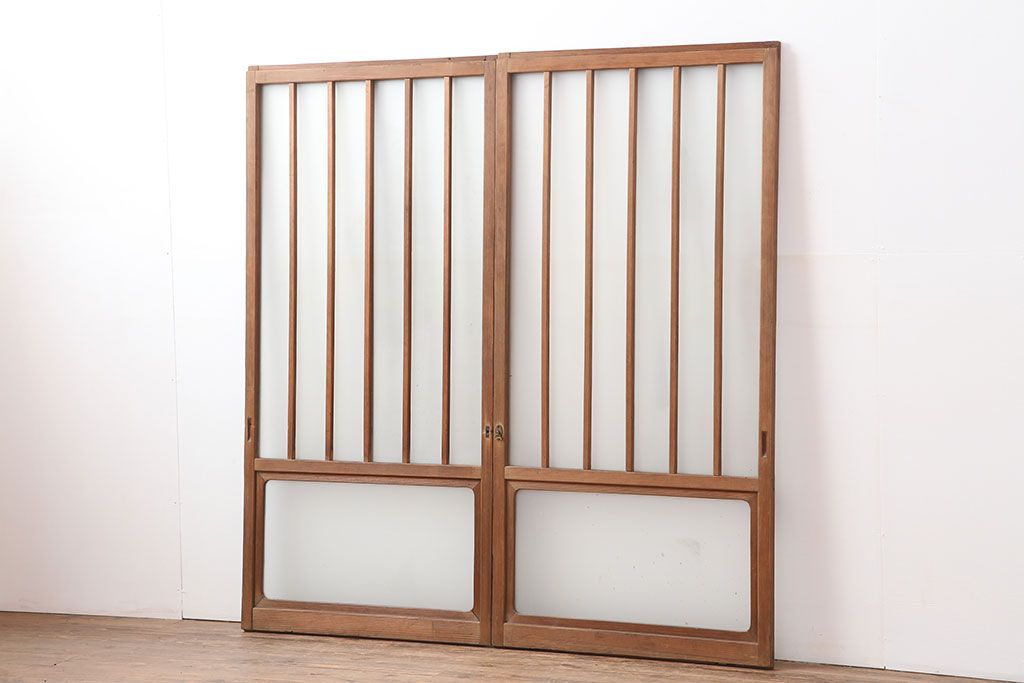 ラフジュ工房> ドア・建具> 窓 > アンティーク建具 和製アンティーク 大正期 縦桟が入ったシンプルな木製フレームのガラス戸2枚セット(窓、引き戸)(R-037121)