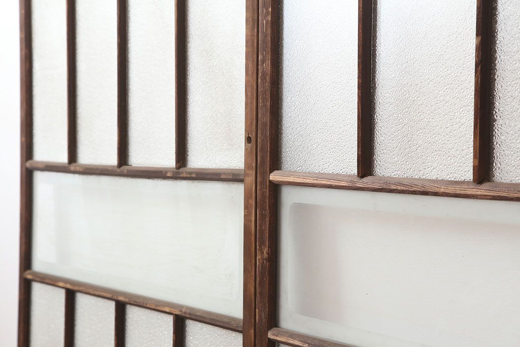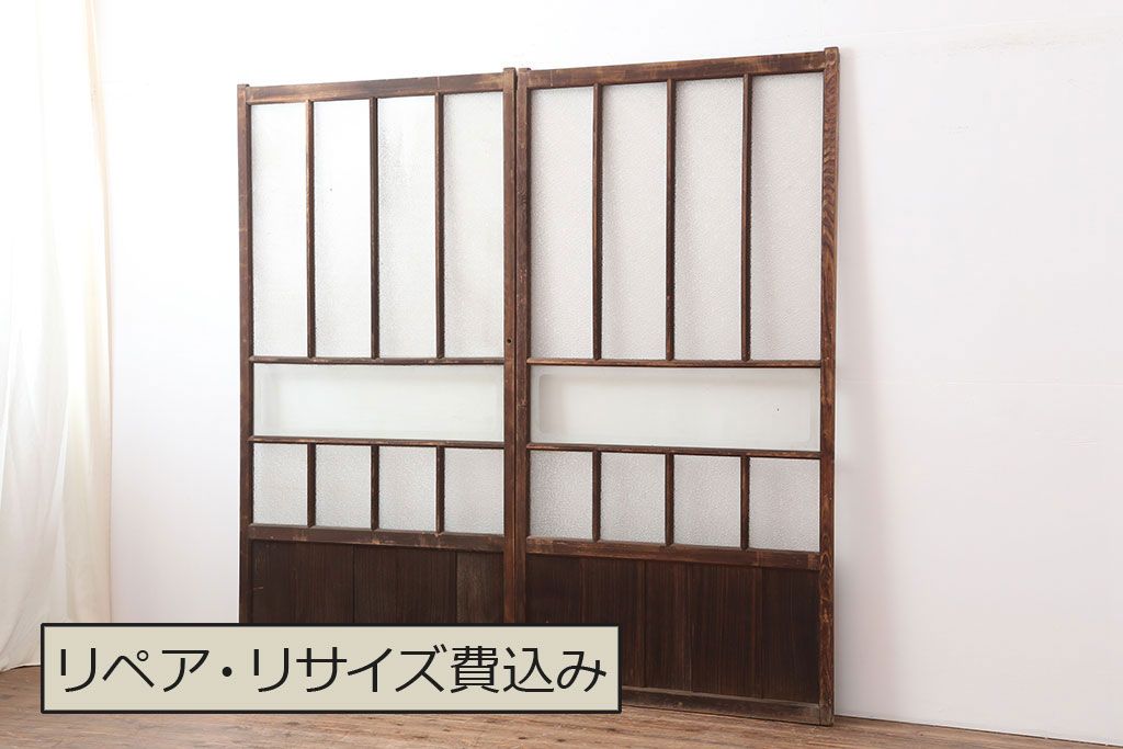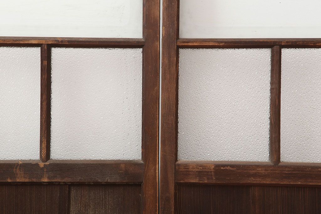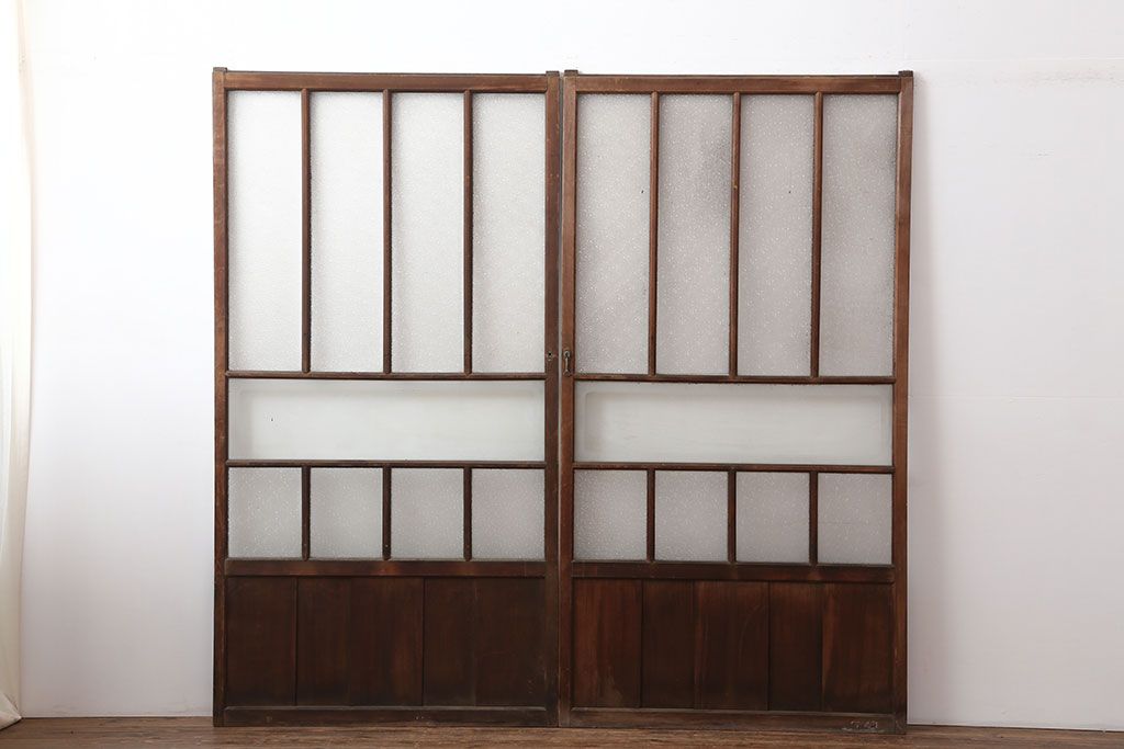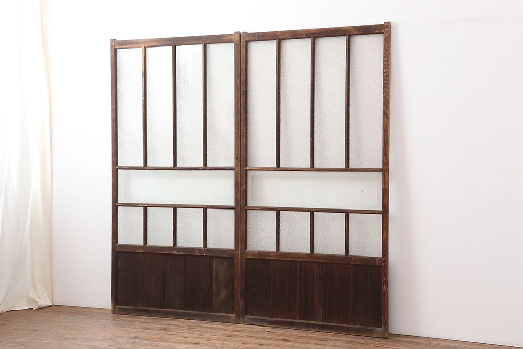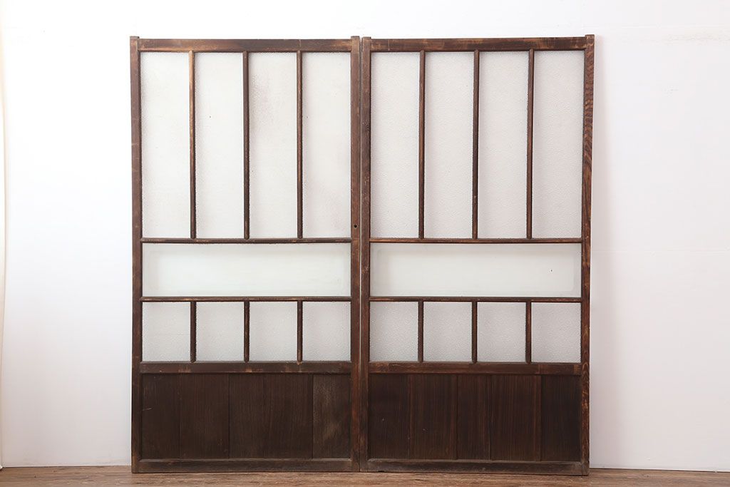 アンティーク建具 レトロ シンプルで使いやすいガラス戸2枚セット(引き戸、建具)(R-037096)