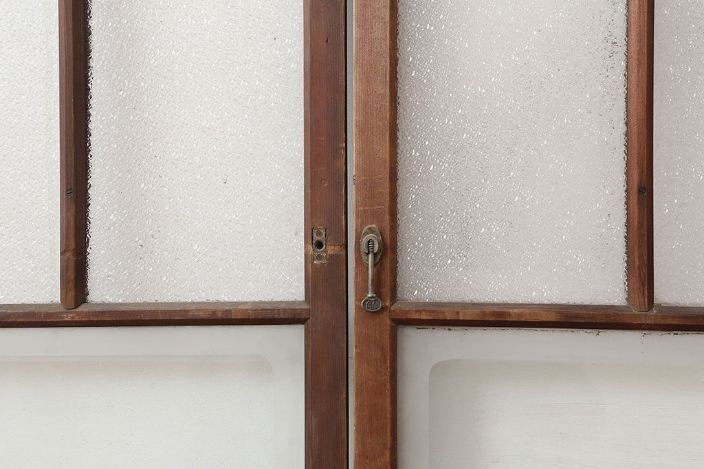 ラフジュ工房> ドア・建具> ガラス戸 > アンティーク建具 レトロ シンプルで使いやすいガラス戸2枚セット(引き戸、建具)(R-037096)