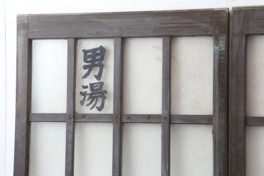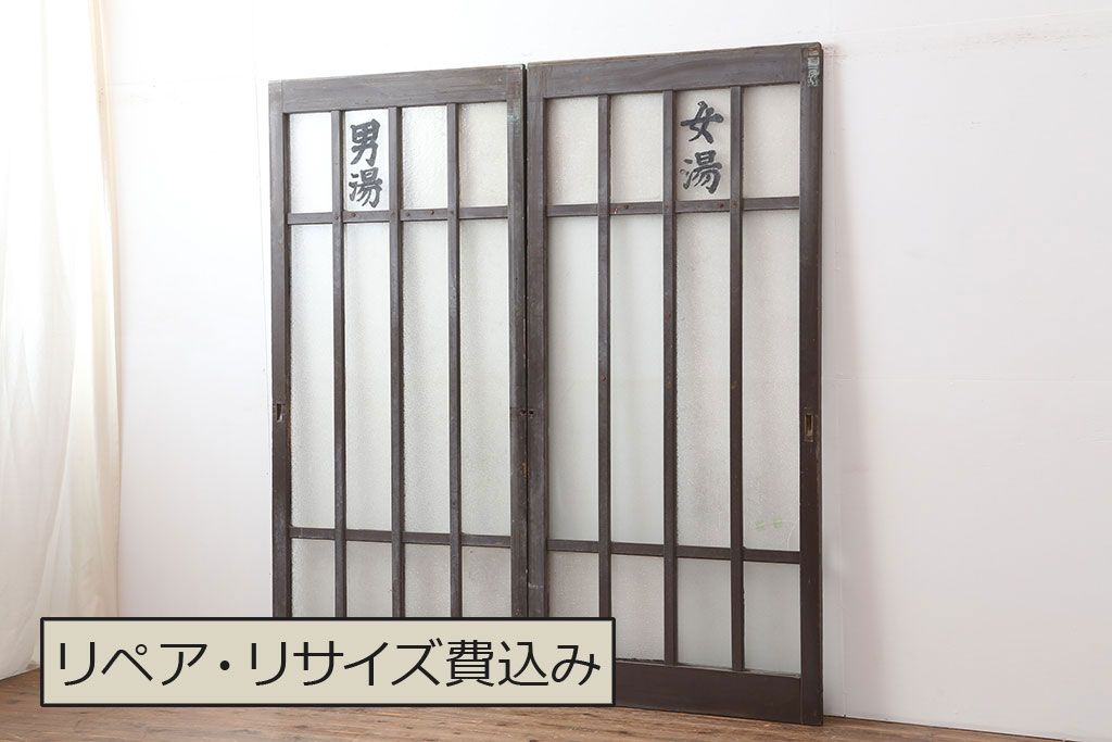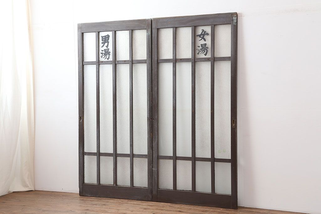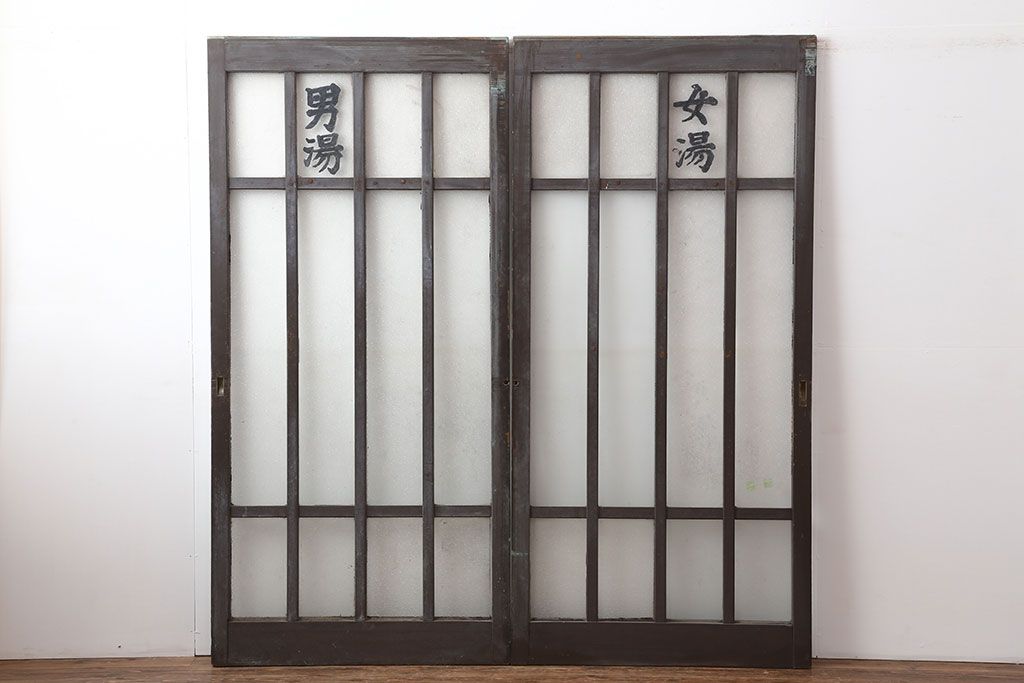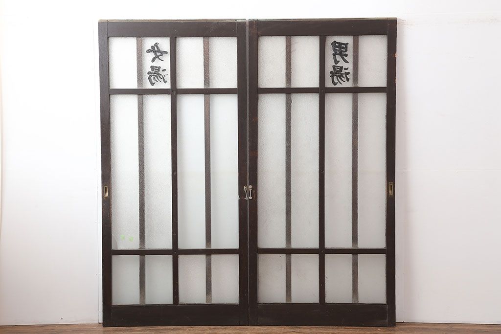 レトロ建具 昭和初期 ノスタルジックな雰囲気が魅力的なガラス戸2枚セット(引き戸、建具)(R-037091)