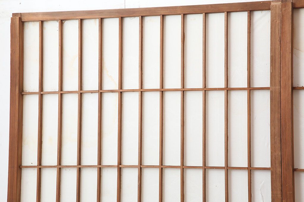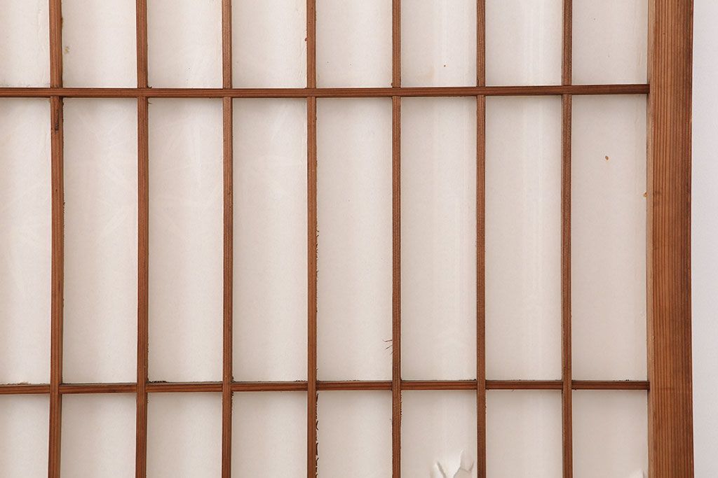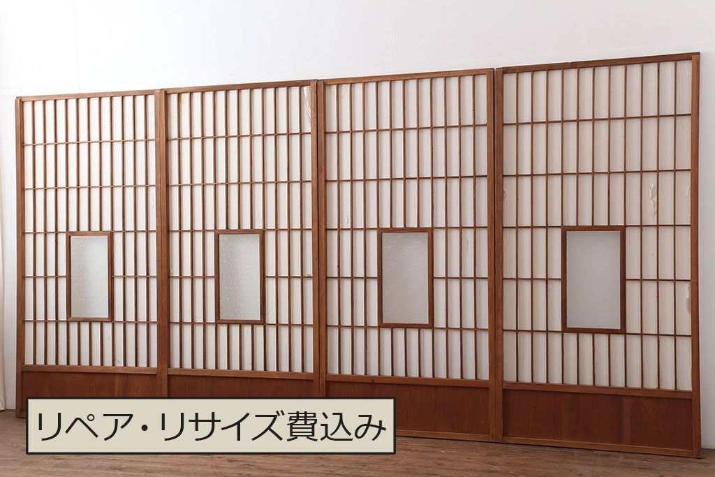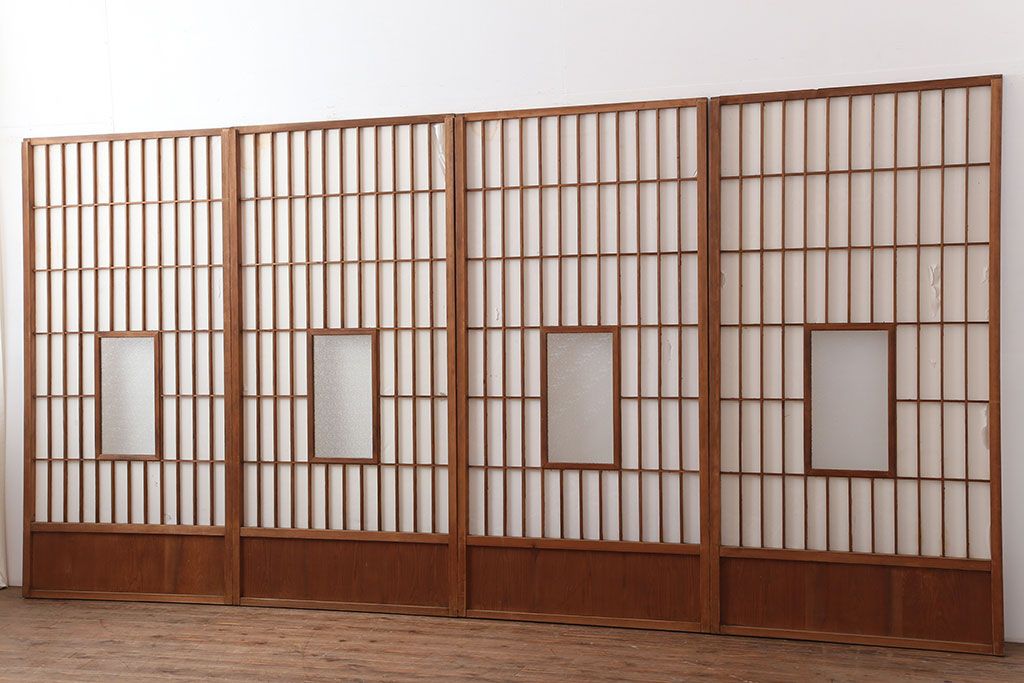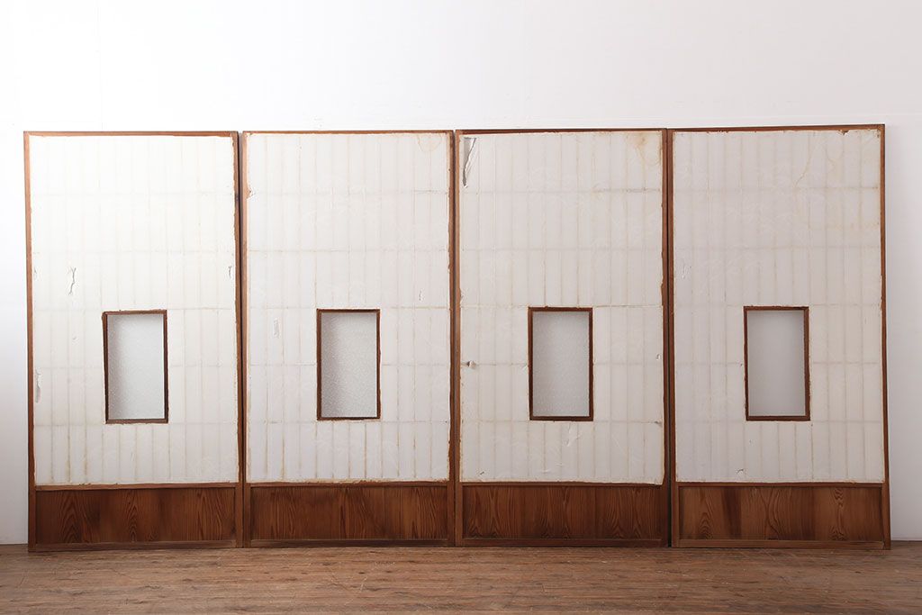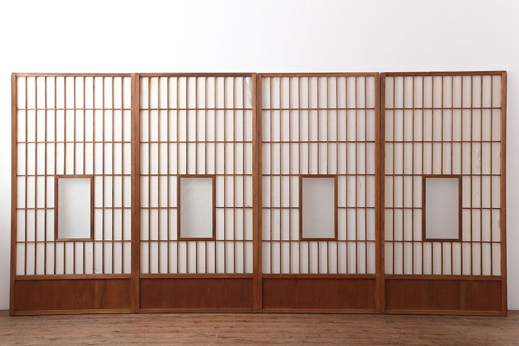 アンティーク建具 木味が魅力の縦額入り障子戸4枚セット(引き戸、建具)(R-037102)