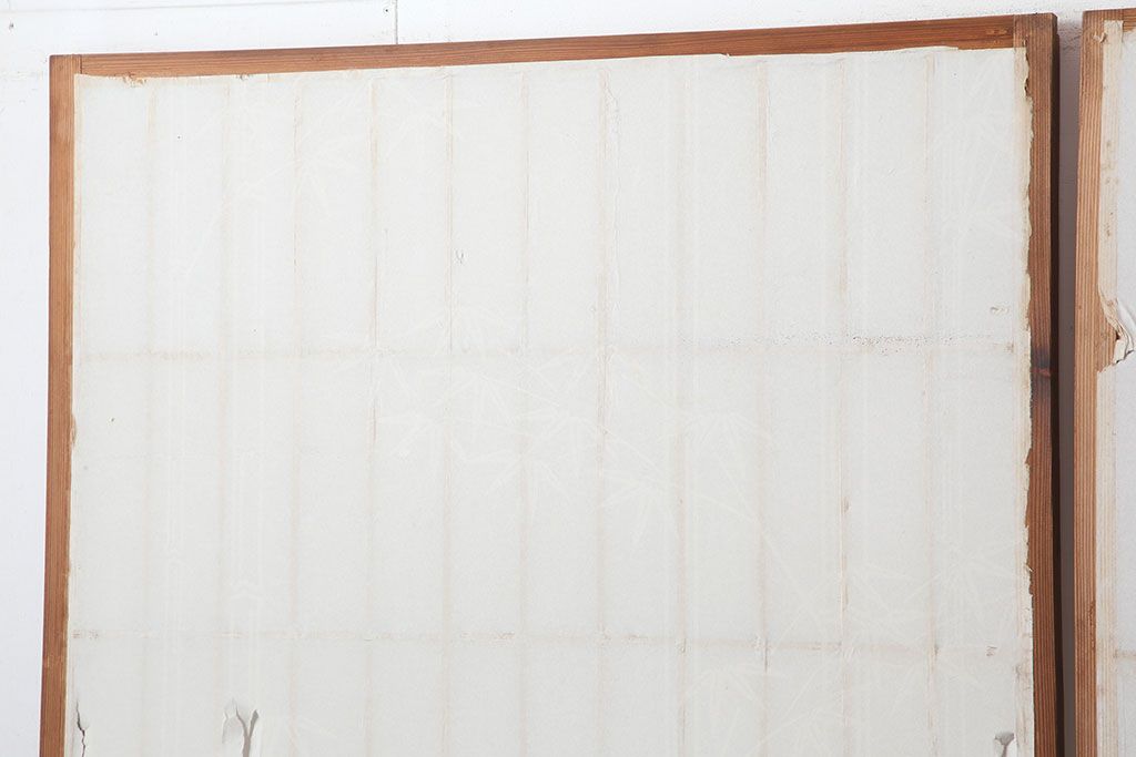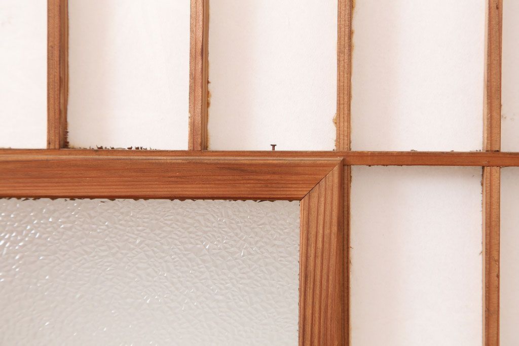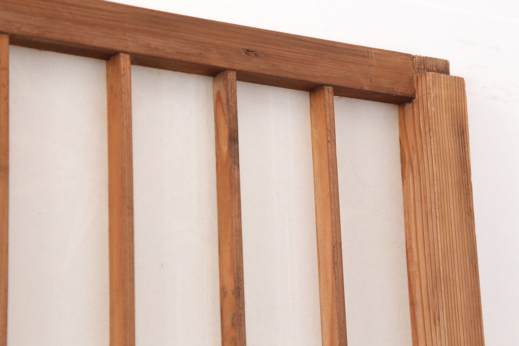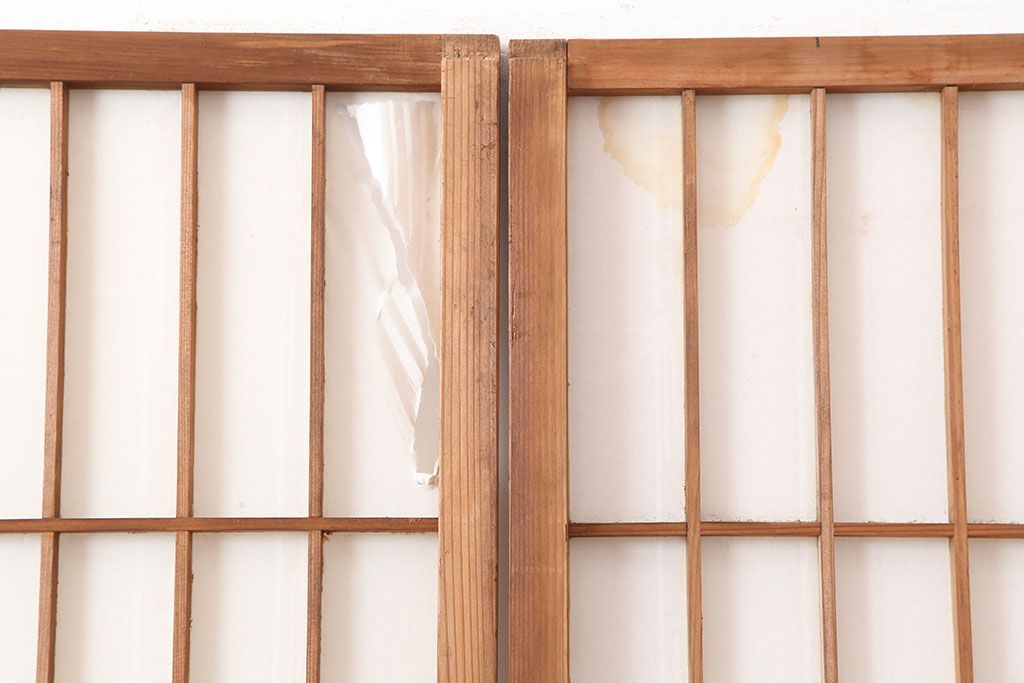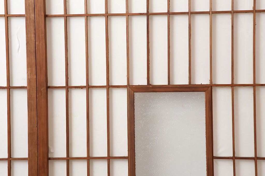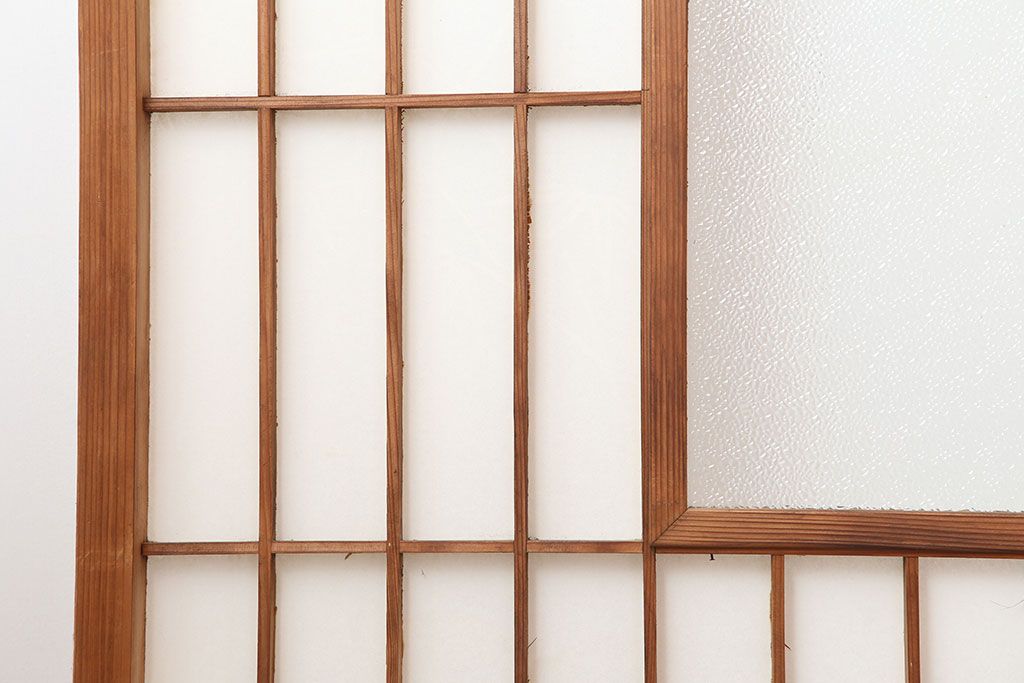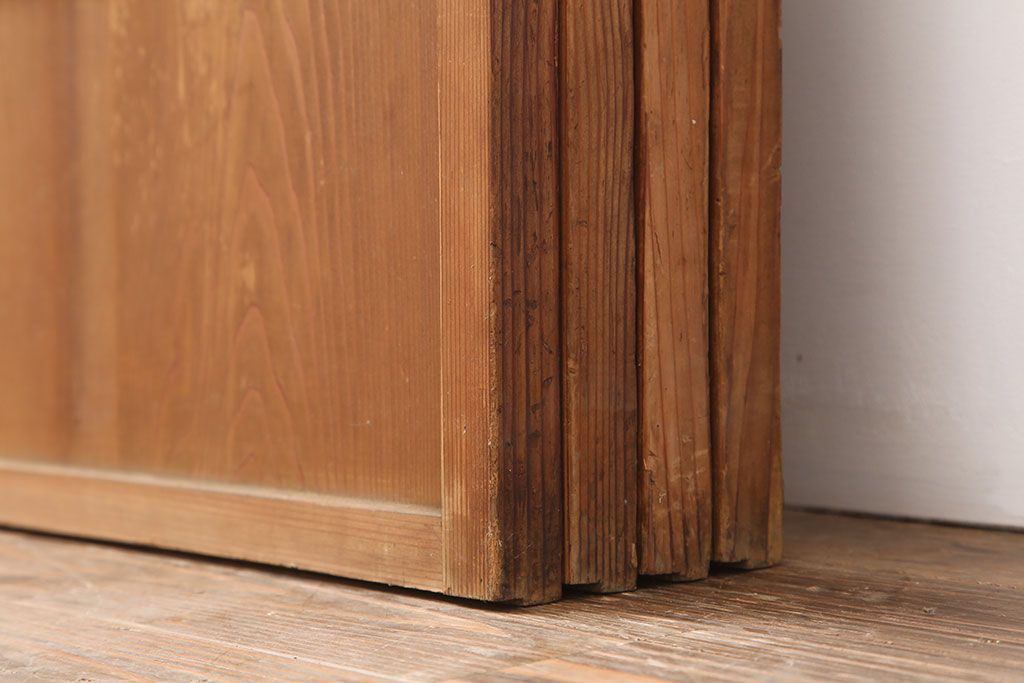 アンティーク建具 木味が魅力の縦額入り障子戸4枚セット(引き戸、建具)(R-037102)