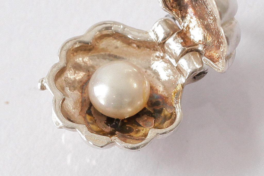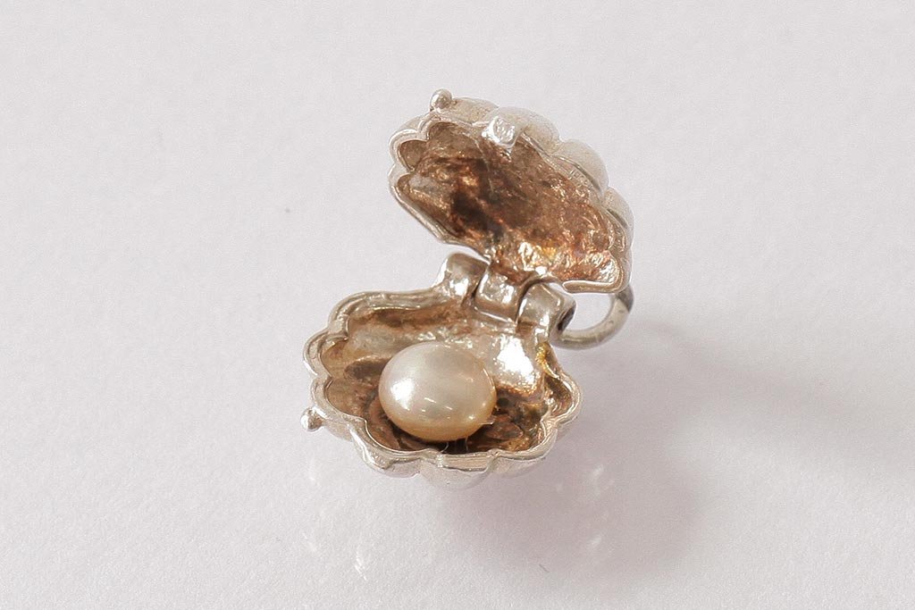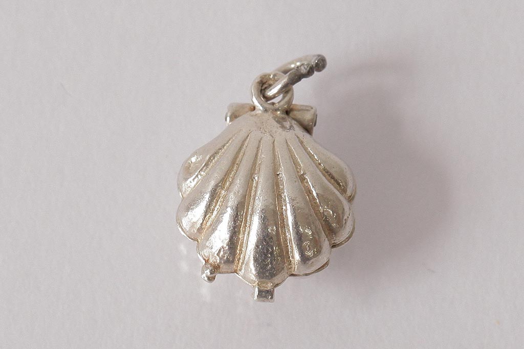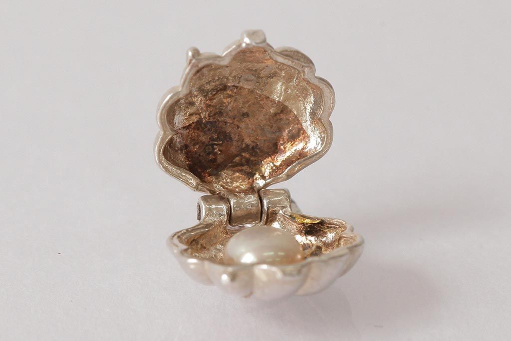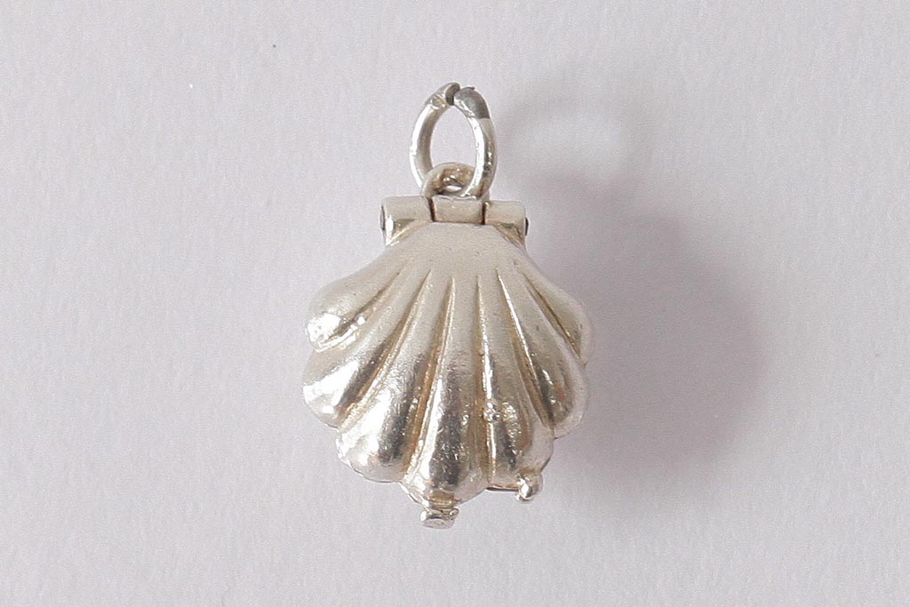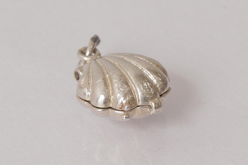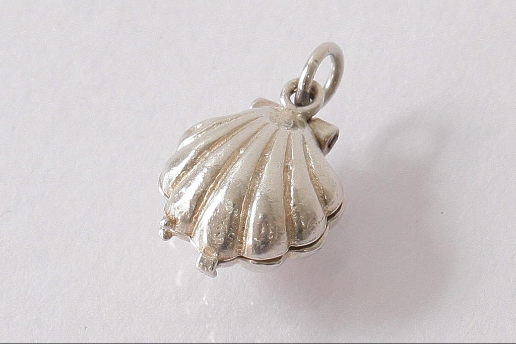 ラフジュ工房> アクセサリー > アンティーク雑貨 イギリスビンテージ シルバー ぷっくりしたデザインの開くシェル型チャーム(ペンダントトップ、アクセサリー、貝パール)(R-038142)