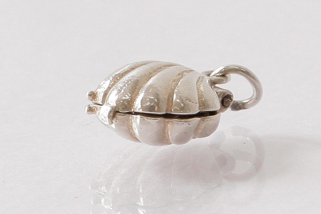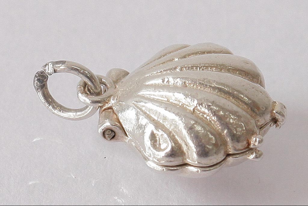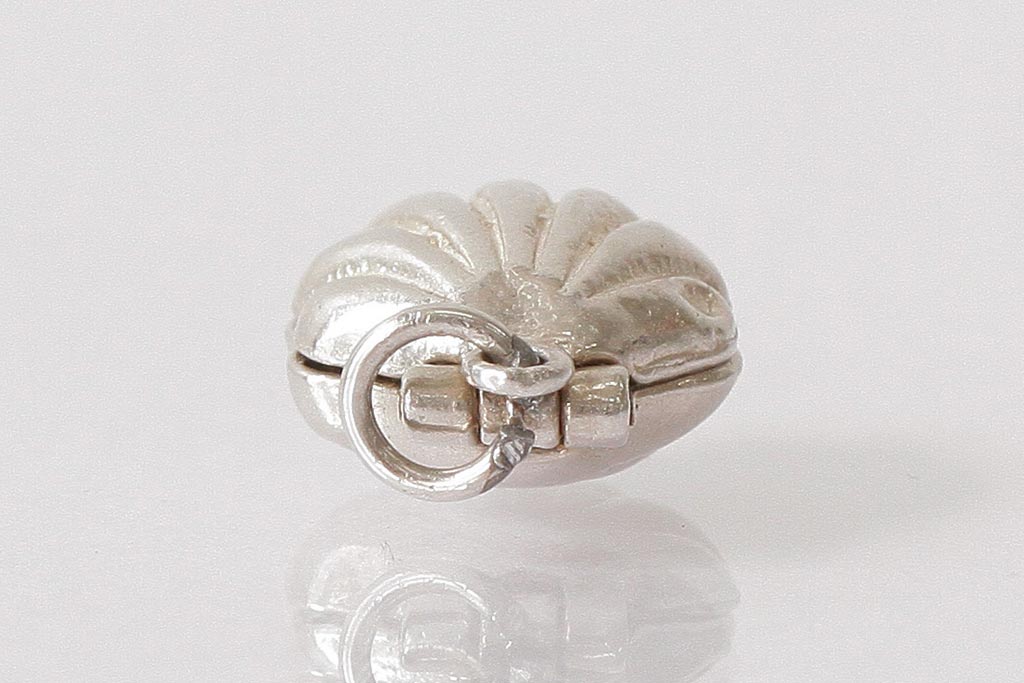 ラフジュ工房> 雑貨 > アンティーク雑貨 イギリスビンテージ シルバー ぷっくりしたデザインの開くシェル型チャーム(ペンダントトップ、アクセサリー、貝パール)(R-038142)