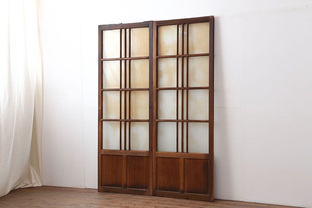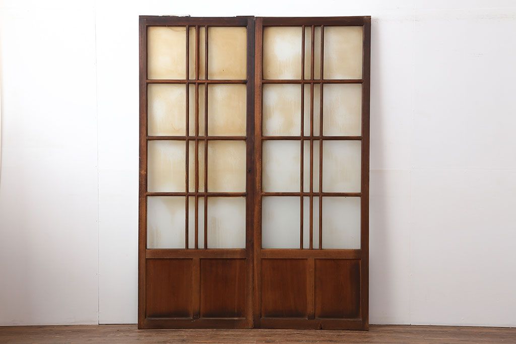 ラフジュ工房> ドア・建具> 2枚・3枚セット > レトロ建具 昭和レトロ 昭和中期 シンプルさが魅力のガラス戸2枚セット(引き戸、建具)(R-037117)