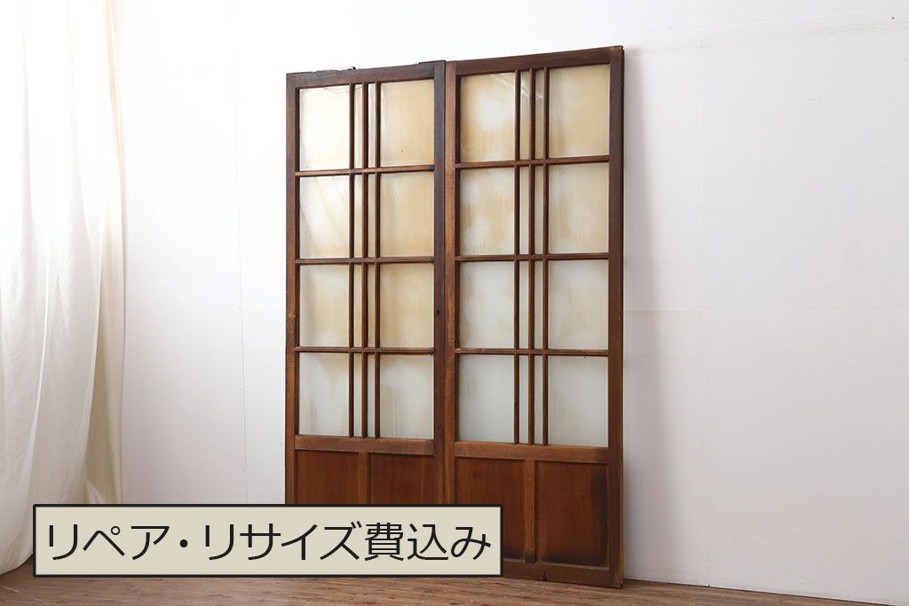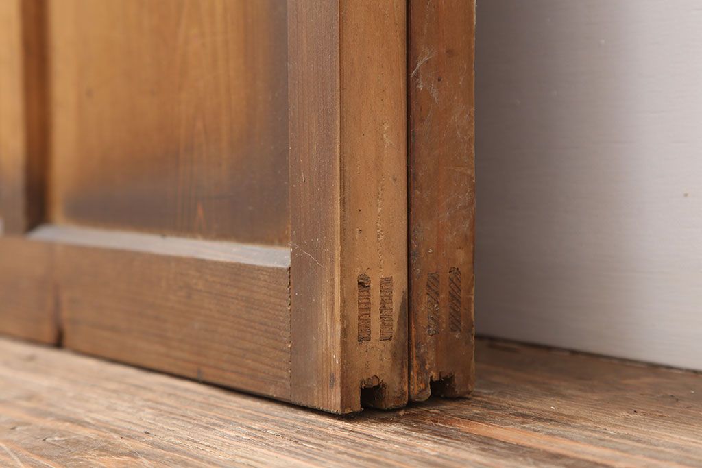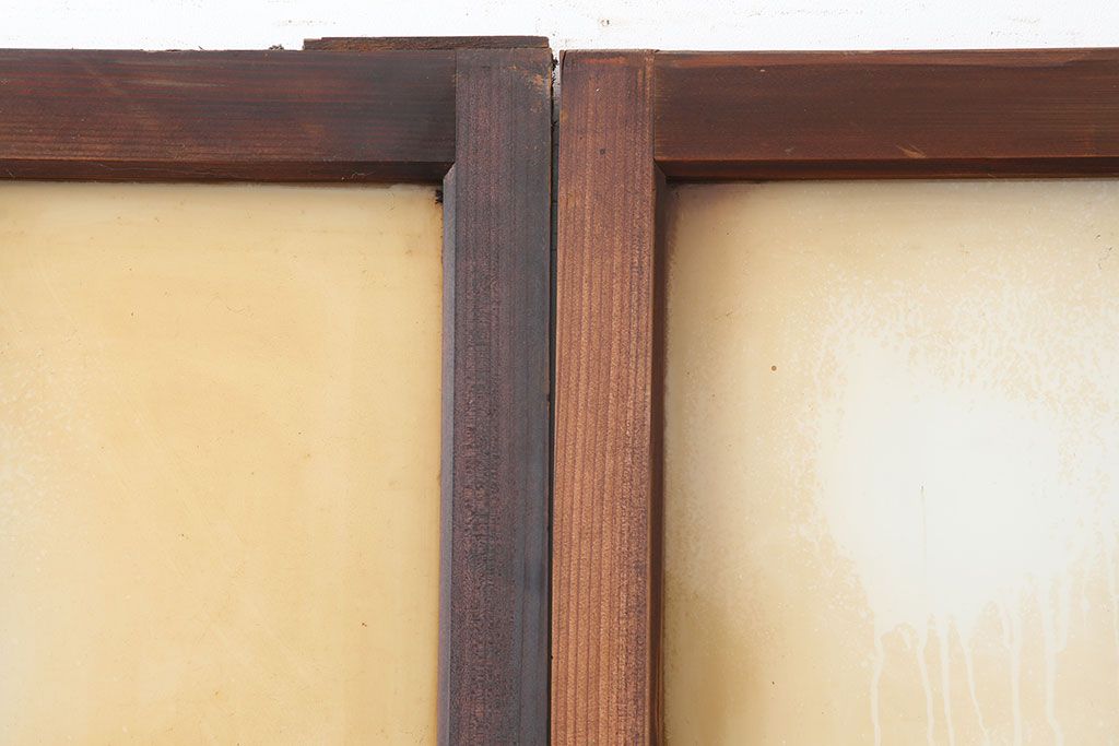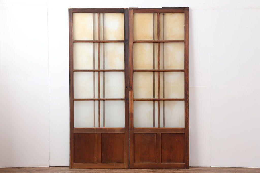 レトロ建具 昭和レトロ 昭和中期 シンプルさが魅力のガラス戸2枚セット(引き戸、建具)(R-037117)