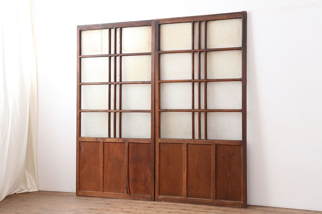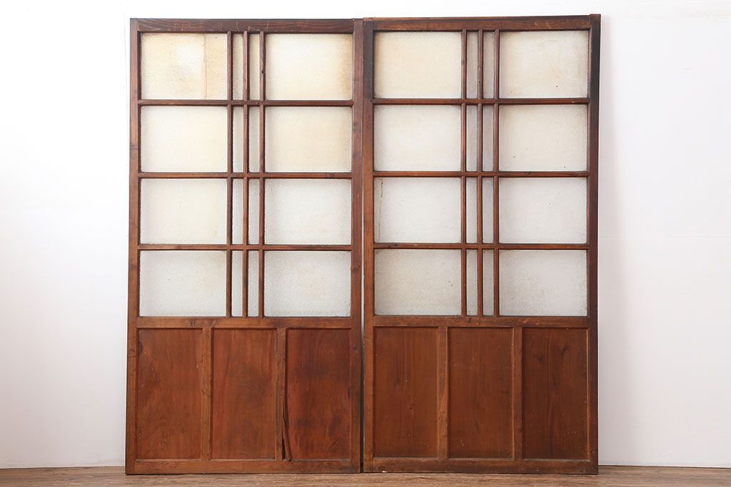 ドア・建具> ガラス戸 > レトロ建具 昭和レトロ 昭和初期 幅広いテイストとマッチするシンプルなガラス戸2枚セット(引き戸、建具)(R-037118)