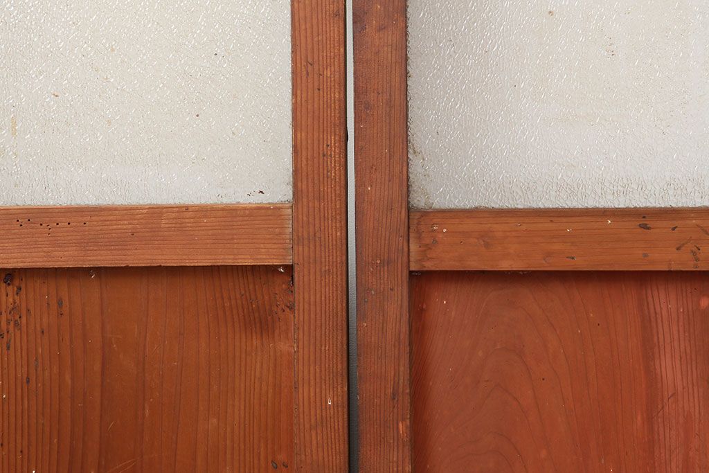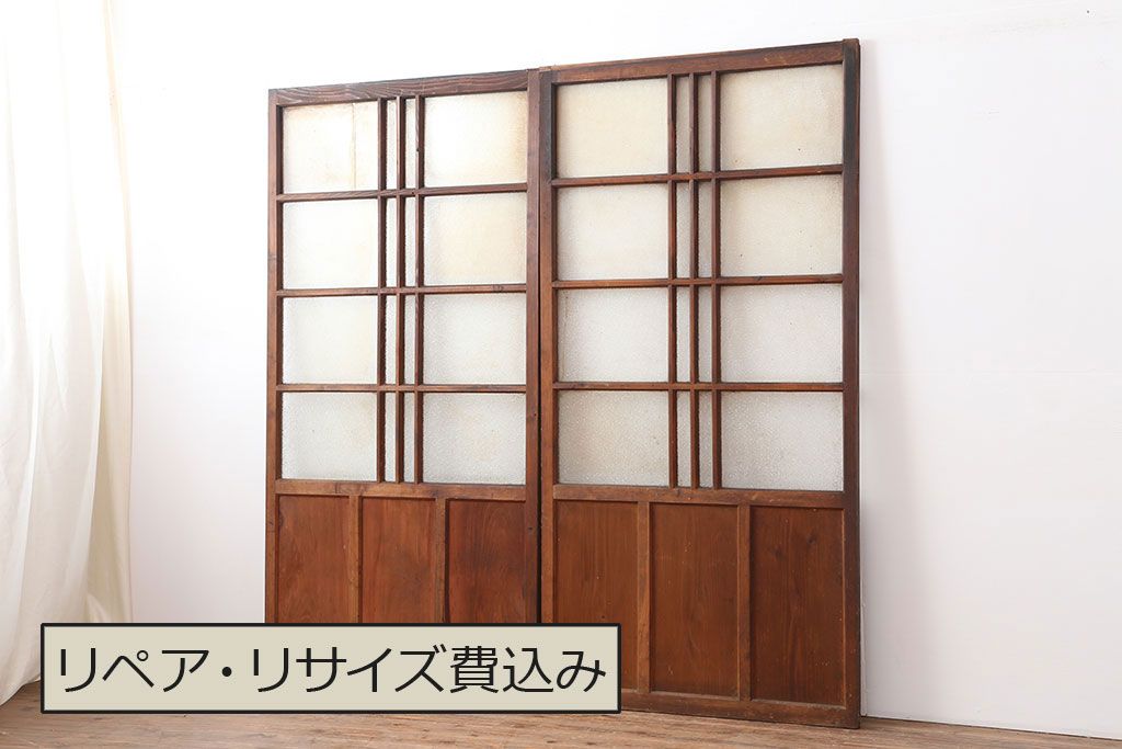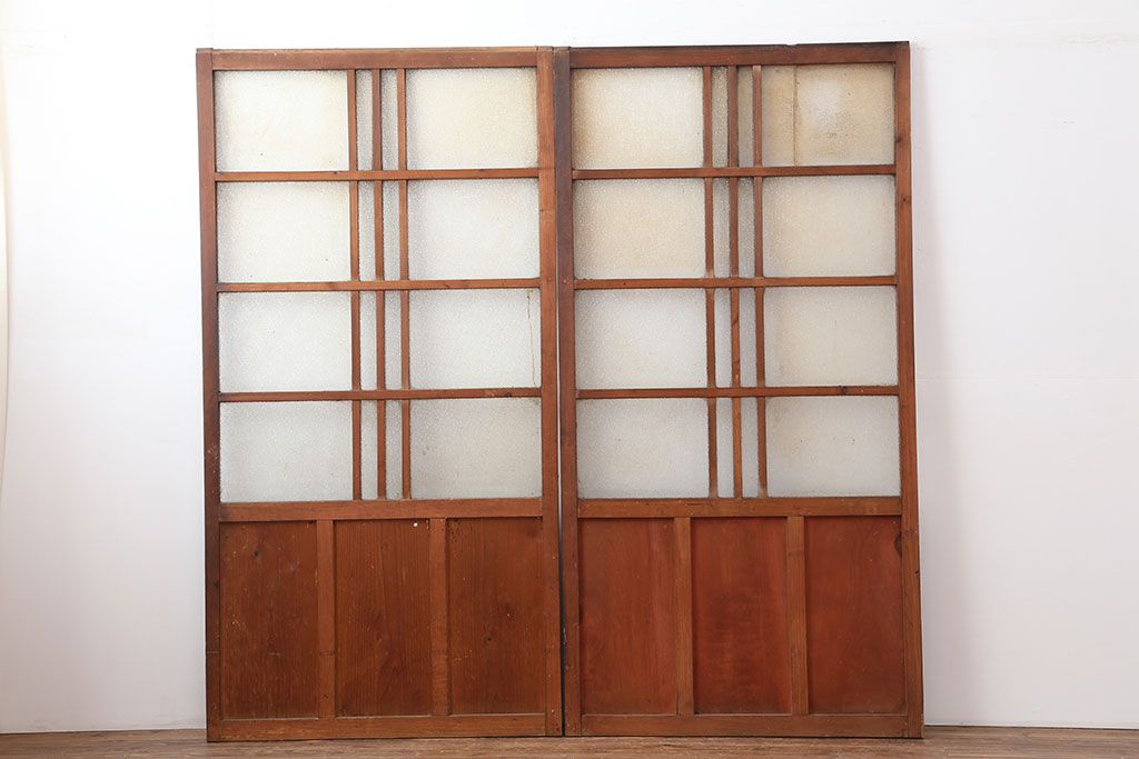 レトロ建具 昭和レトロ 昭和初期 幅広いテイストとマッチするシンプルなガラス戸2枚セット(引き戸、建具)(R-037118)