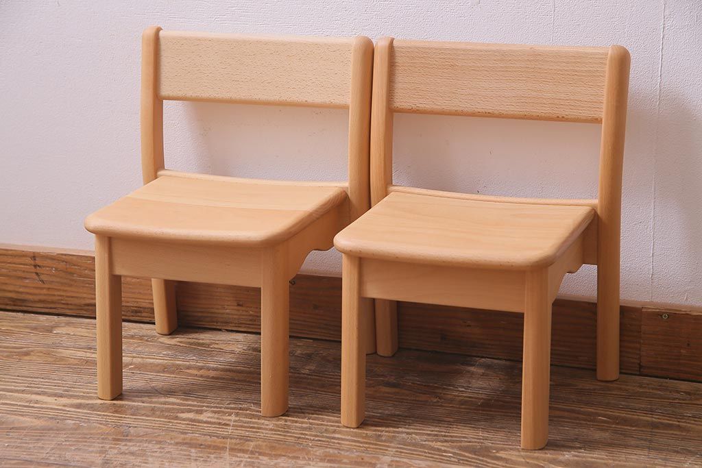 中古 飛騨産業 キツツキ KF202B ビーチ材 キッズスタッキングチェア2脚セット(子供椅子)(R-038164)です。