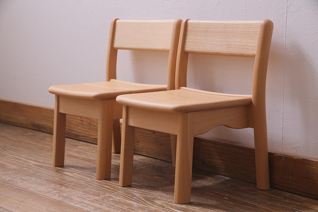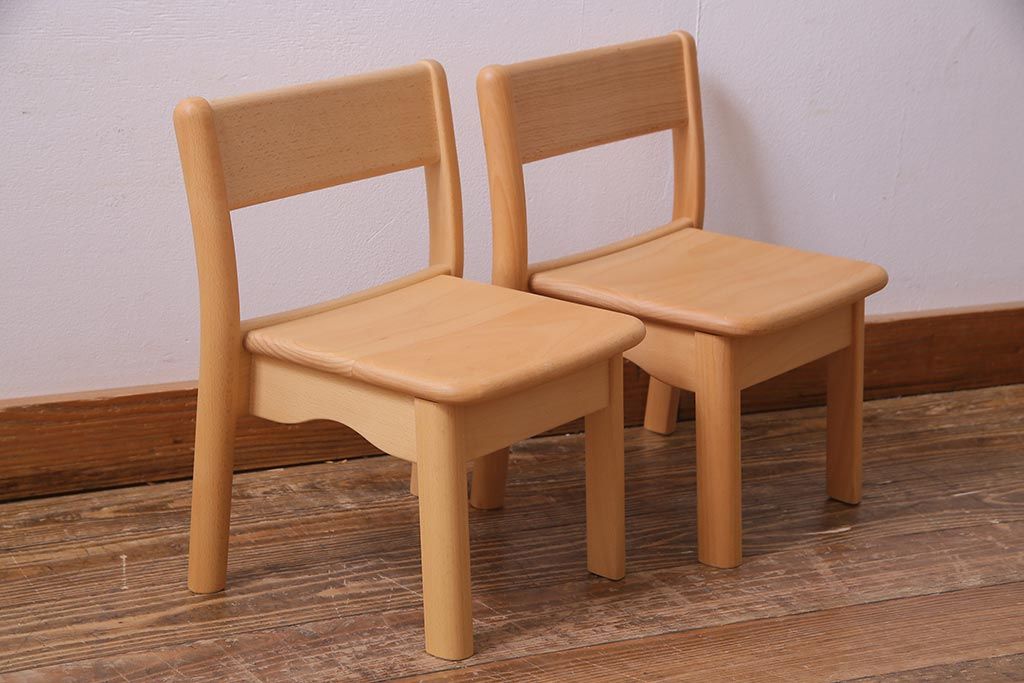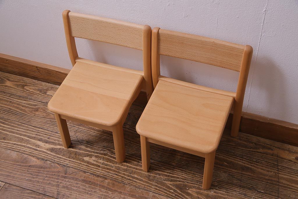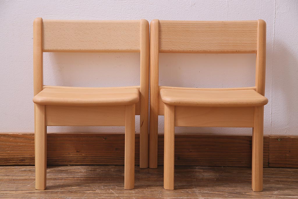 中古 飛騨産業 キツツキ KF202B ビーチ材 キッズスタッキングチェア2脚セット(子供椅子)(R-038164)