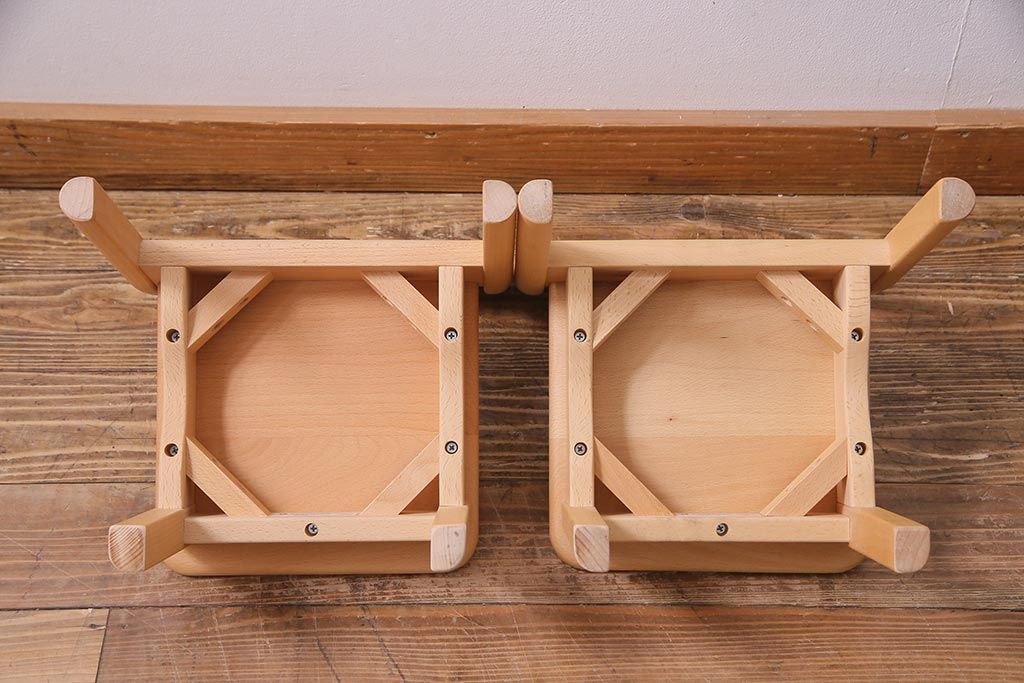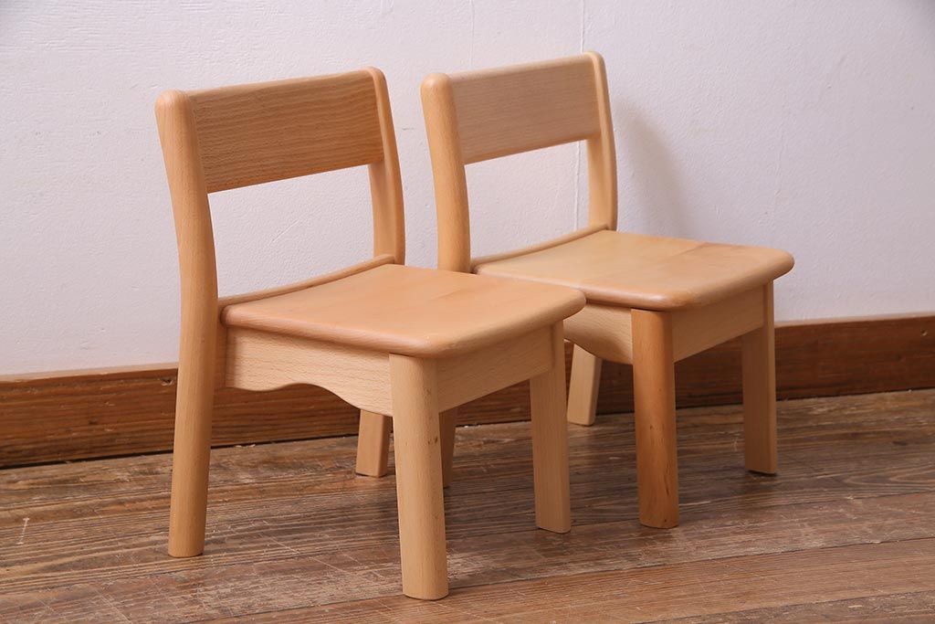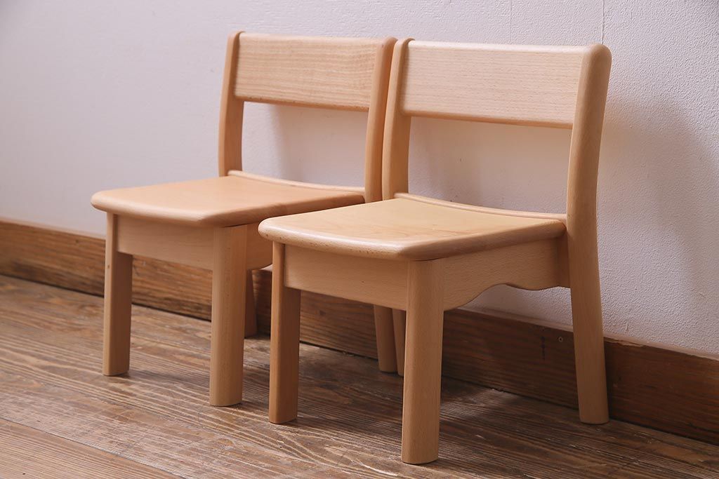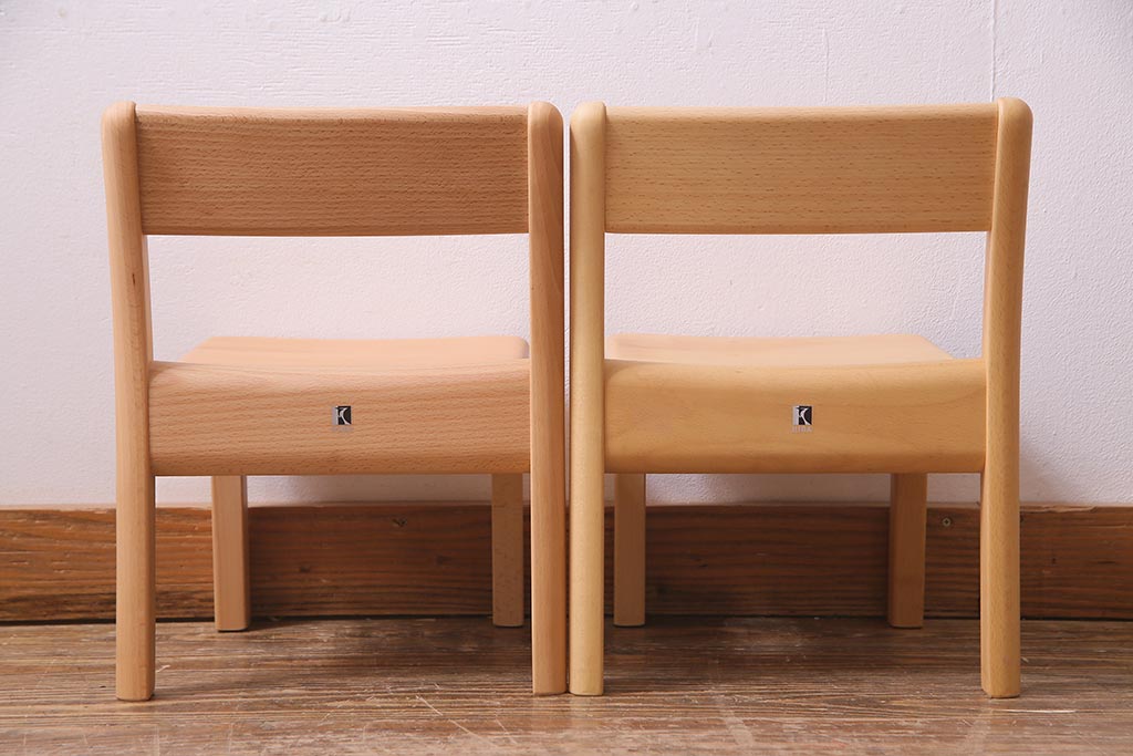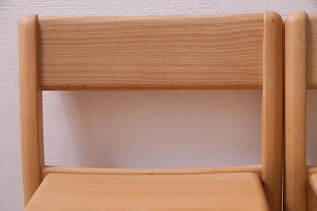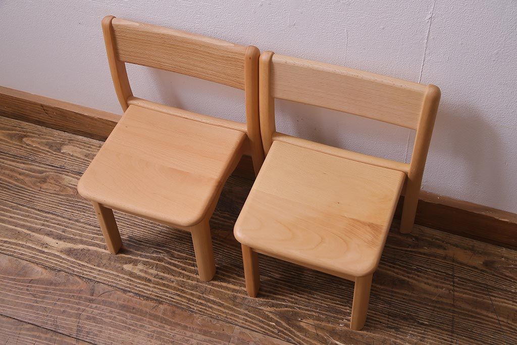 中古 飛騨産業 キツツキ KF202B ビーチ材 キッズスタッキングチェア2脚セット(子供椅子、イス、キッズチェア)(R-038165)