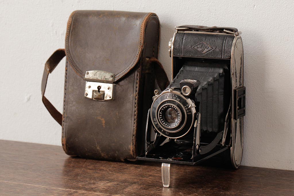 ヴィンテージ雑貨 Agfa(アグファ) 蛇腹カメラ ケース付き ドイツ製 ビンテージクラシックカメラ(R-038112)