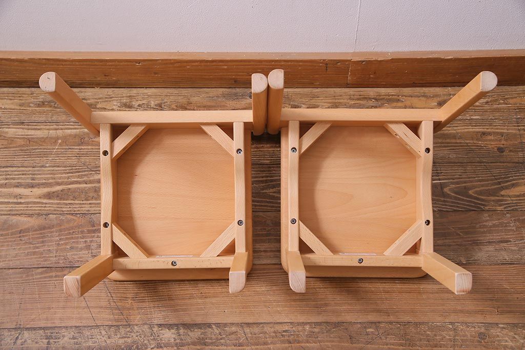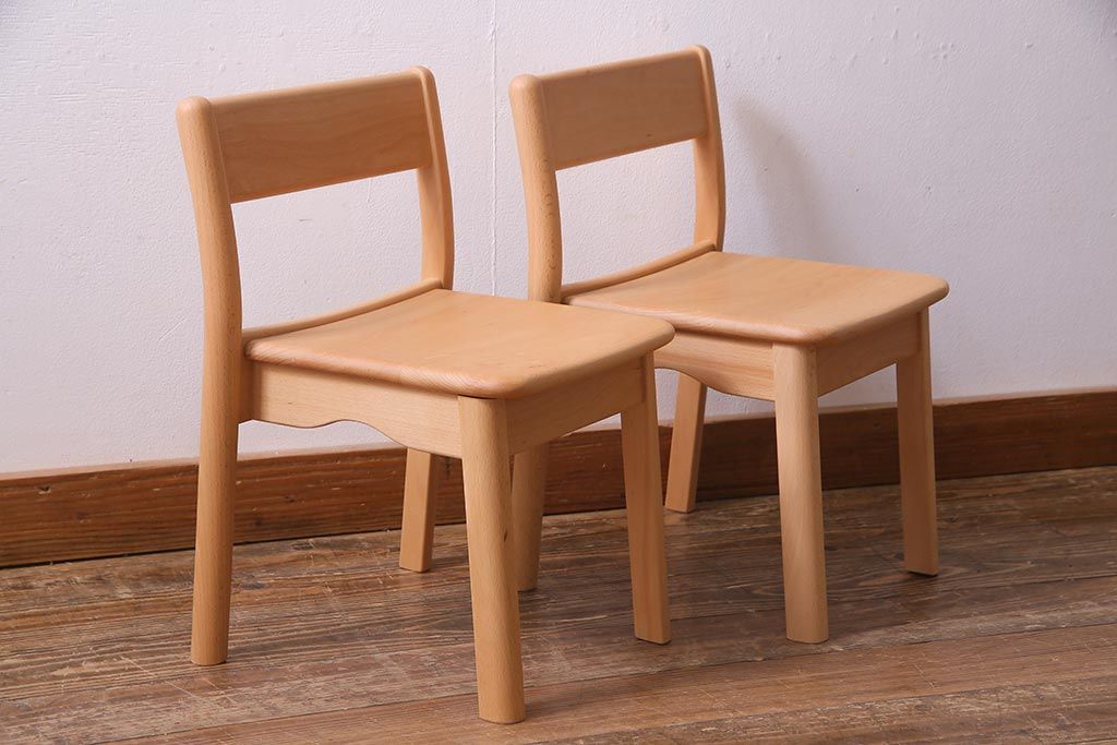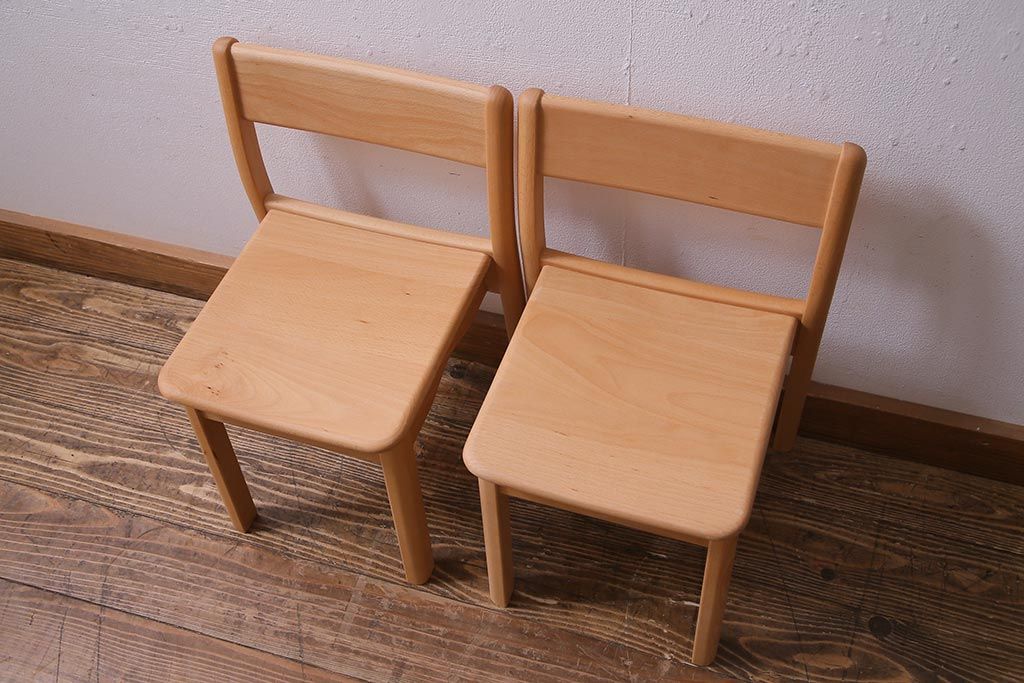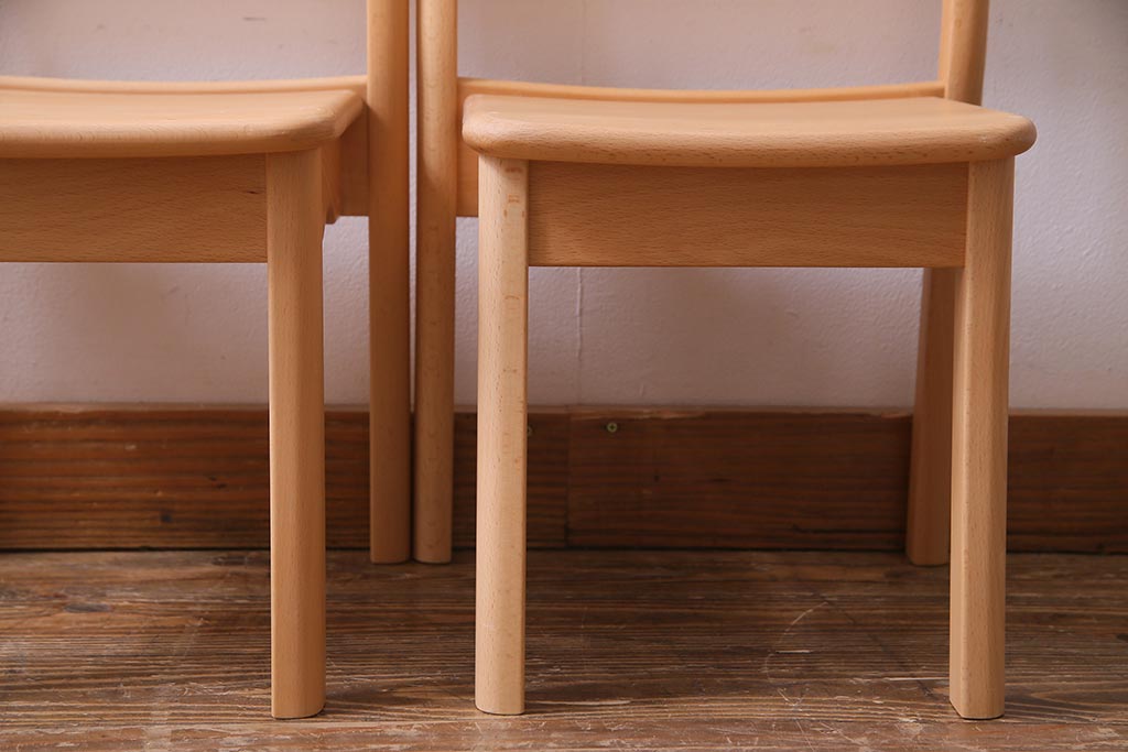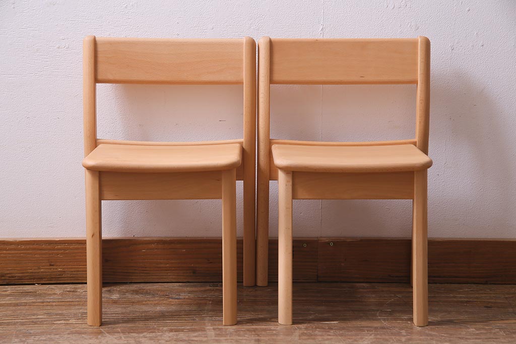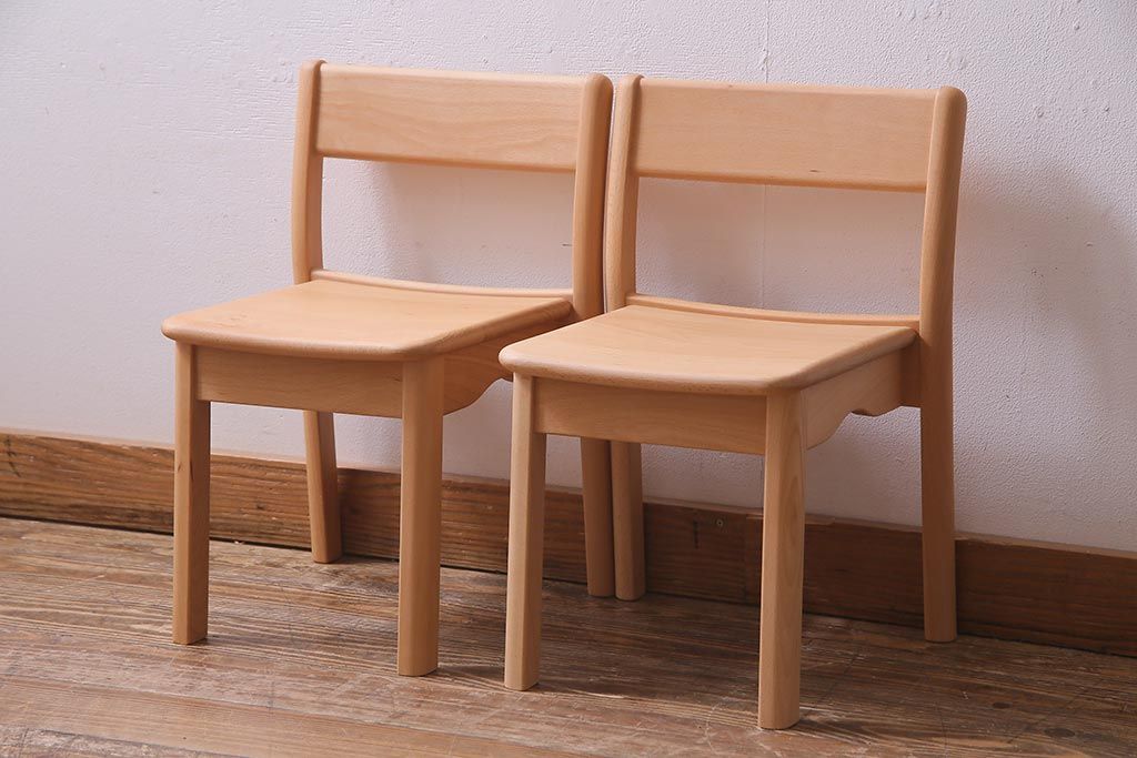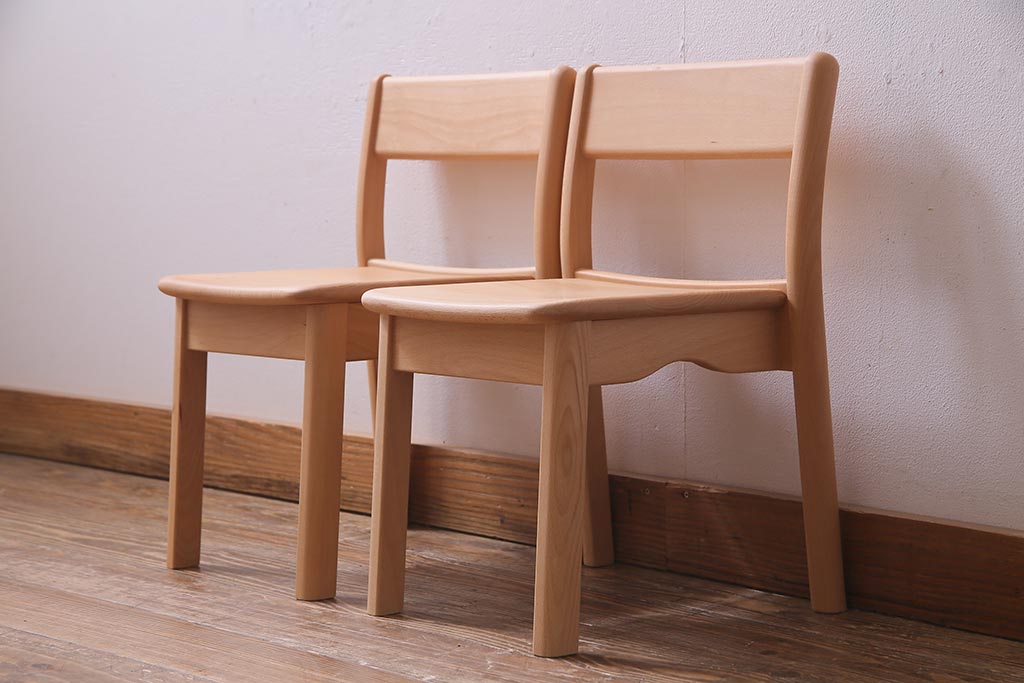 中古 飛騨産業 キツツキ KF205B ビーチ材 キッズスタッキングチェア2脚セット(子供椅子)(R-038173)