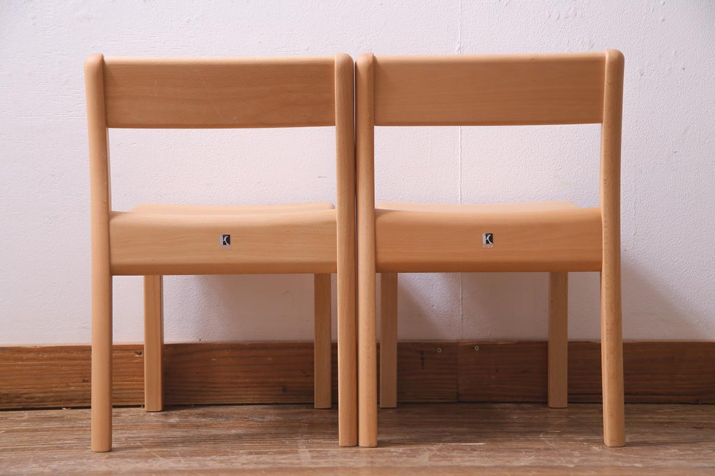 中古 飛騨産業 キツツキ KF205B ビーチ材 キッズスタッキングチェア2脚セット(子供椅子)(R-038173)です。