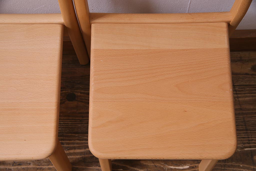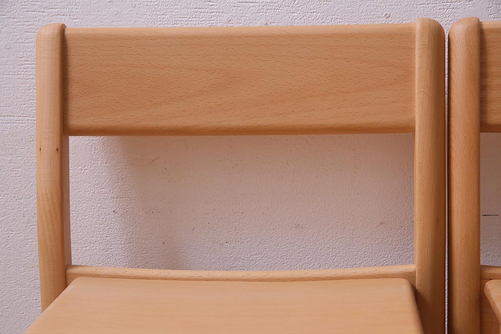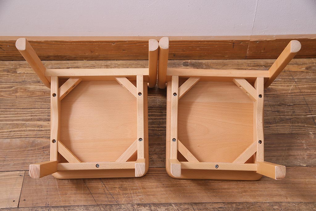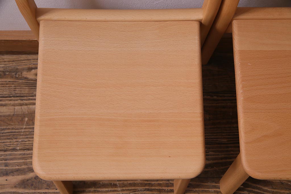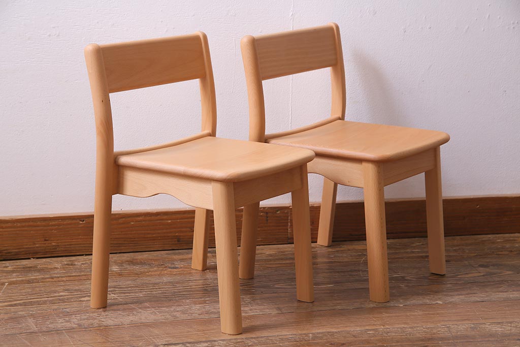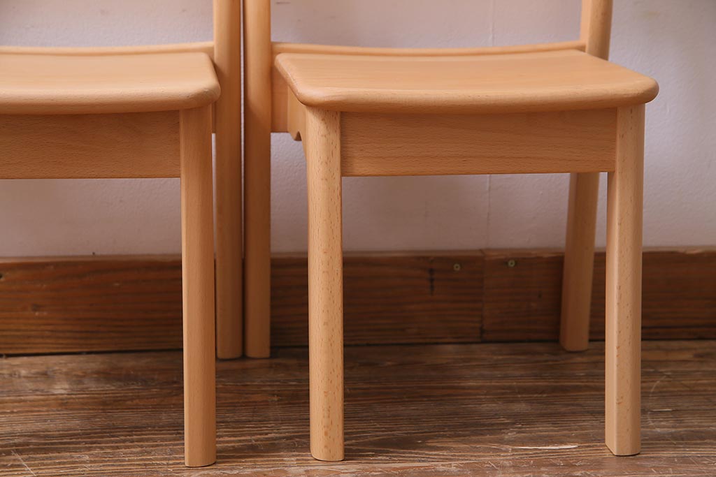中古 飛騨産業 キツツキ KF205B ビーチ材 キッズスタッキングチェア2脚セット(子供椅子、キッズチェア)(R-038174)