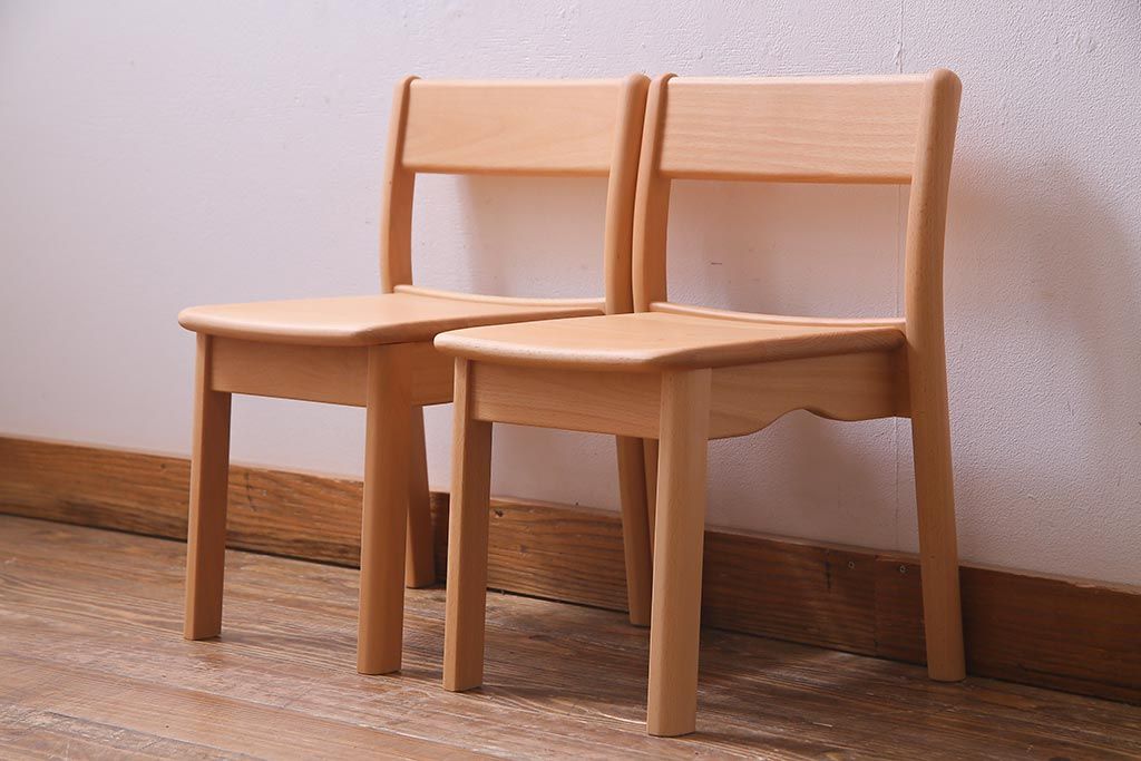 中古 飛騨産業 キツツキ KF205B ビーチ材 キッズスタッキングチェア2脚セット(子供椅子、キッズチェア)(R-038174)です。