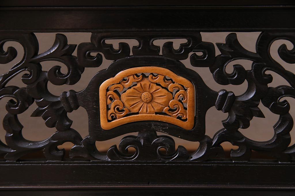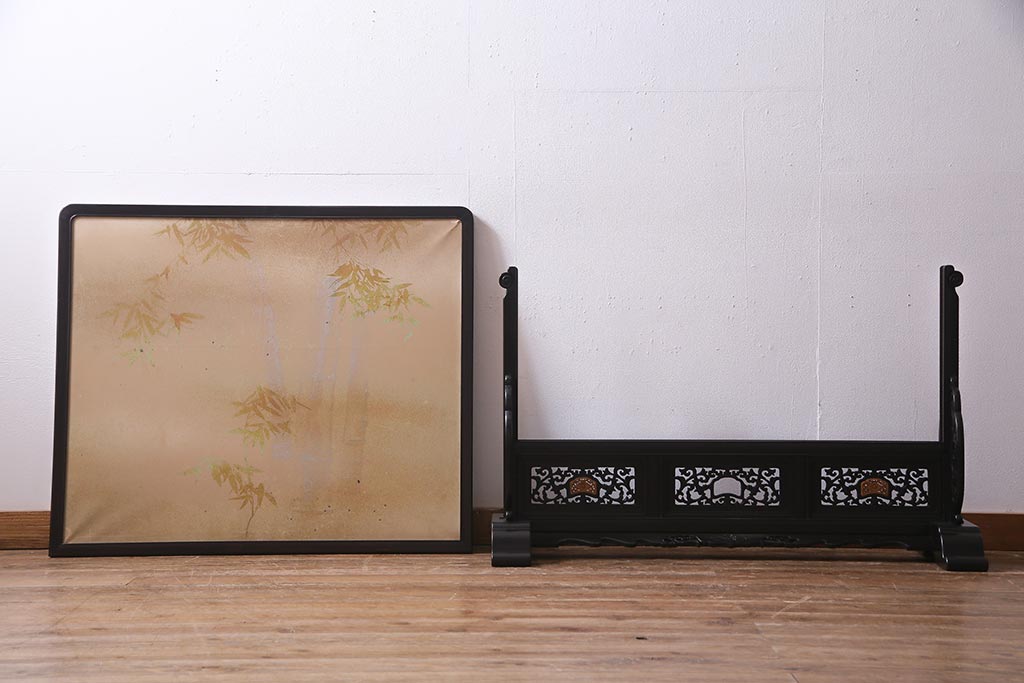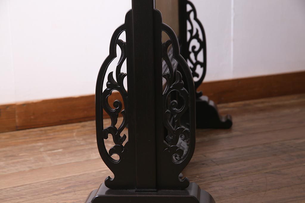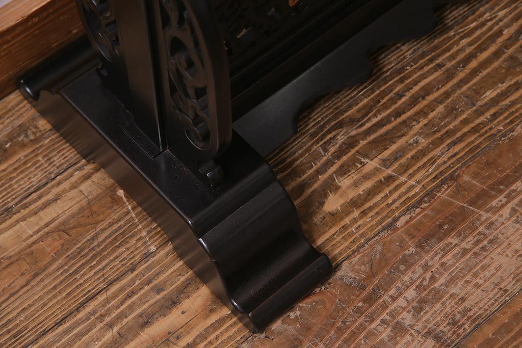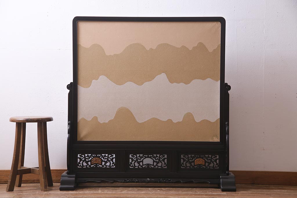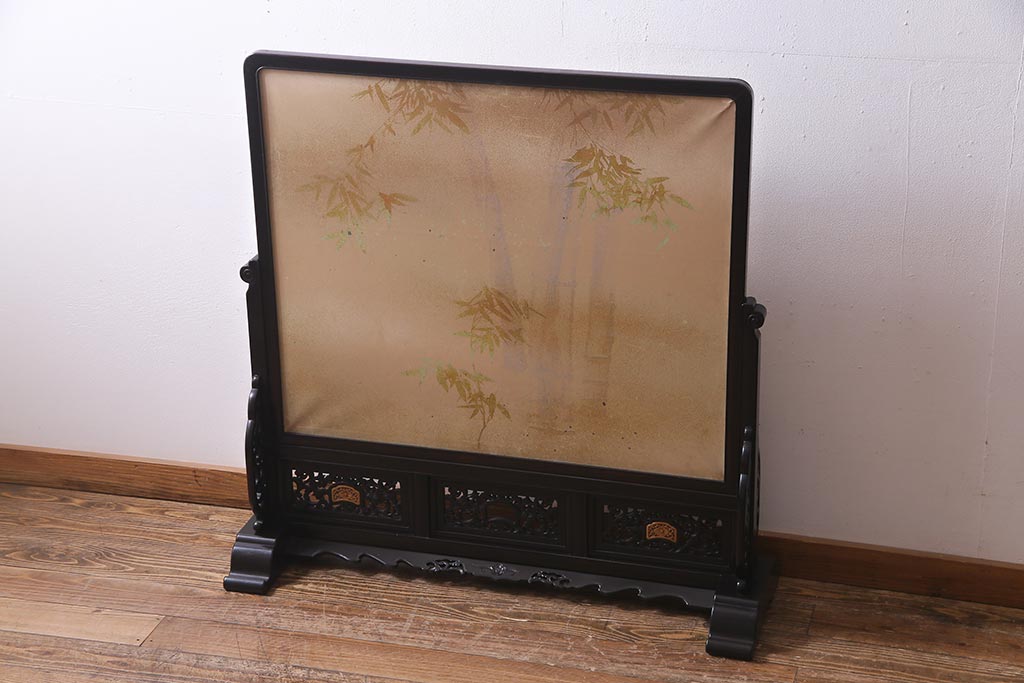 アンティーク家具 黒檀(コクタン)材 漆塗り 透かし彫りが目を引く衝立(パーテーション、仕切り)(R-038177)