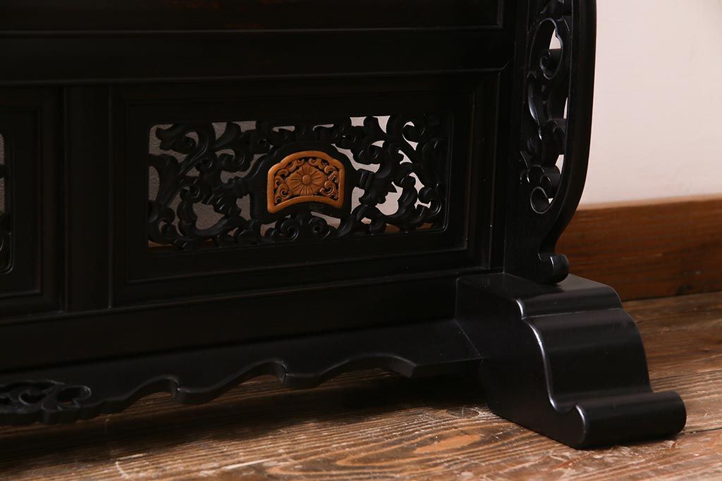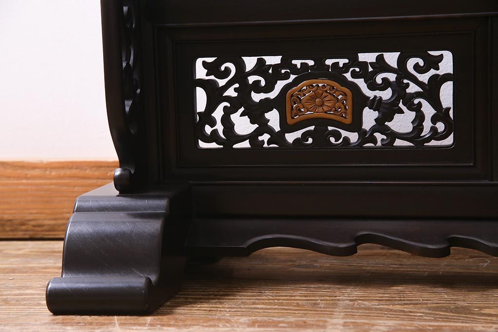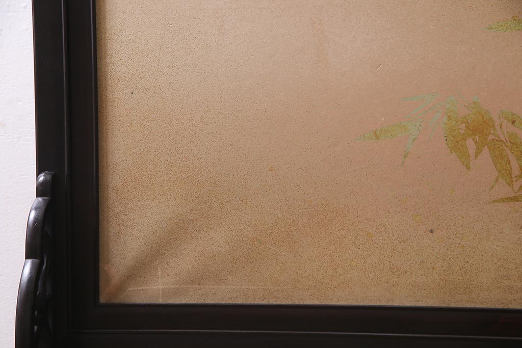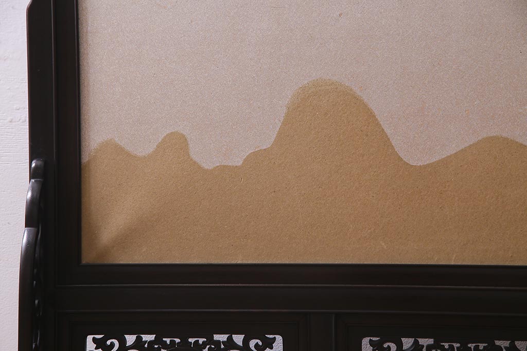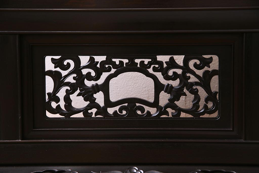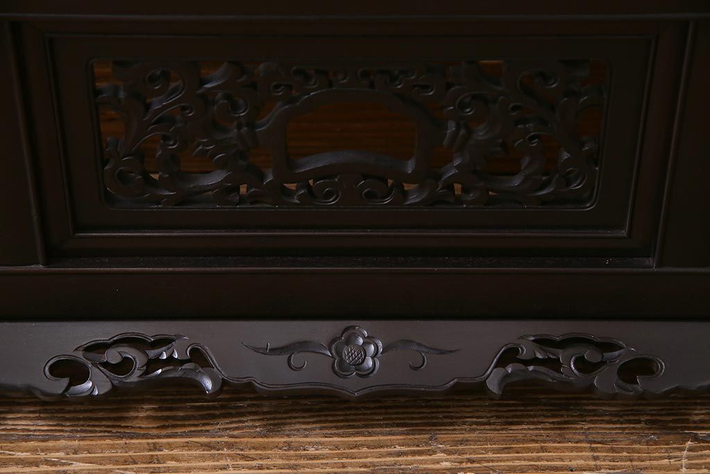 アンティーク家具 黒檀(コクタン)材 漆塗り 透かし彫りが目を引く衝立(パーテーション、仕切り)(R-038177)