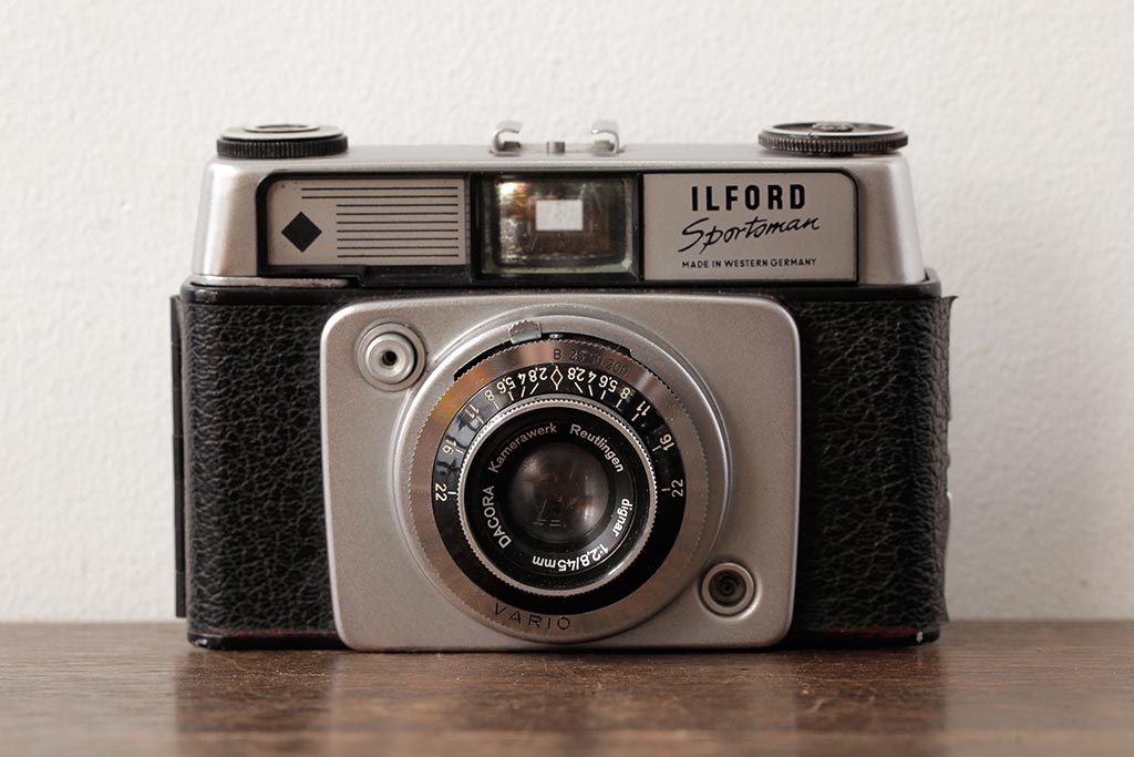 ヴィンテージ雑貨 ILFORD(イルフォード) Sportsman(スポーツマン) ケース・説明書付き ドイツ製 35mmフィルム ビンテージカメラ(R-038096)