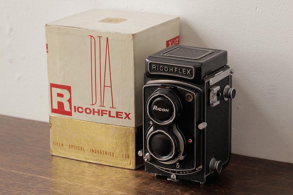 アンティーク雑貨 RICOHFLEX DIA(リコーフレックス ダイヤ) 箱付き レトロな外観がおしゃれな二眼レフカメラ(R-038116)