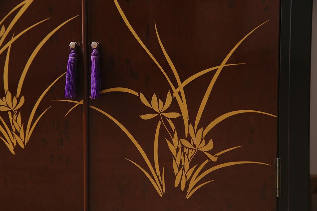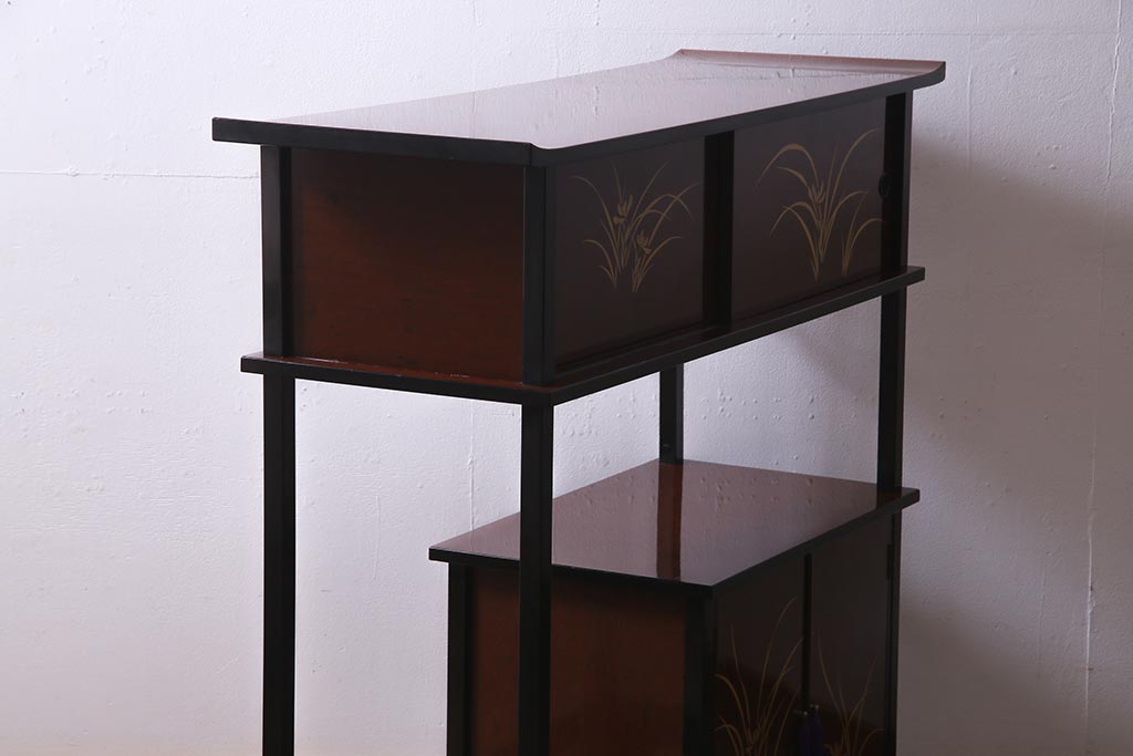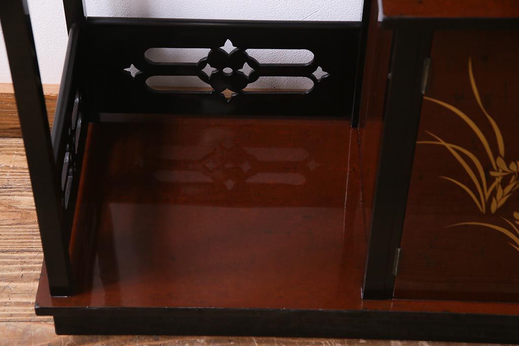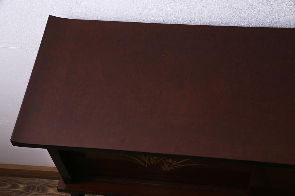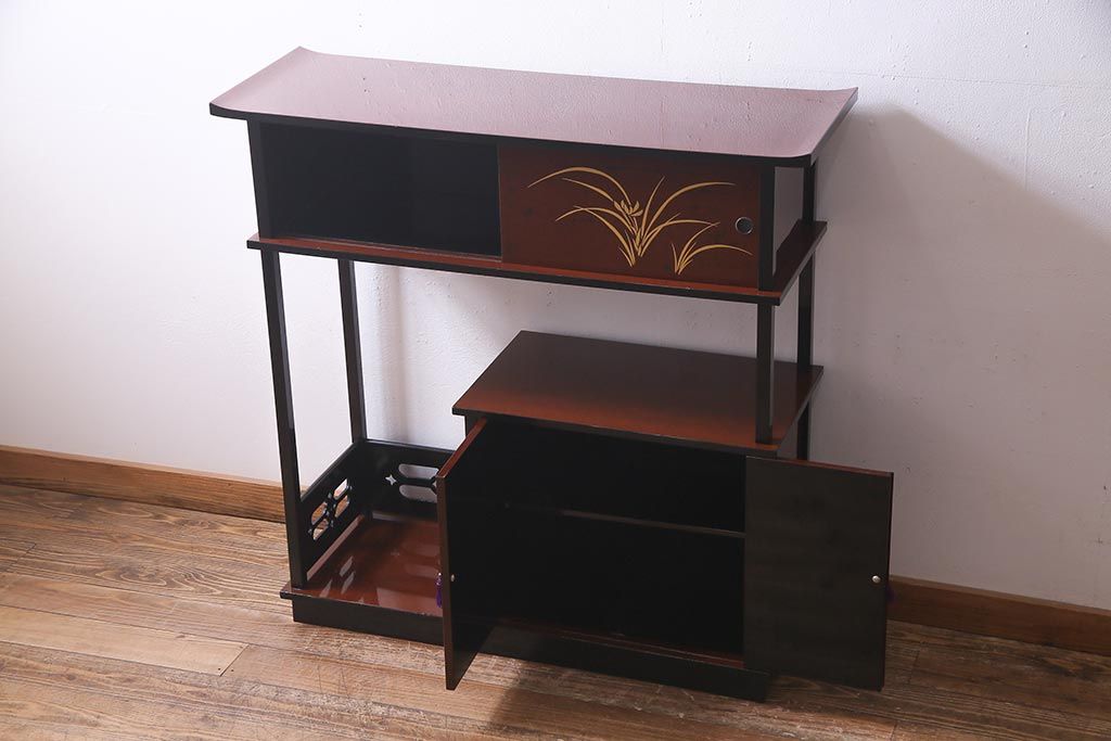 和箪笥 > 中古 国産 蒔絵 深みのある色味が上品な漆塗りの茶棚(定価75万円)(飾り棚、収納棚)(R-038158)