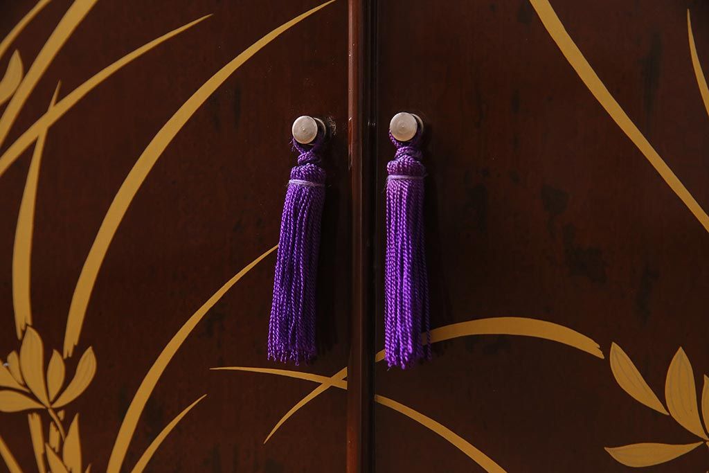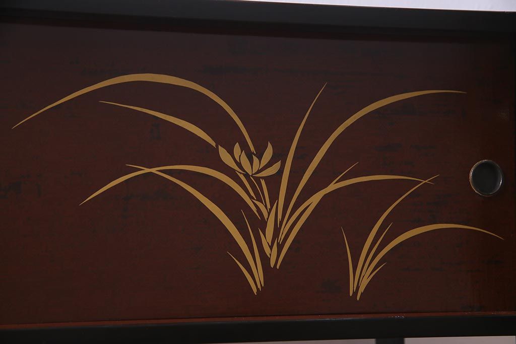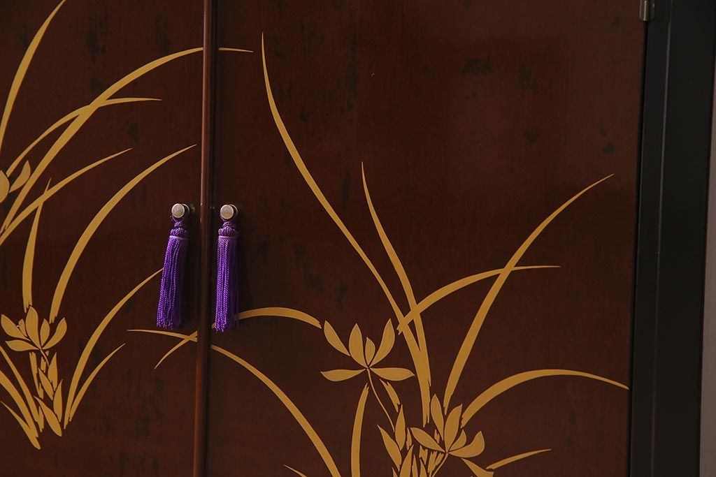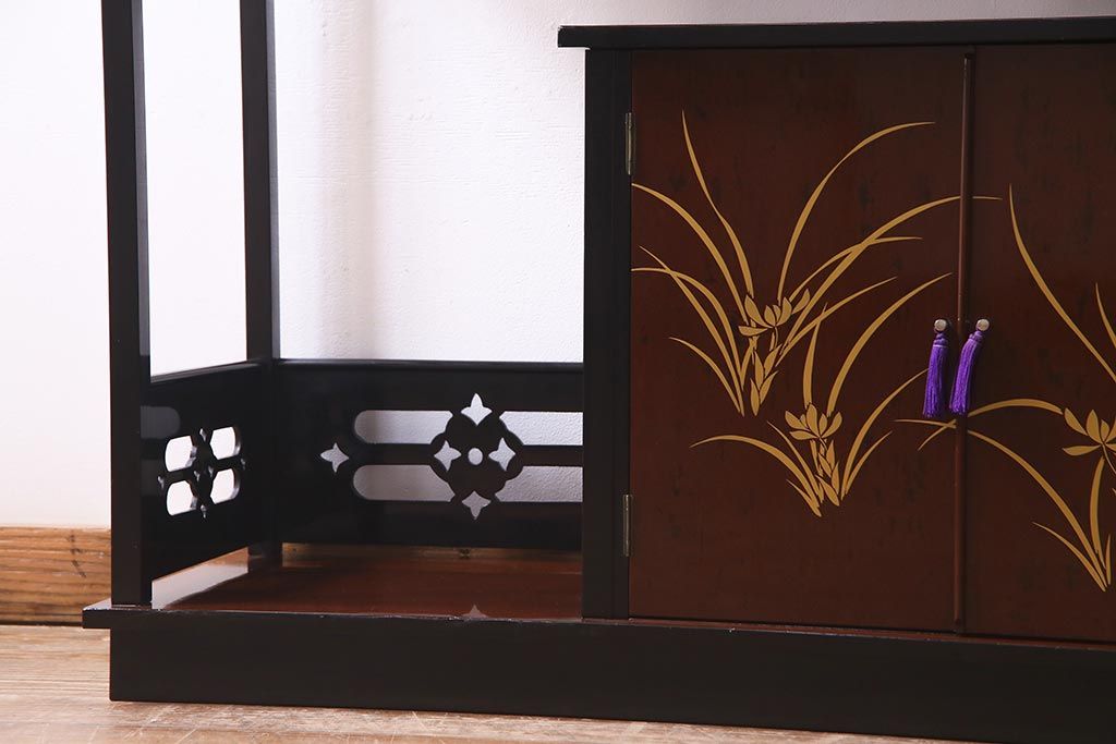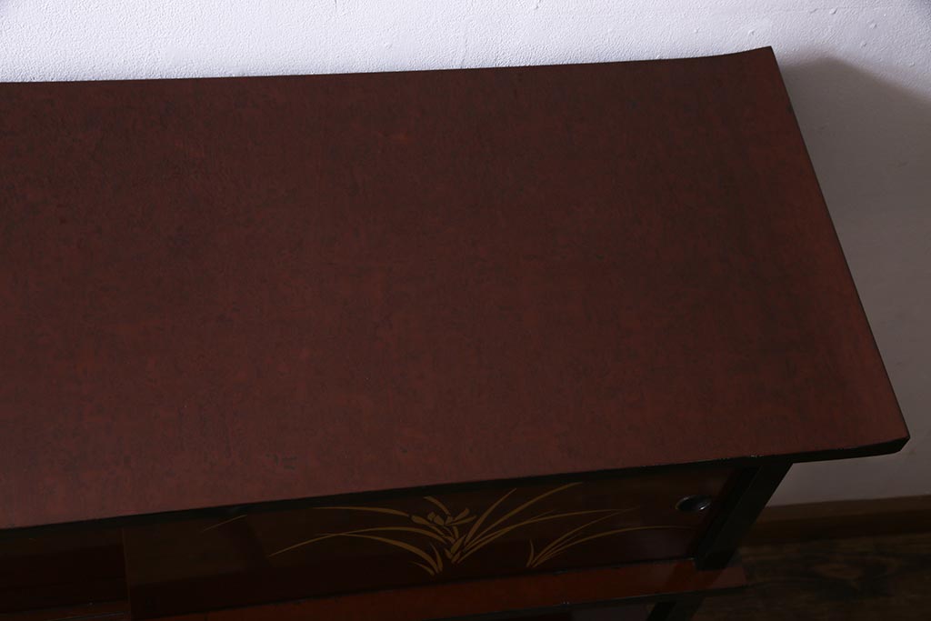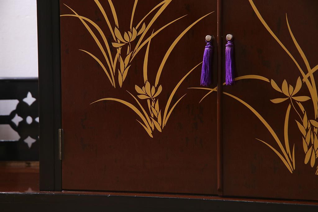 和箪笥 > 中古 国産 蒔絵 深みのある色味が上品な漆塗りの茶棚(定価75万円)(飾り棚、収納棚)(R-038158)