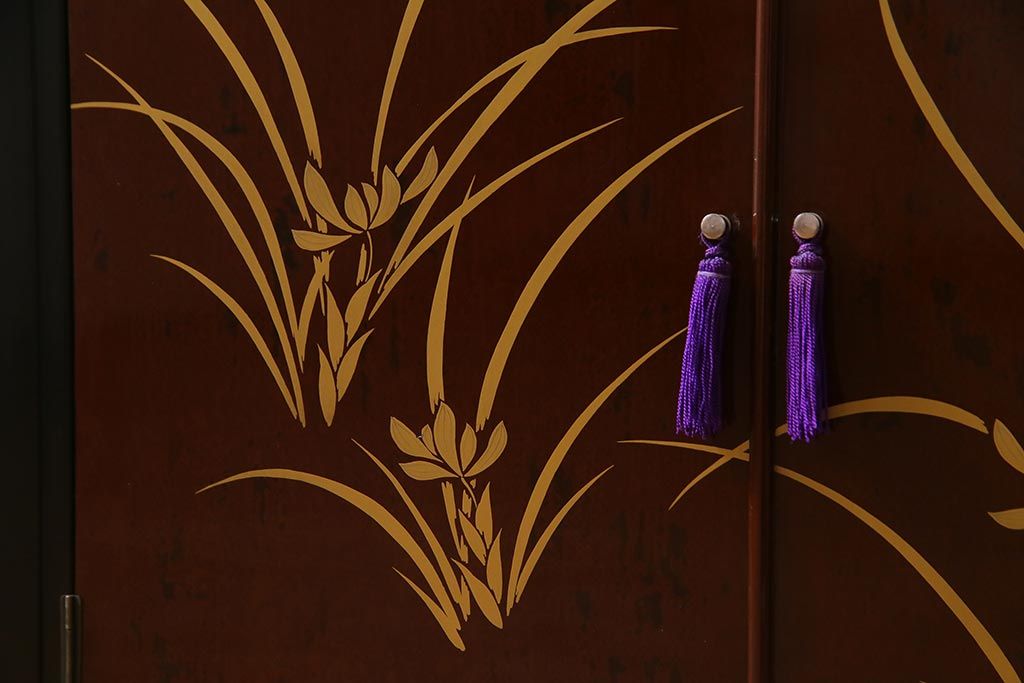 和箪笥> 茶箪笥・茶棚 > 中古 国産 蒔絵 深みのある色味が上品な漆塗りの茶棚(定価75万円)(飾り棚、収納棚)(R-038158)