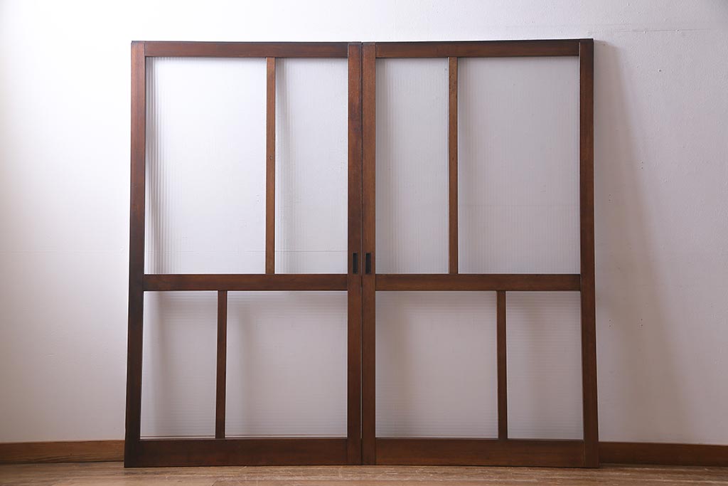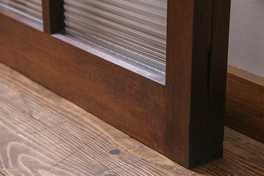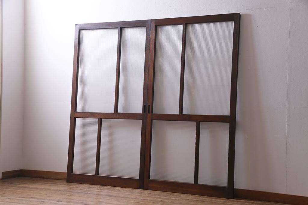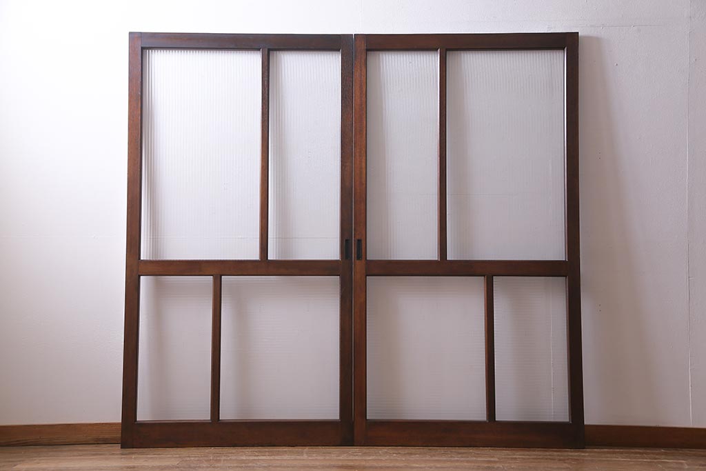 アンティーク建具 モールガラス入り 大判のレトロガラスが可愛らしいガラス戸2枚セット(引き戸)(R-038204)