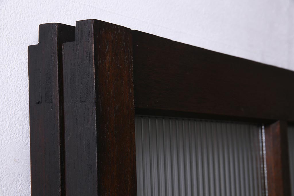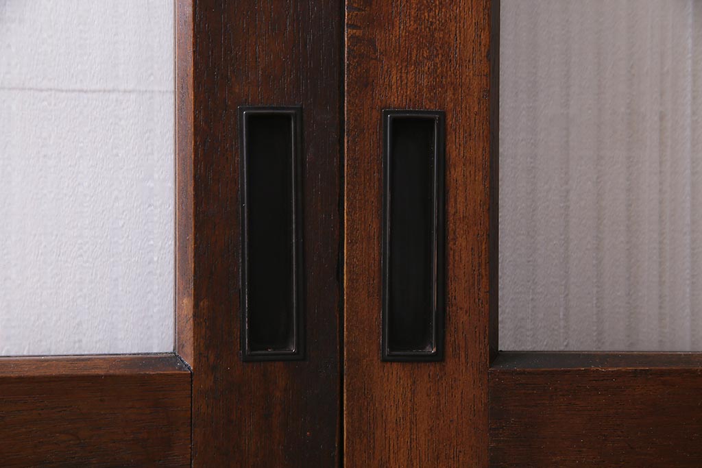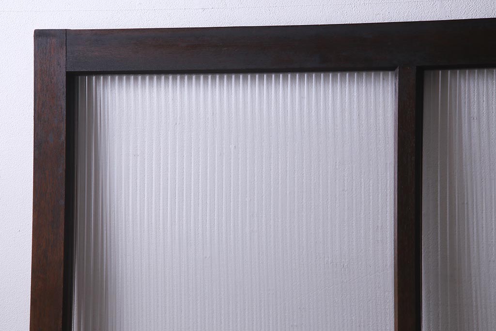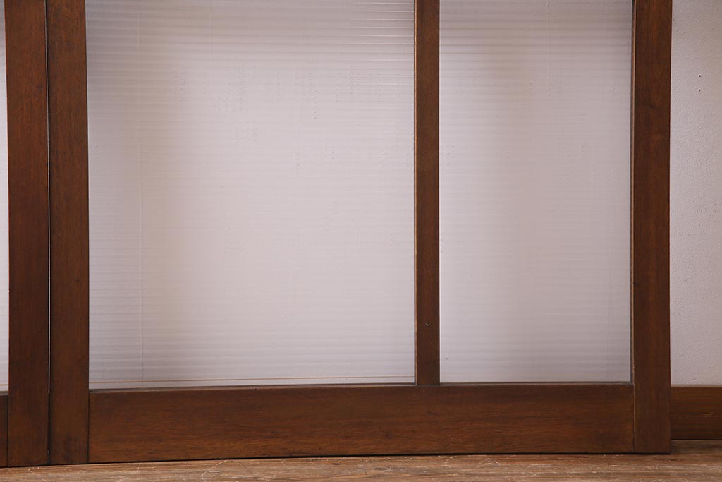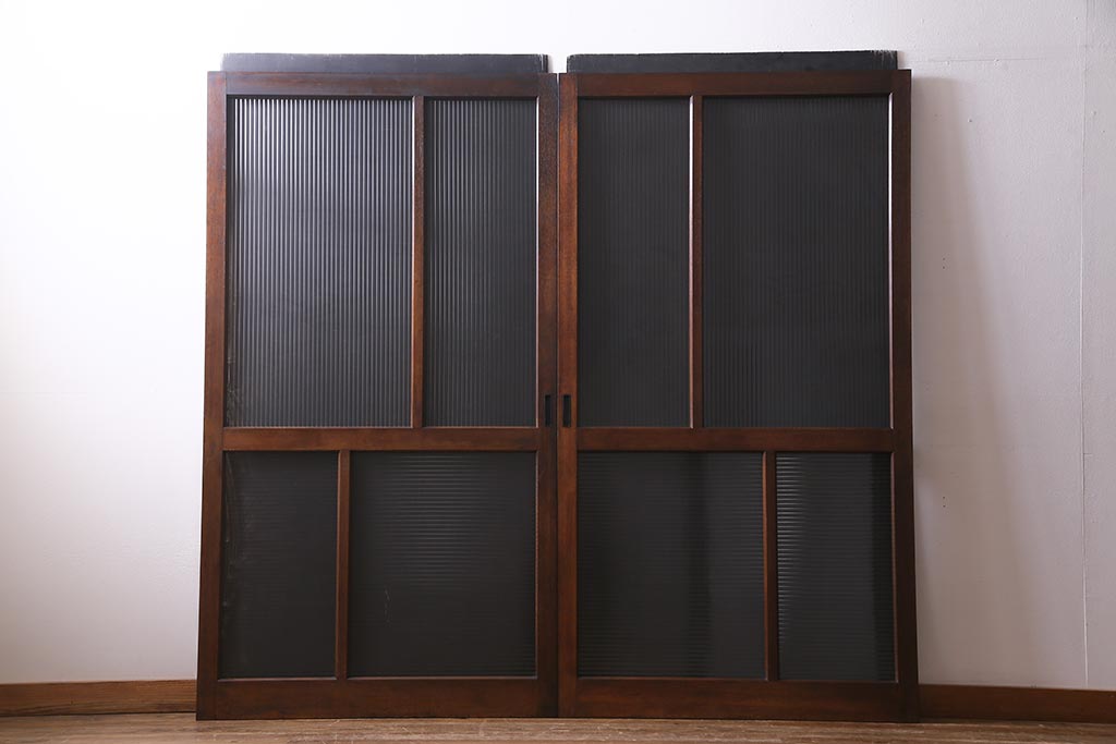 アンティーク建具 モールガラス入り 大判のレトロガラスが可愛らしいガラス戸2枚セット(引き戸)(R-038204)
