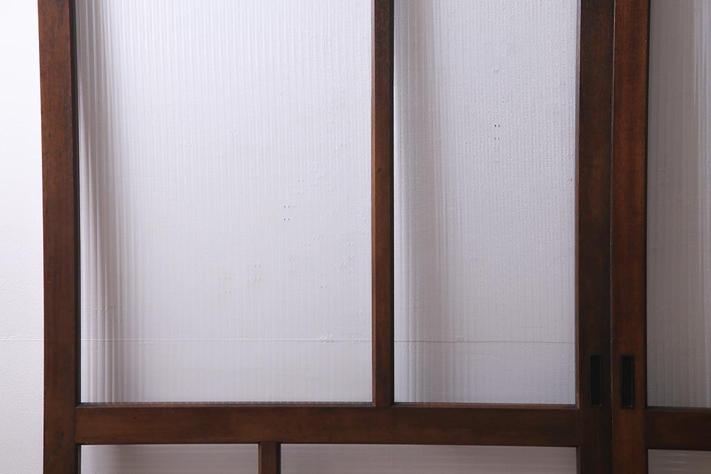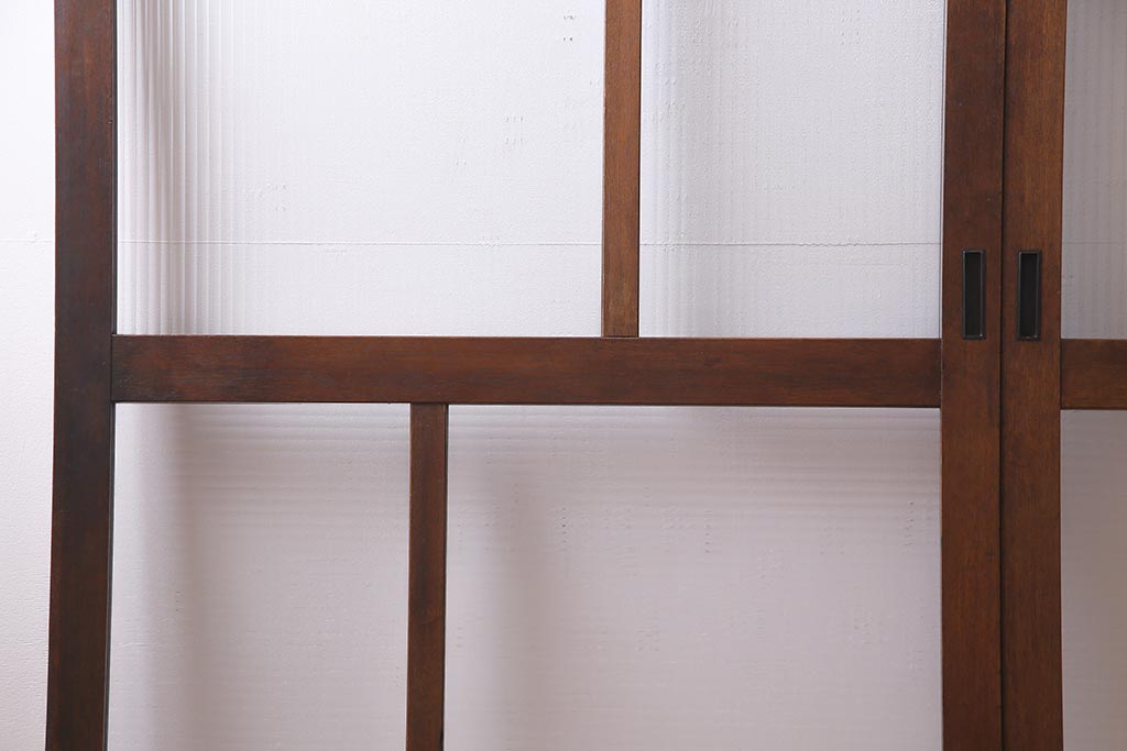 ドア・建具> ガラス戸 > アンティーク建具 モールガラス入り 大判のレトロガラスが可愛らしいガラス戸2枚セット(引き戸)(R-038204)