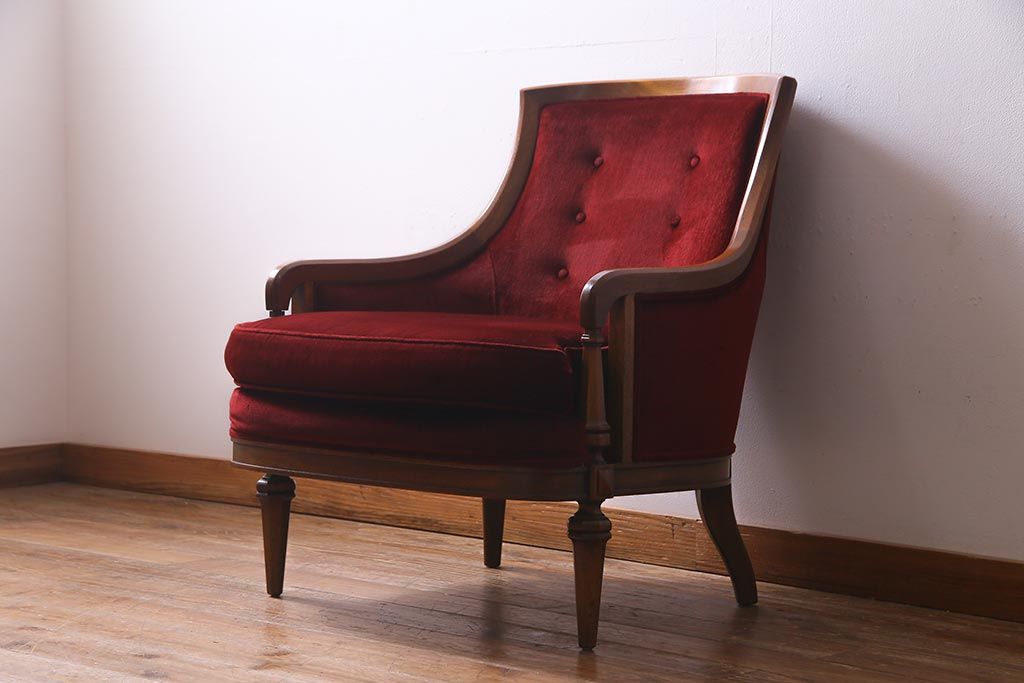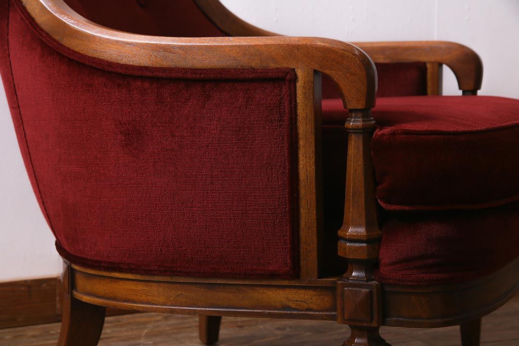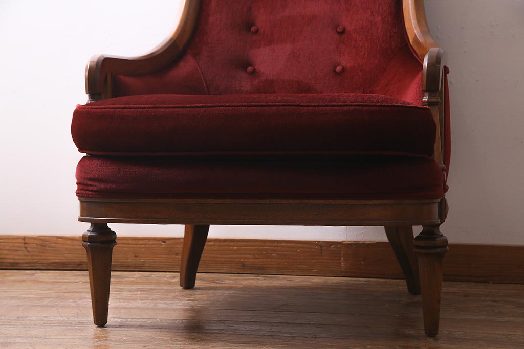 中古 DREXEL HERITAGE(ドレクセルヘリテイジ) Upholstery(アップホルスタリー) クラシカルな雰囲気漂うローバックチェア(1人掛けソファ、アームソファ)(定価約45万円)(R-038215)