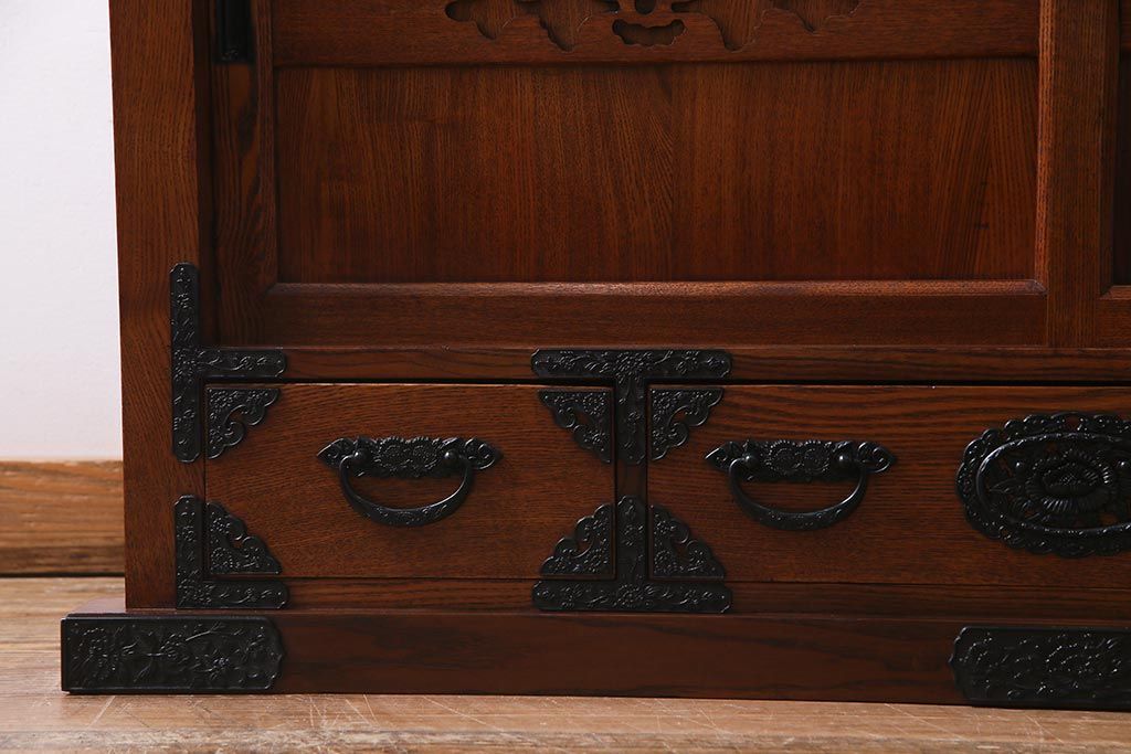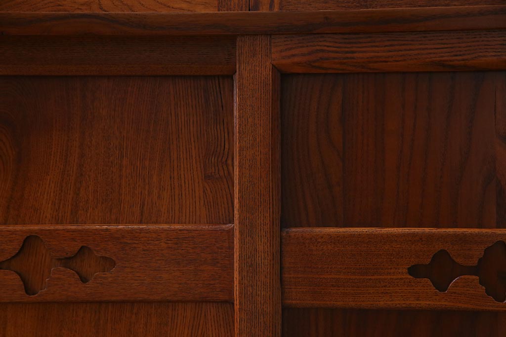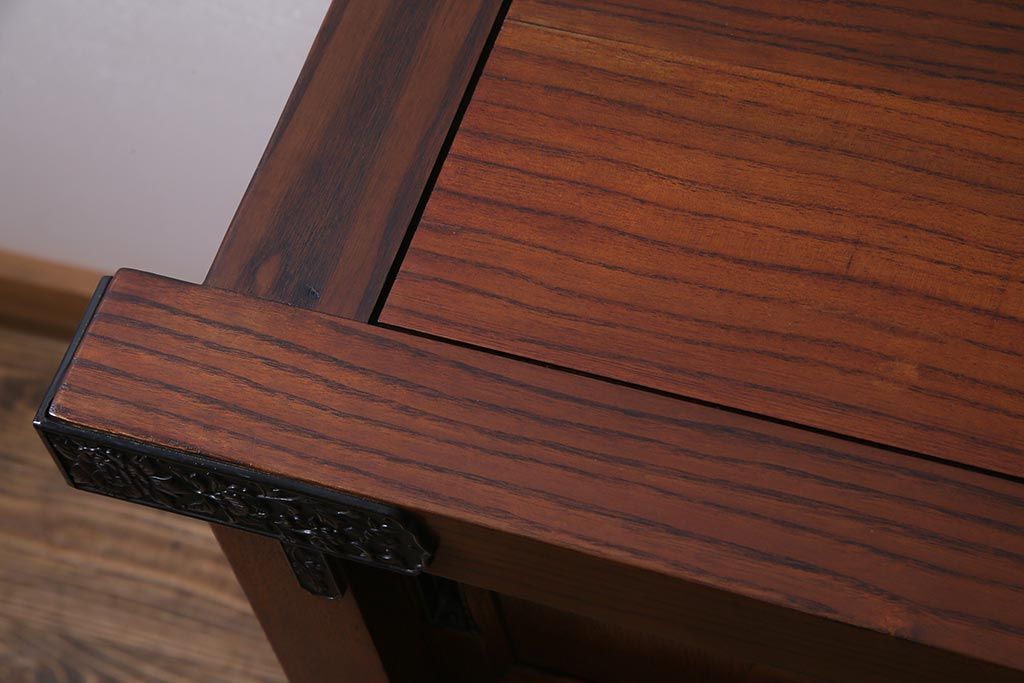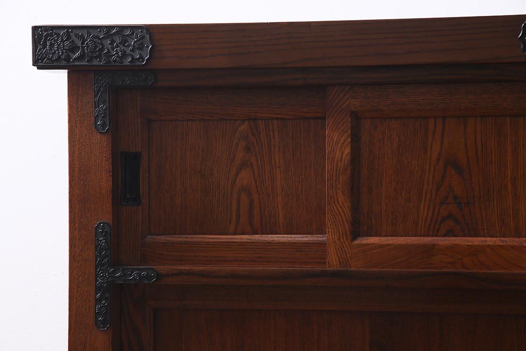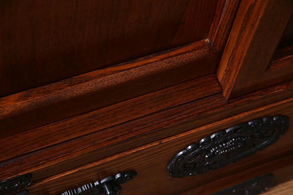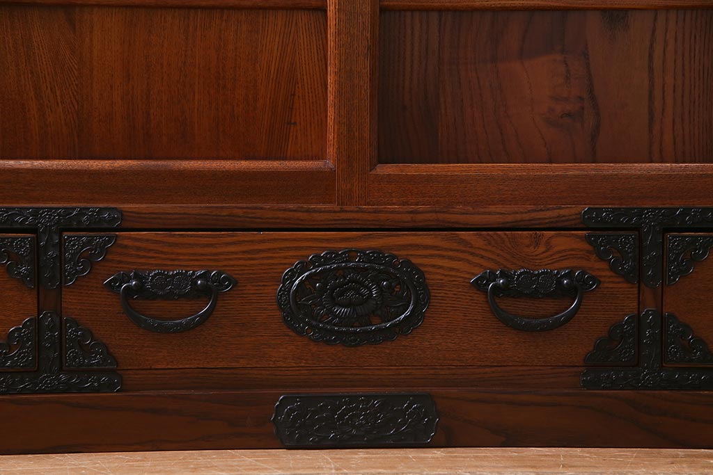 キャビネット・戸棚> サイドキャビネット > 新古品 民芸家具 ニレ無垢材 重厚感と上品さを醸し出す水屋箪笥・上(収納棚、和箪笥、キャビネット)(R-038221)