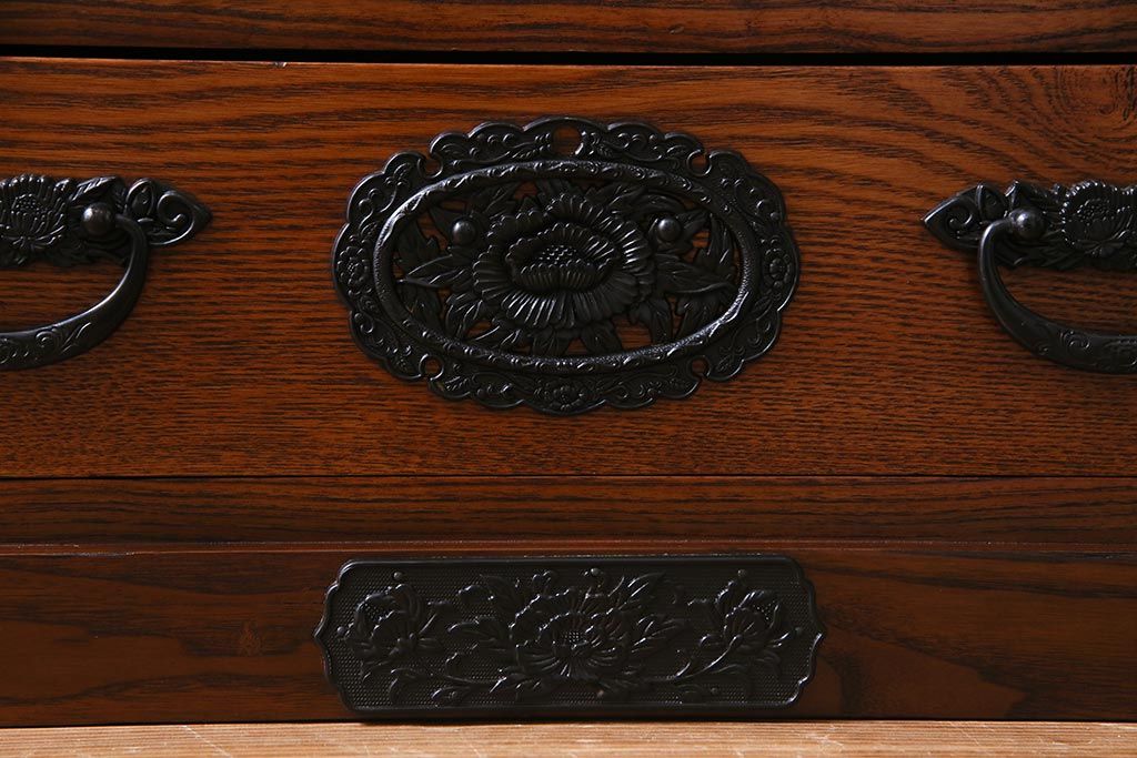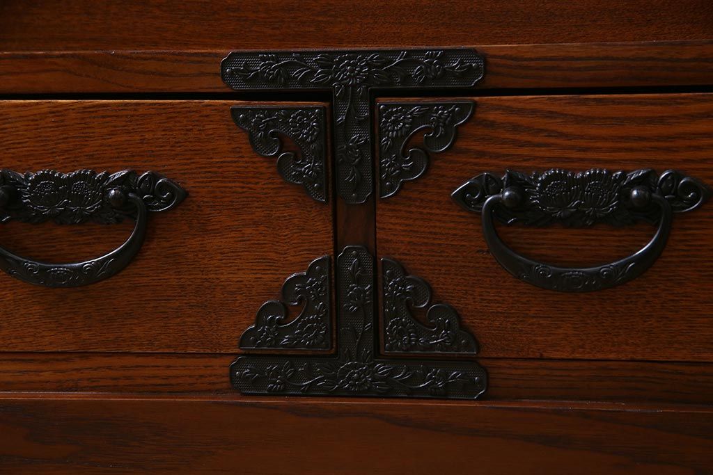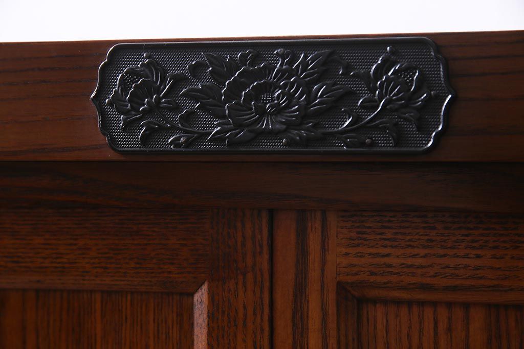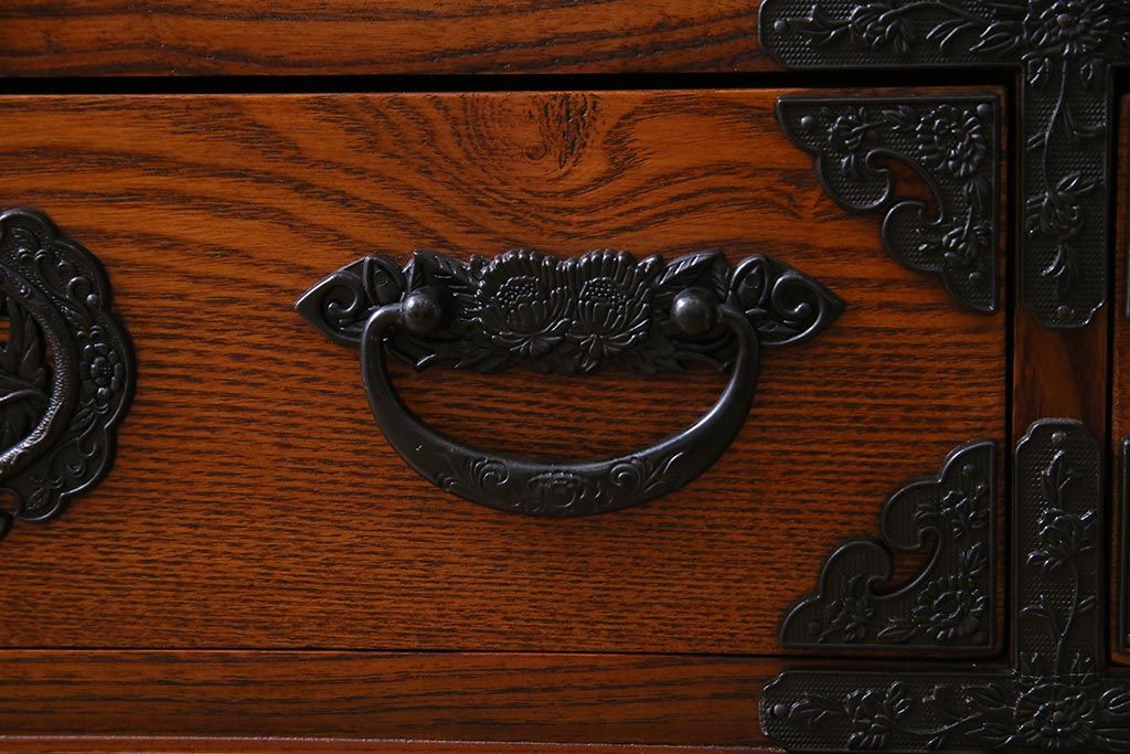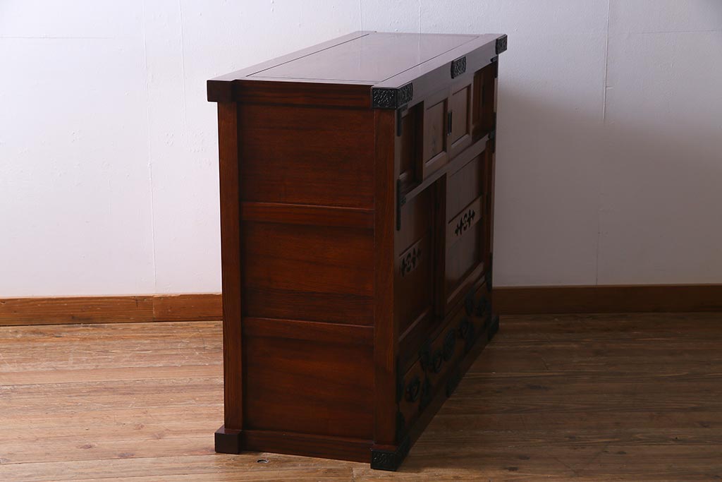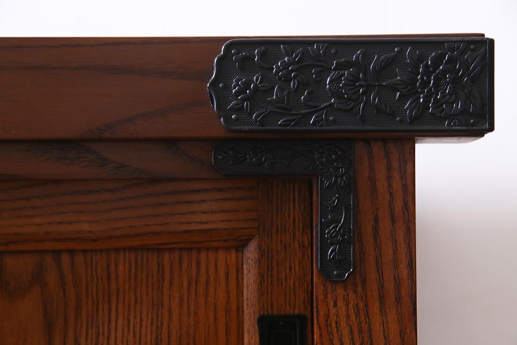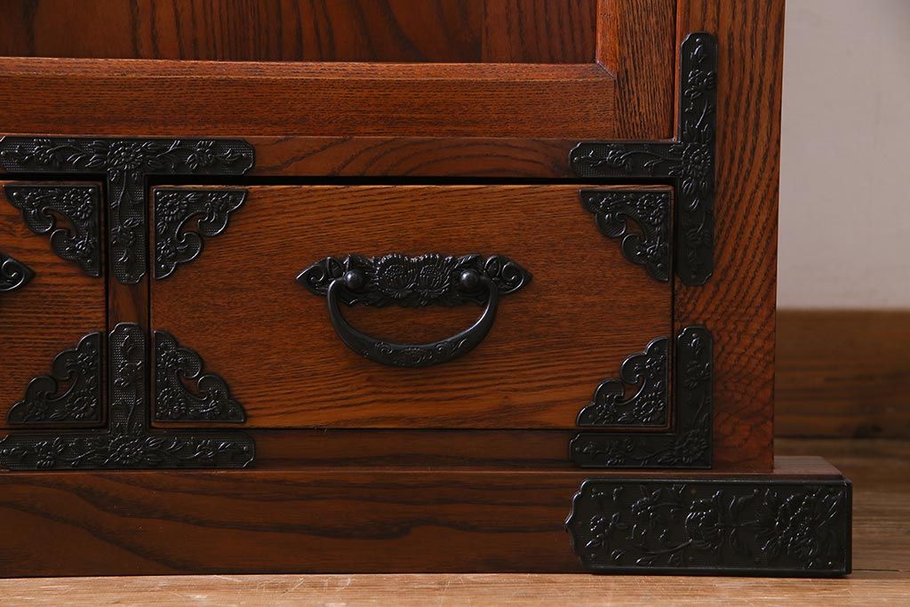 キャビネット・戸棚> サイドキャビネット > 新古品 民芸家具 ニレ無垢材 重厚感と上品さを醸し出す水屋箪笥・上(収納棚、和箪笥、キャビネット)(R-038221)