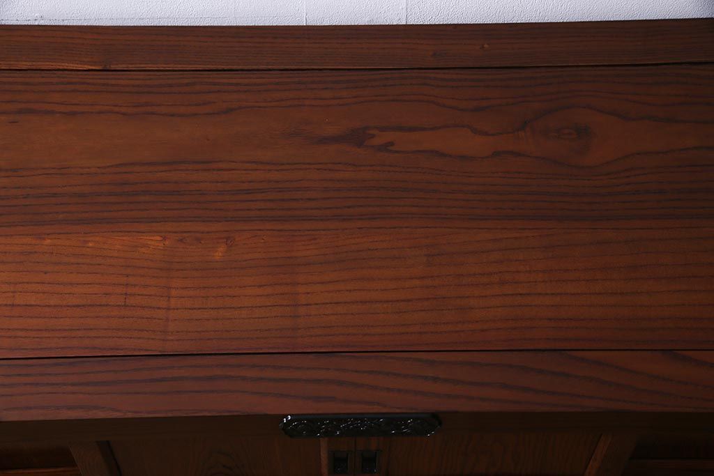 民芸家具 > 新古品 民芸家具 ニレ無垢材 重厚感と上品さを醸し出す水屋箪笥・上(収納棚、和箪笥、キャビネット)(R-038221)