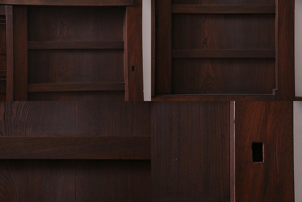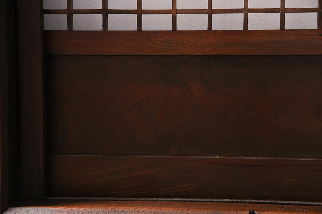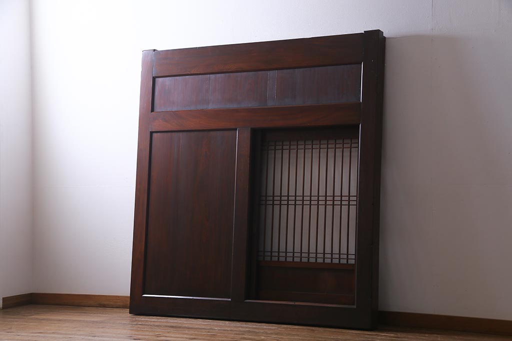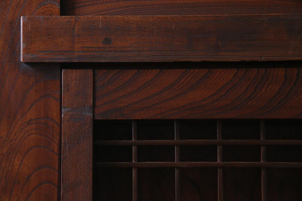ラフジュ工房> ドア・建具> 引き戸 > アンティーク建具 明治期 超ド級119kg!激レア品 総ケヤキ材 くぐり戸が二重の珍しい極厚大戸(建具、蔵戸、引き戸、玄関戸)(R-038244)