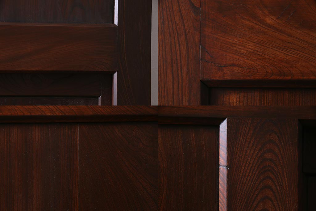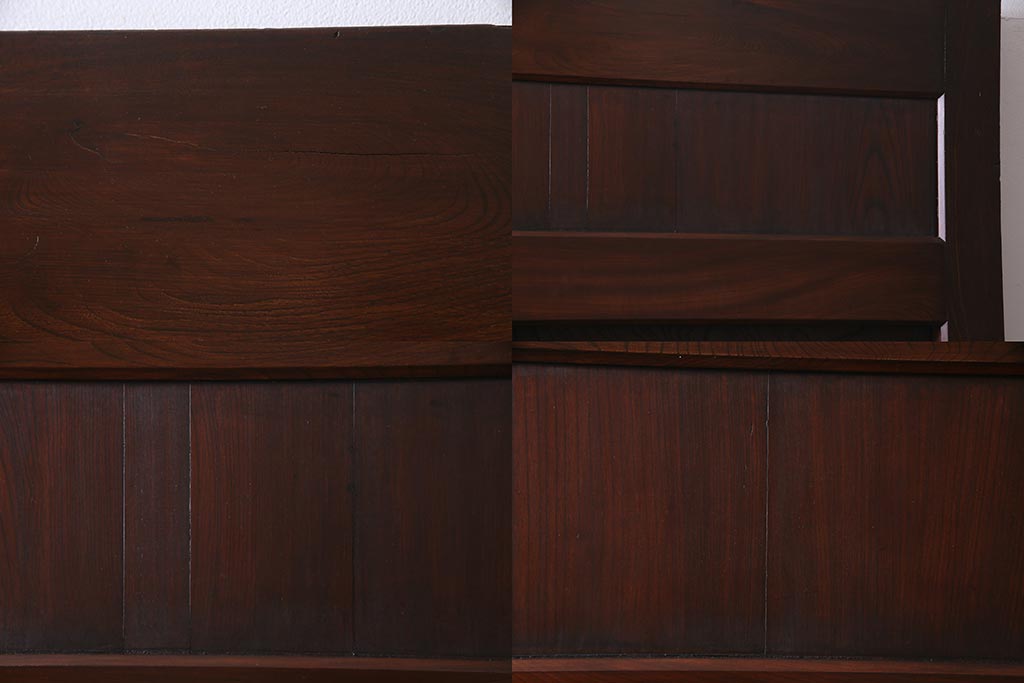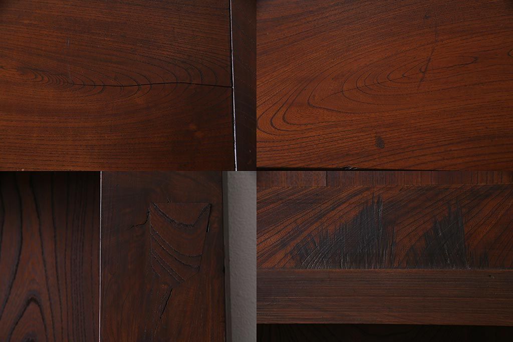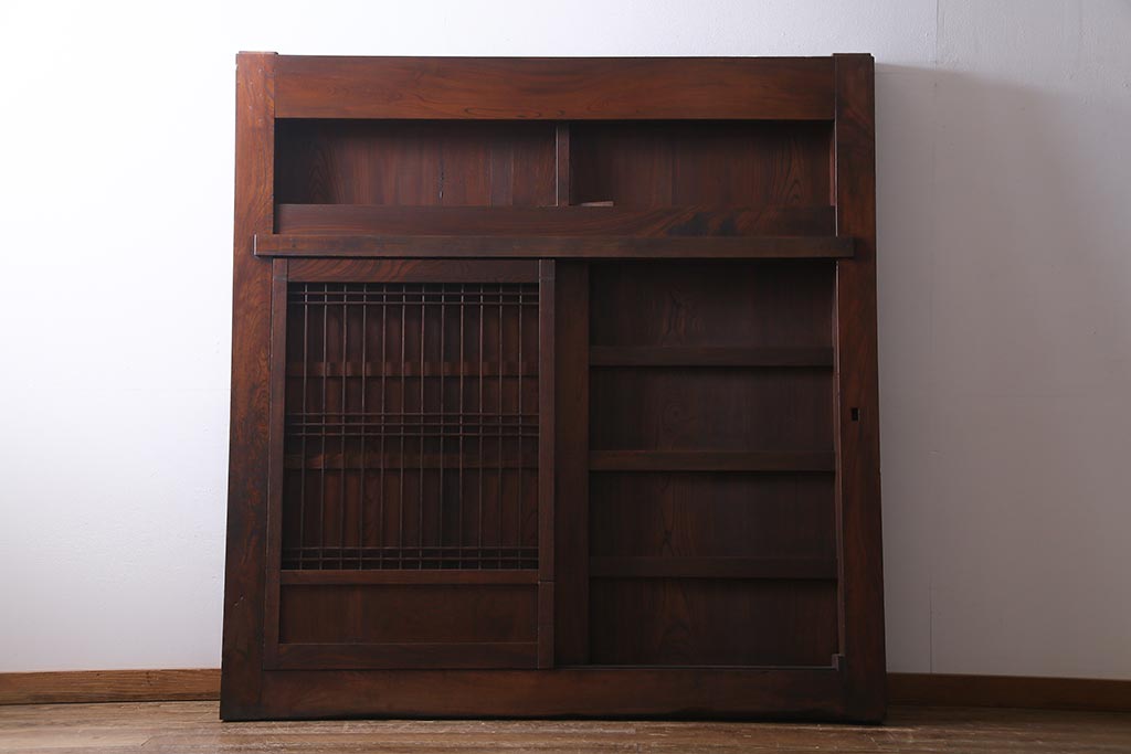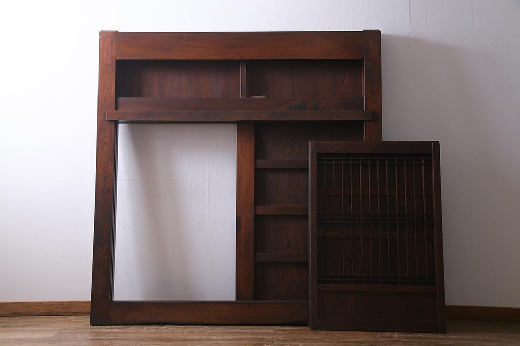 ラフジュ工房> ドア・建具> 引き戸 > アンティーク建具 明治期 超ド級119kg!激レア品 総ケヤキ材 くぐり戸が二重の珍しい極厚大戸(建具、蔵戸、引き戸、玄関戸)(R-038244)