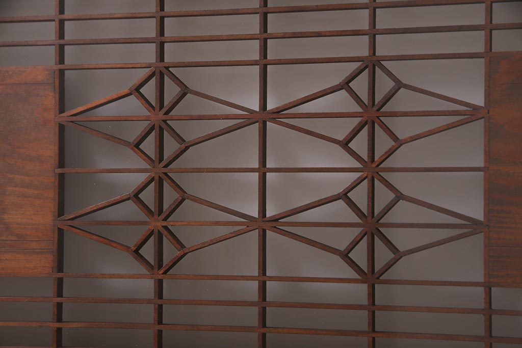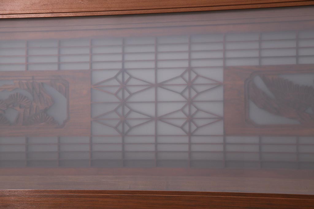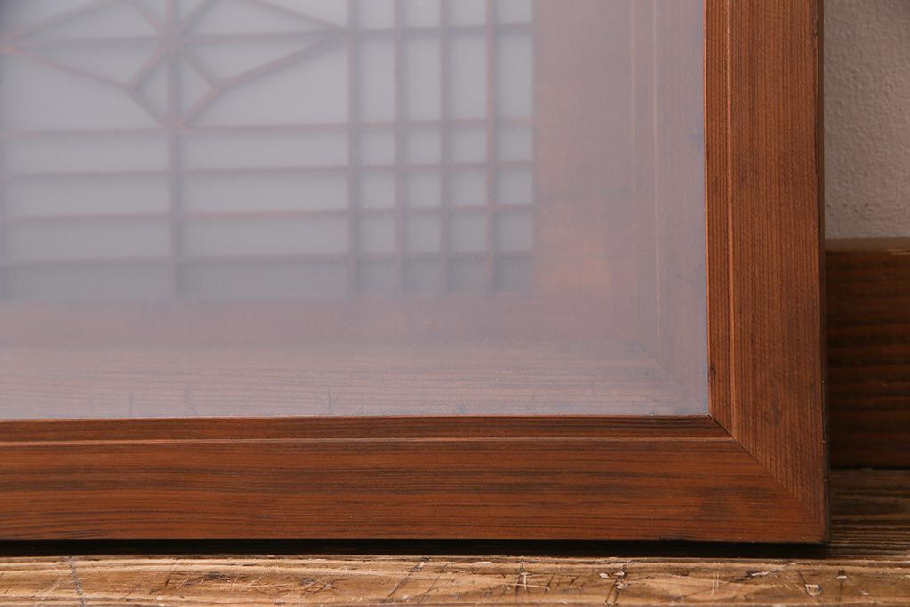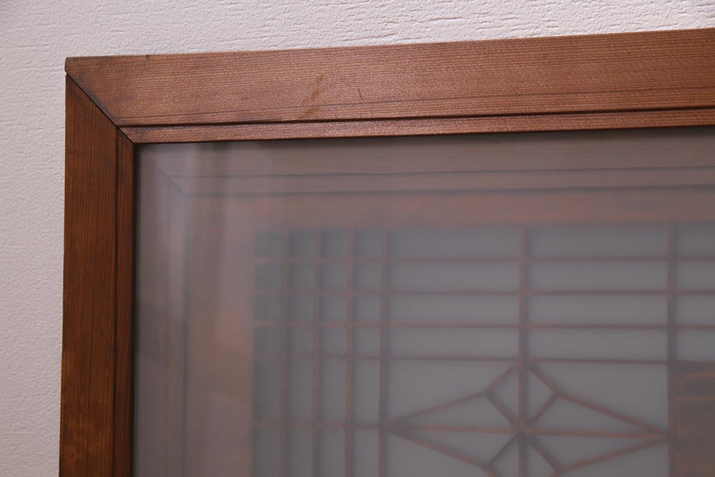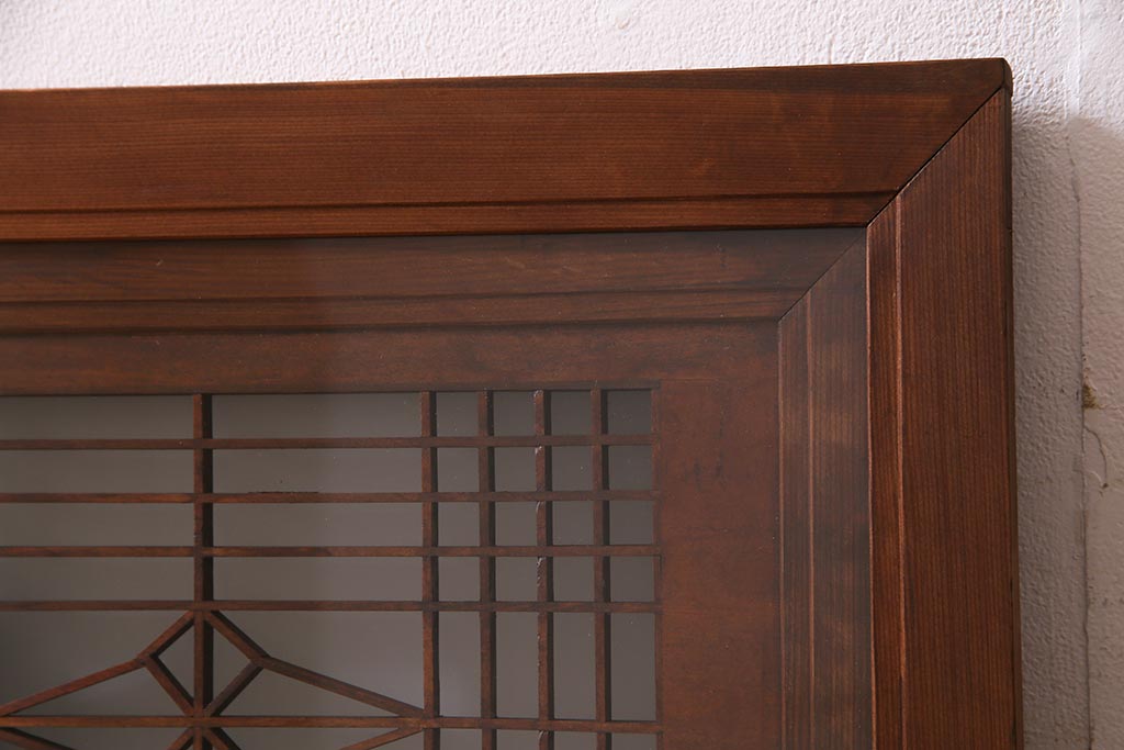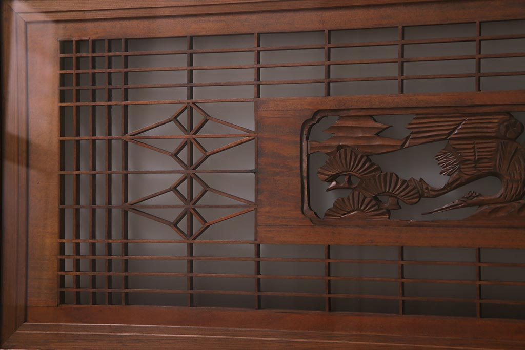 アンティーク建具 繊細な組子と鶴と松の彫刻が見事な欄間(明り取り、両面ガラス)(R-038206)