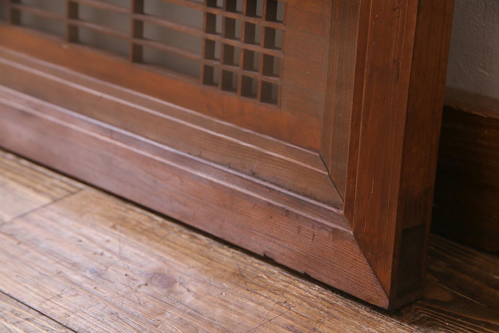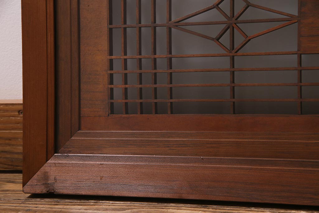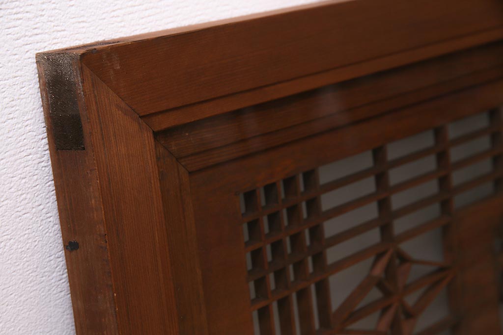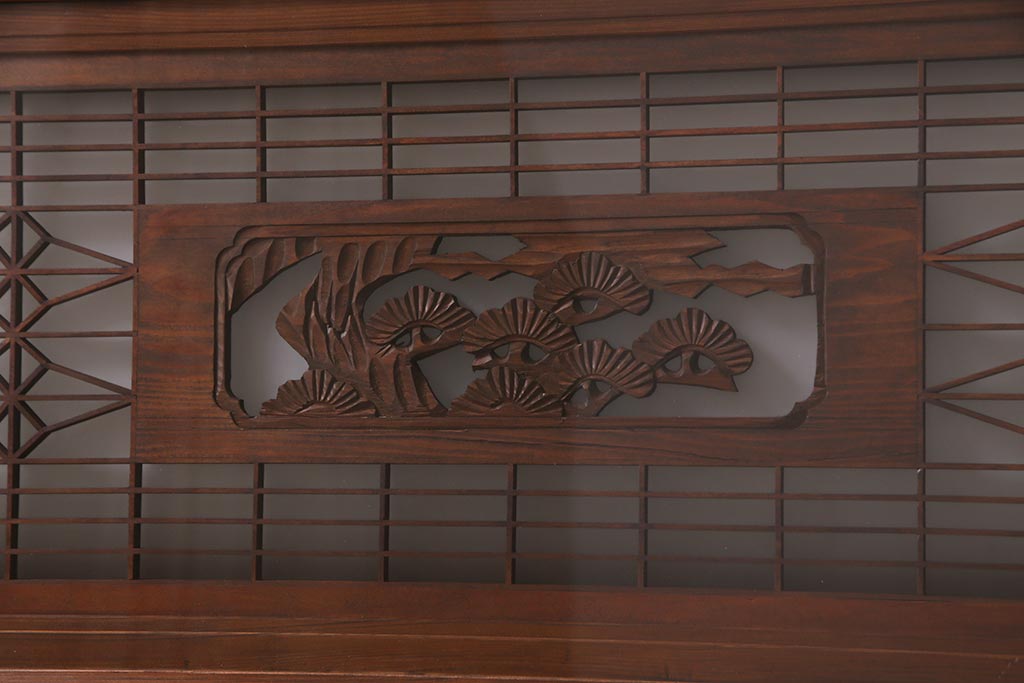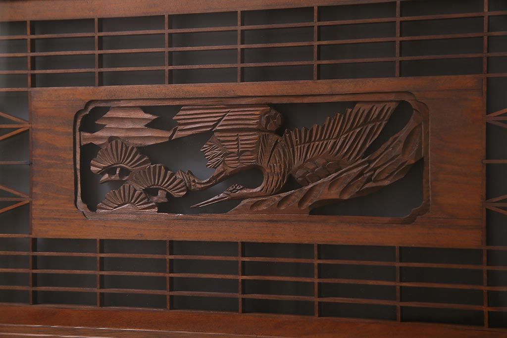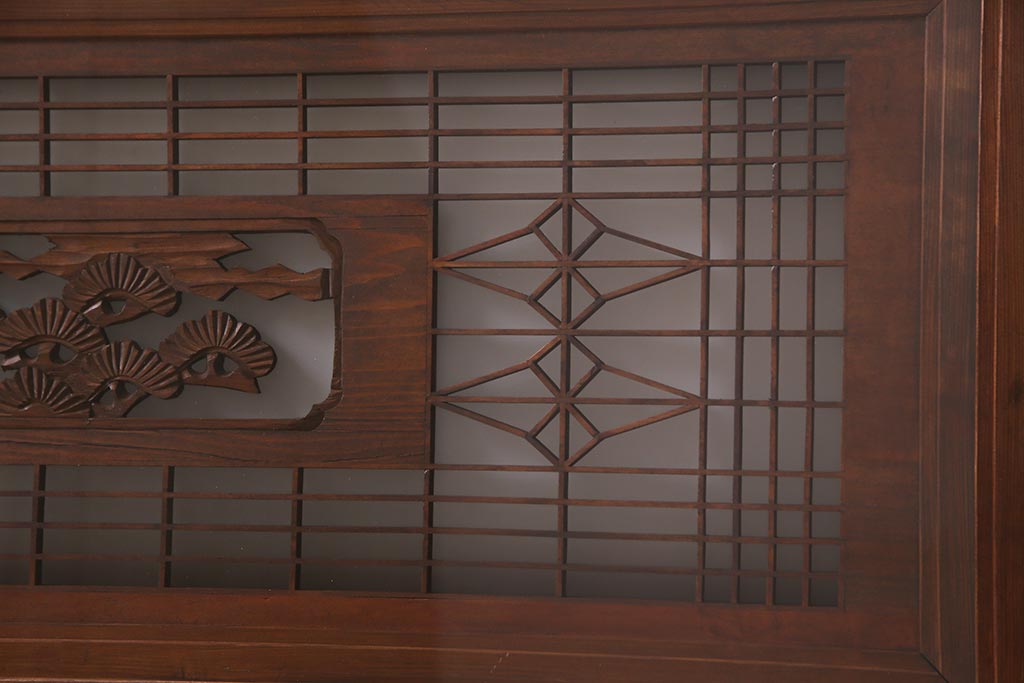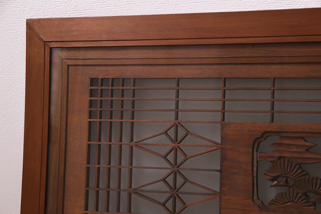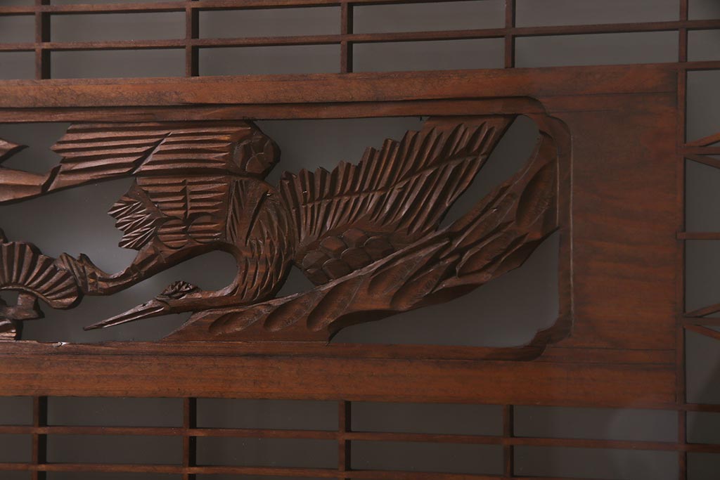 アンティーク建具 繊細な組子と鶴と松の彫刻が見事な欄間(明り取り、両面ガラス)(R-038206)です。