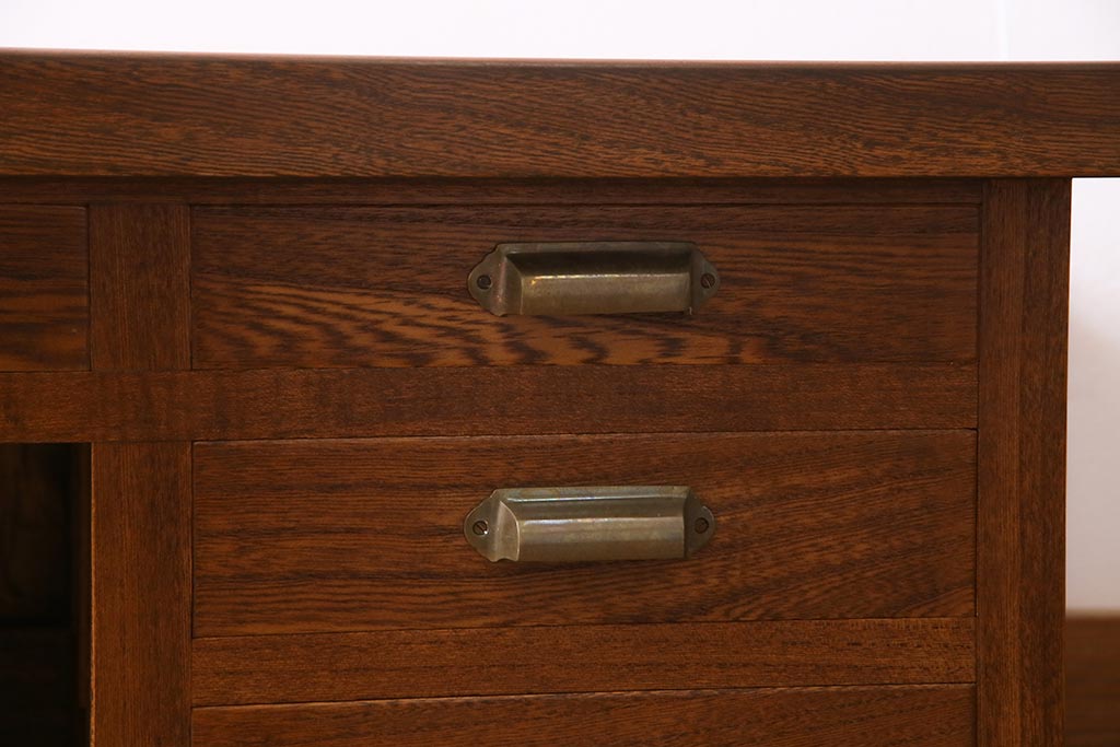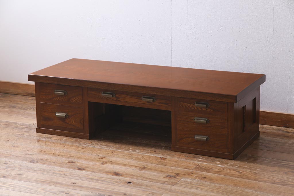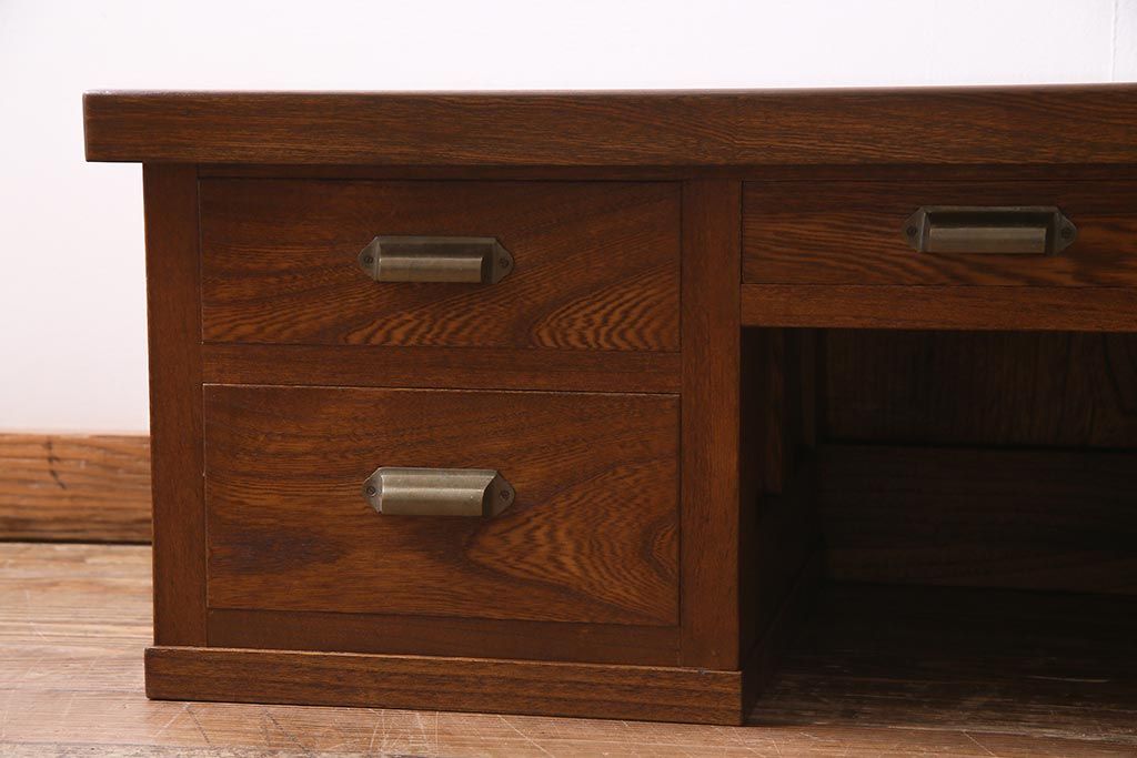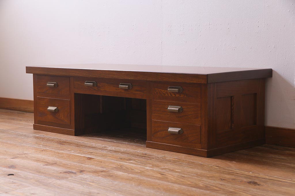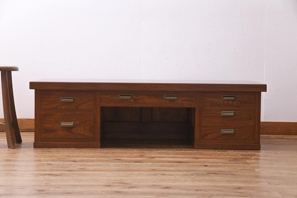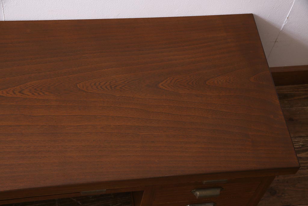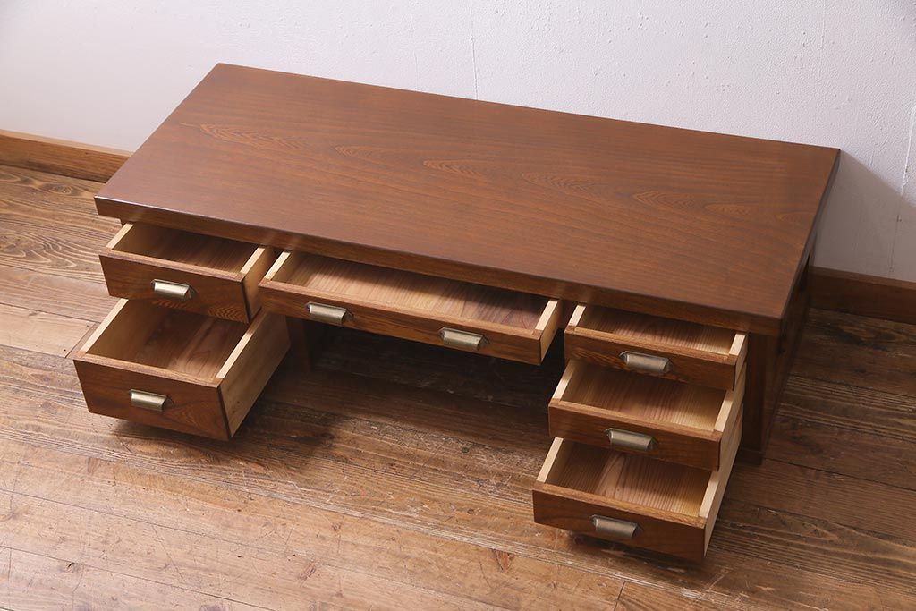 デスク> 文机・座机 > ビンテージ家具 和製ビンテージ 総くるみ無垢材 天板一枚板 杢目が美しい文机(両袖机、机、座卓)(R-038249)