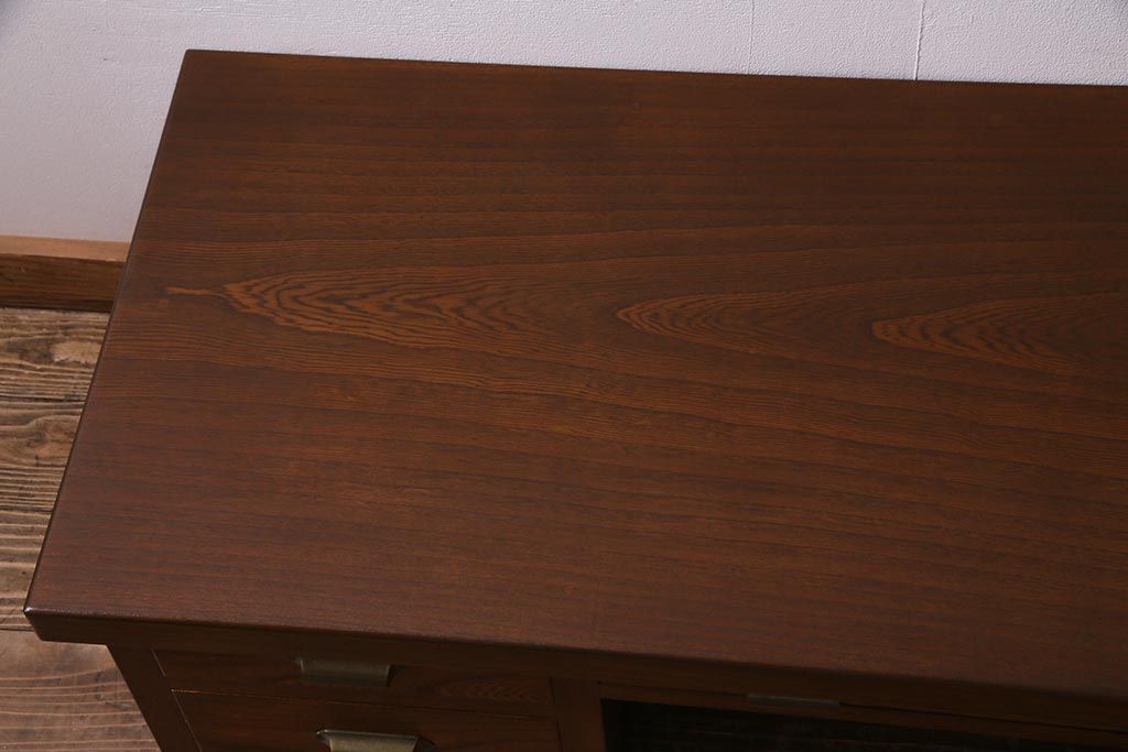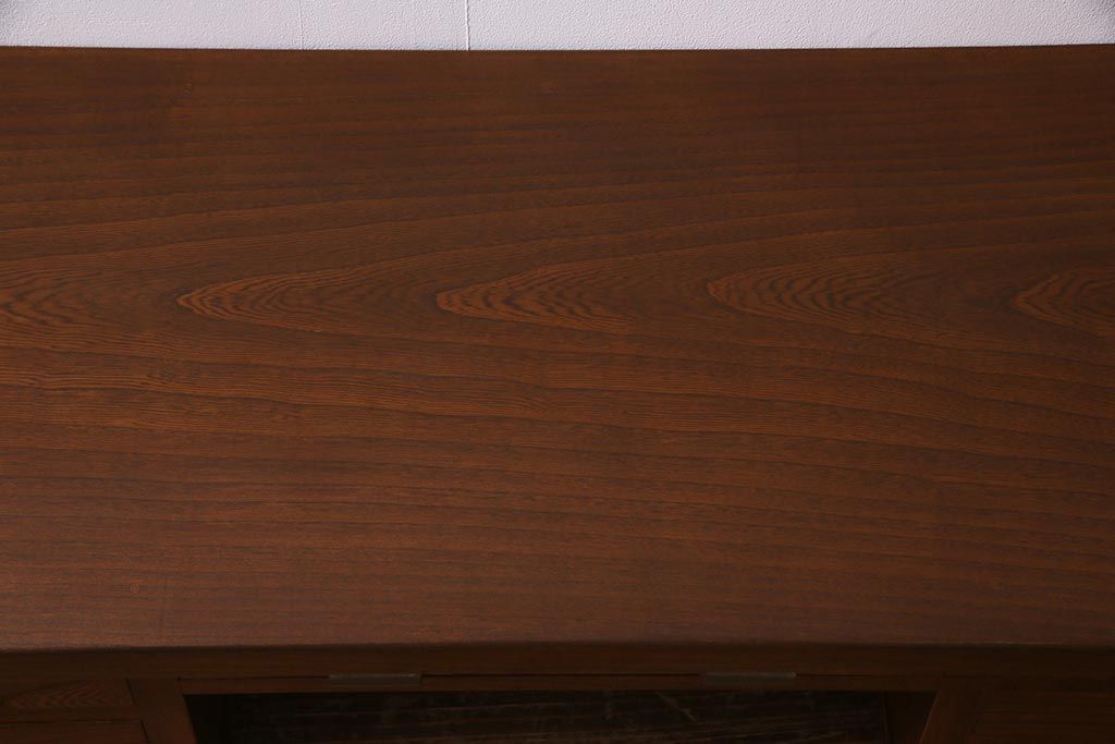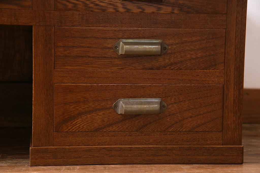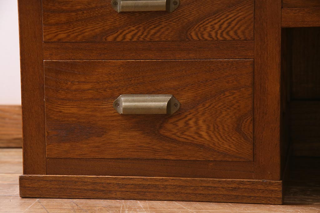 デスク> 片袖机・両袖机 > ビンテージ家具 和製ビンテージ 総くるみ無垢材 天板一枚板 杢目が美しい文机(両袖机、机、座卓)(R-038249)