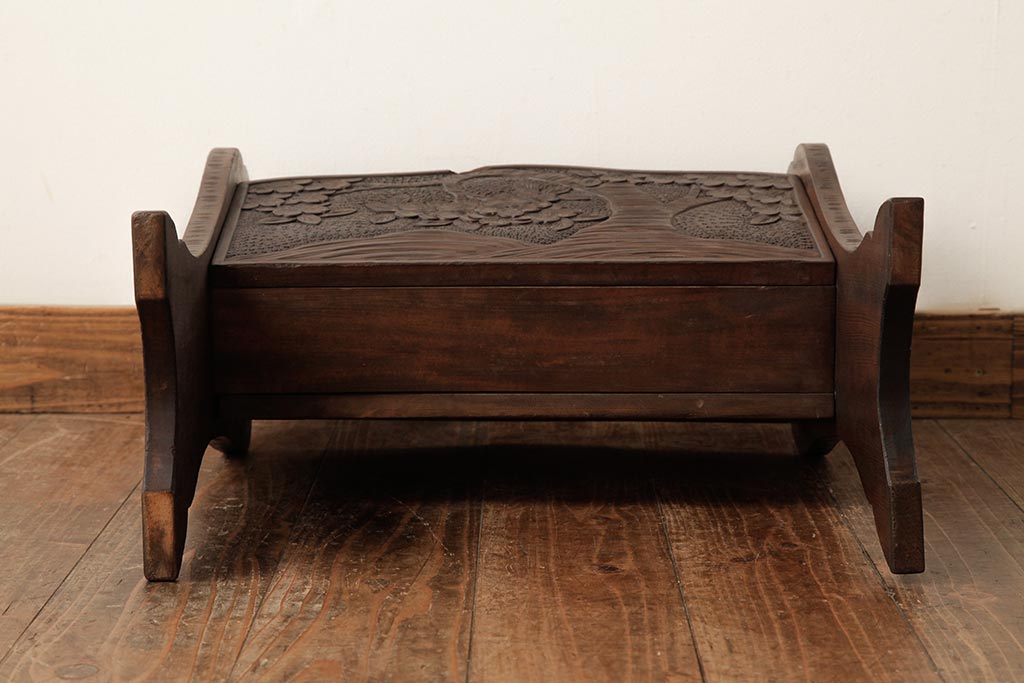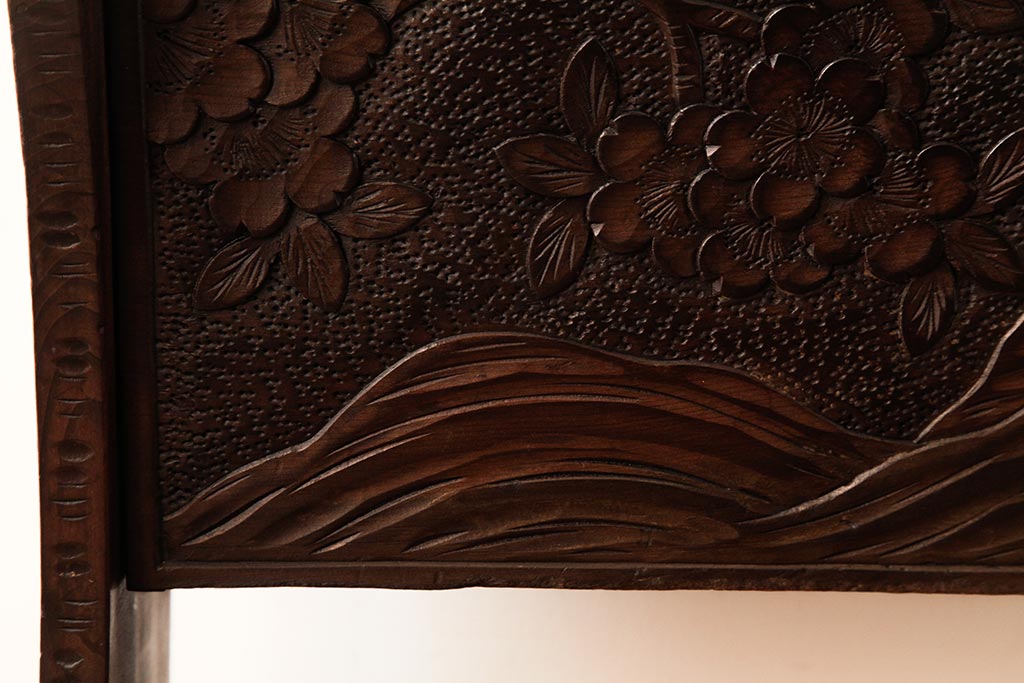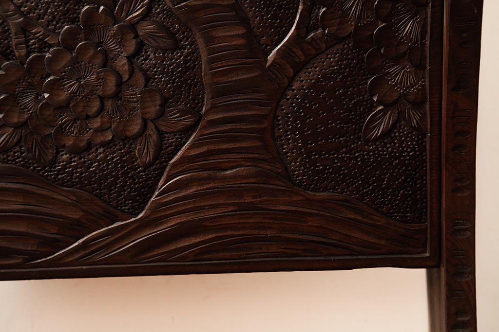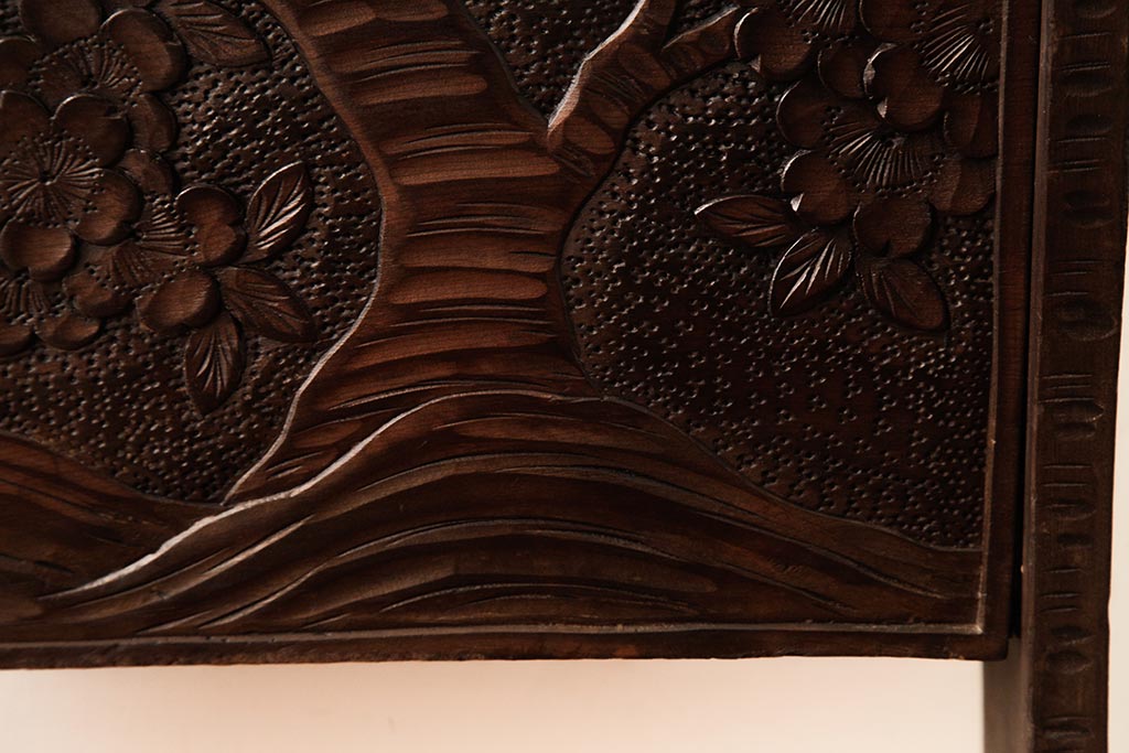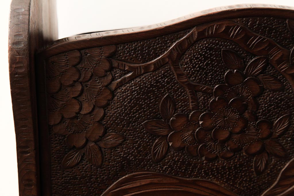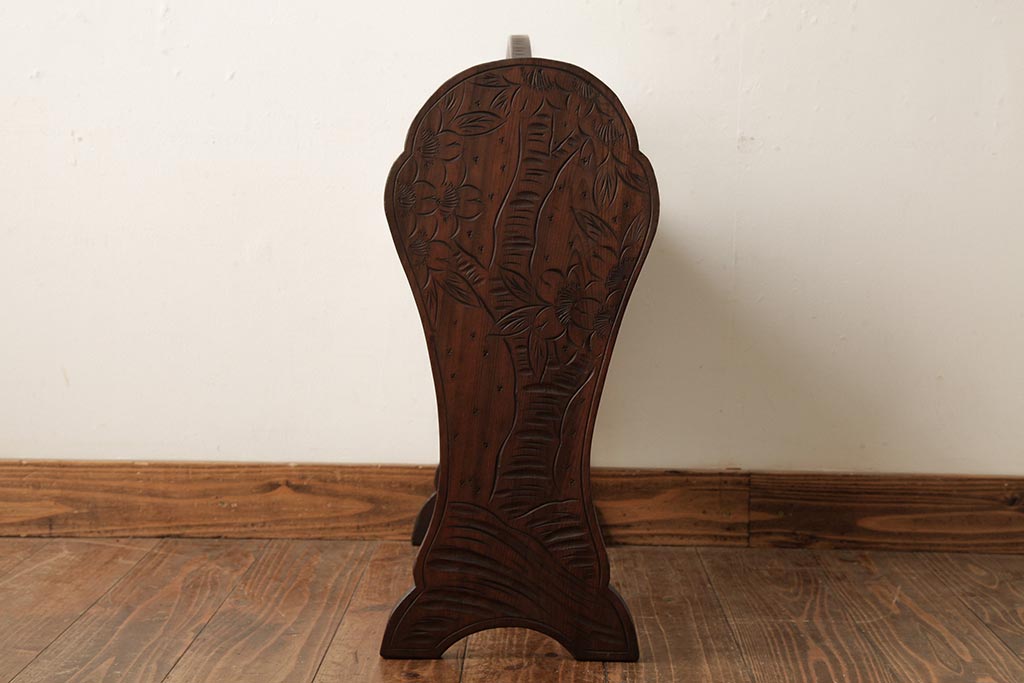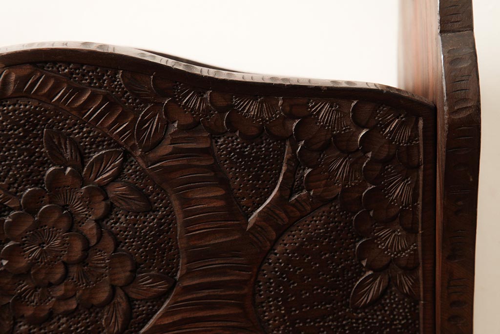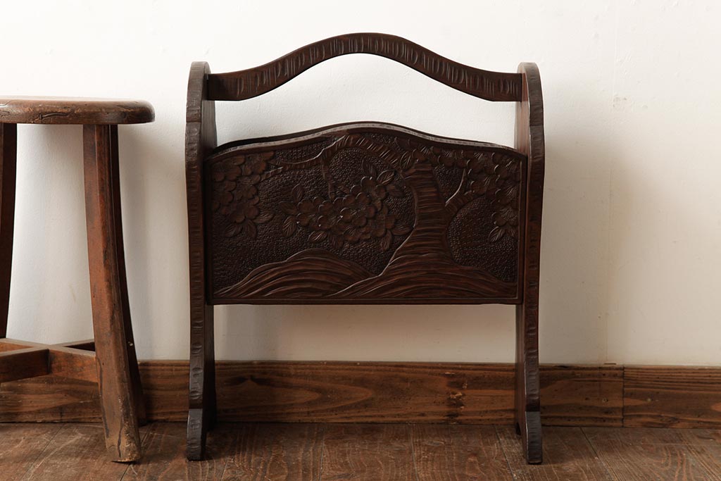 ビンテージ家具 伝統工芸 軽井沢彫り 桜の彫りが優美な印象のマガジンラック(本立て、収納)(R-038255)です。