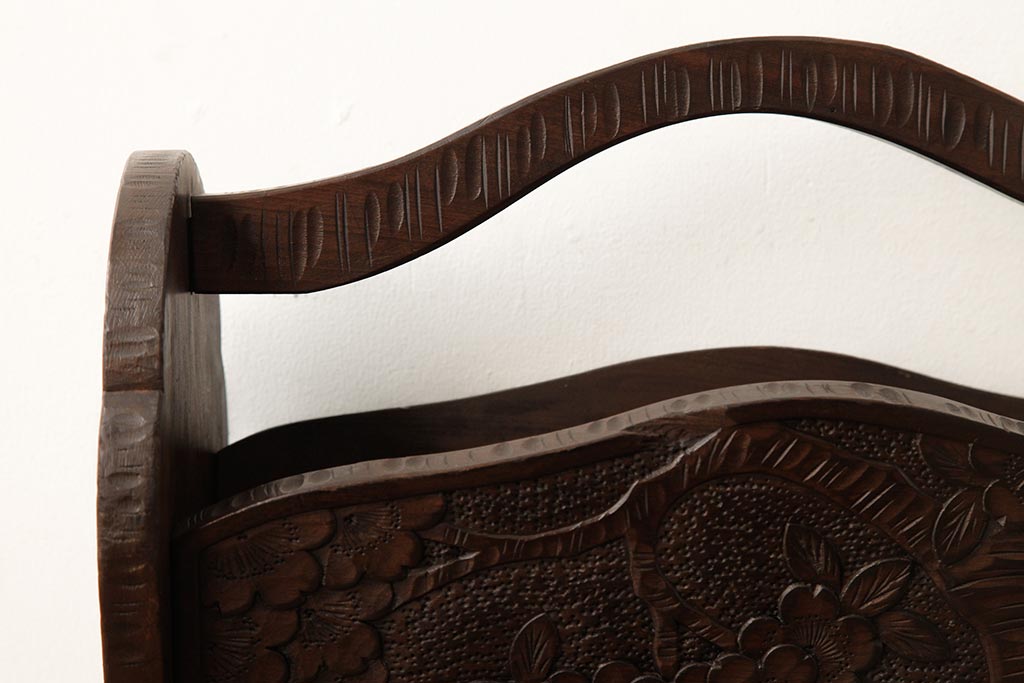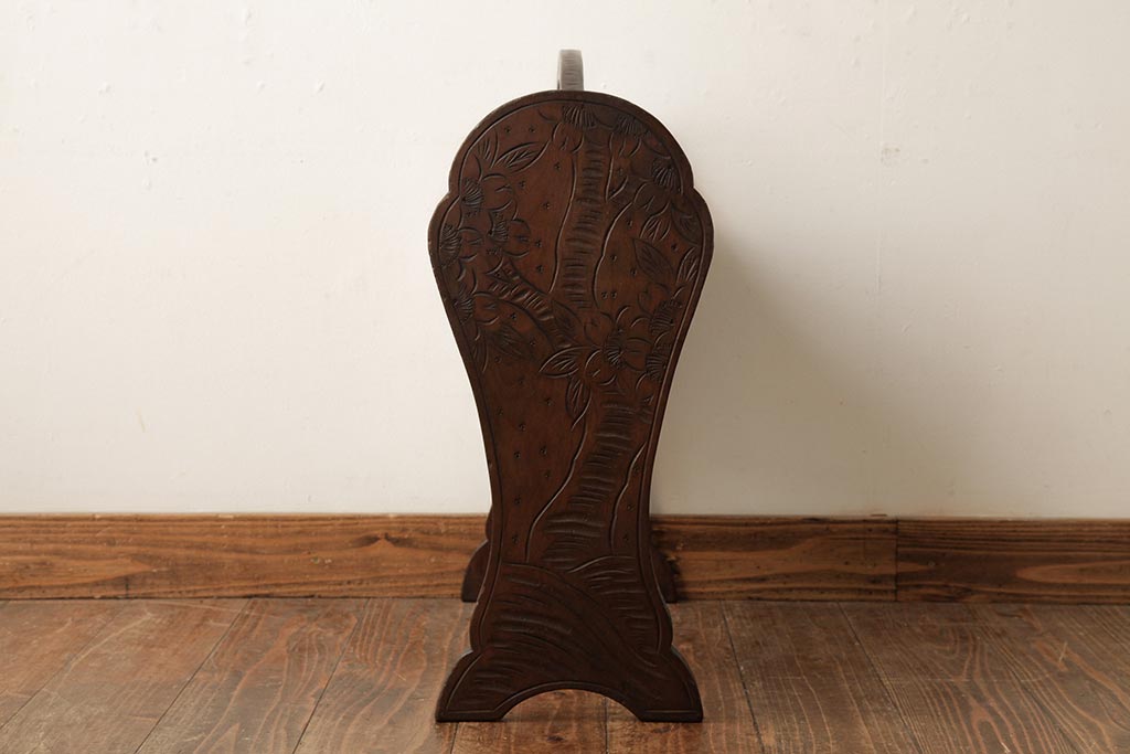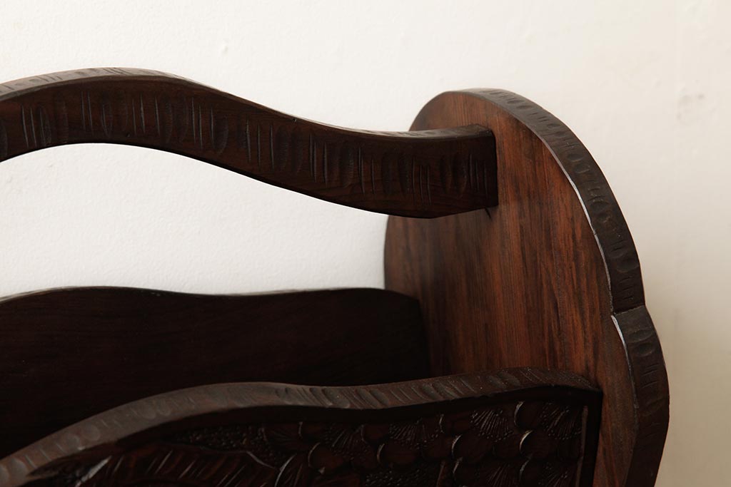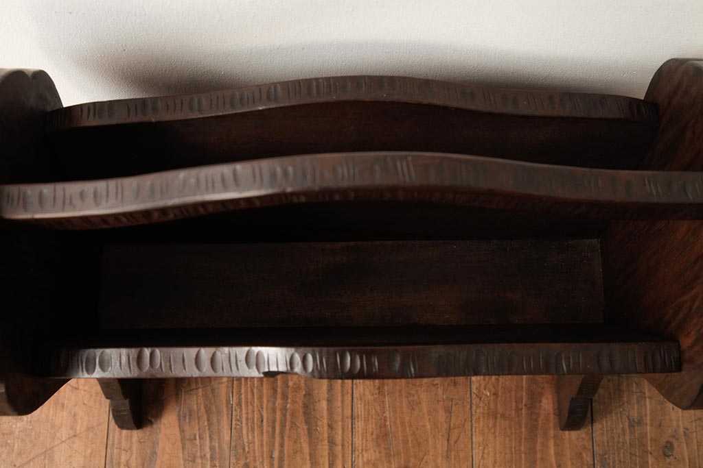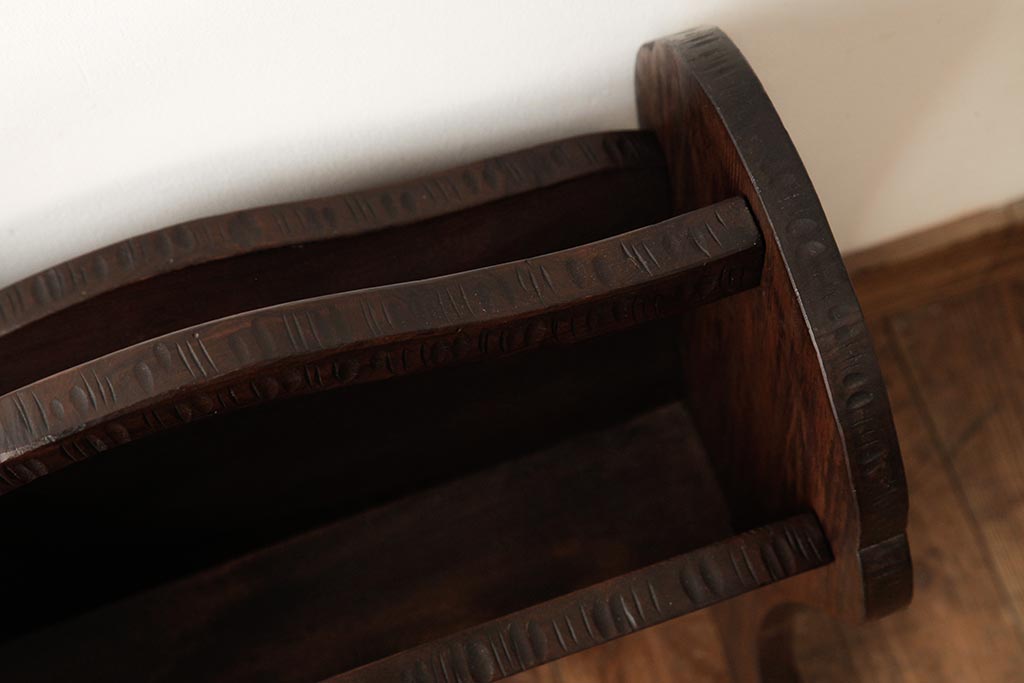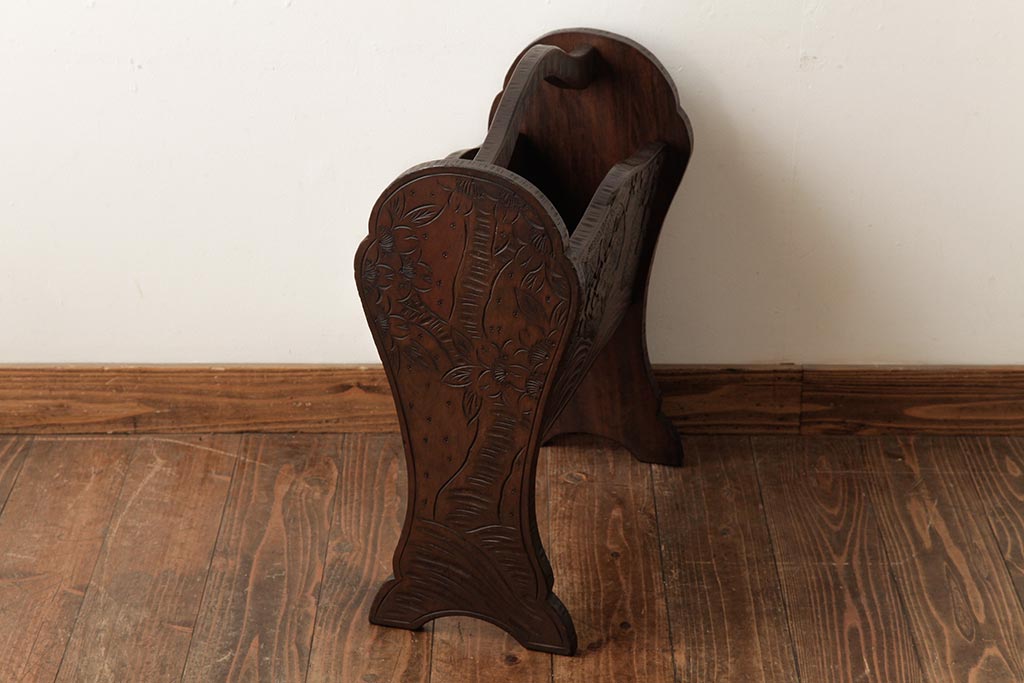 ビンテージ家具 伝統工芸 軽井沢彫り 桜の彫りが優美な印象のマガジンラック(本立て、収納、ヴィンテージ)(R-038255)
