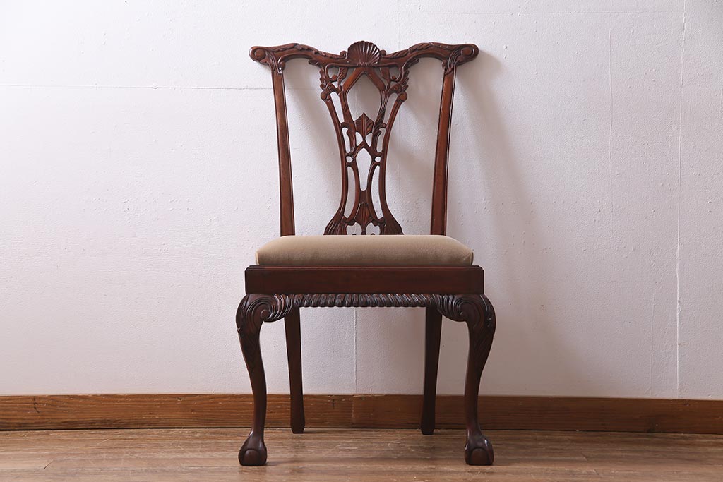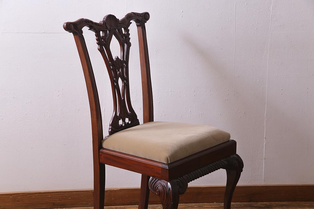 アンティーク家具 フランス マホガニー材 繊細な彫りが上品な猫脚チェア(ダイニングチェア、椅子)(R-038246)です。