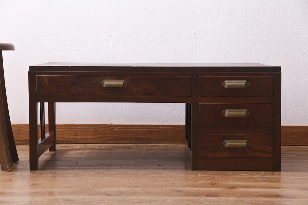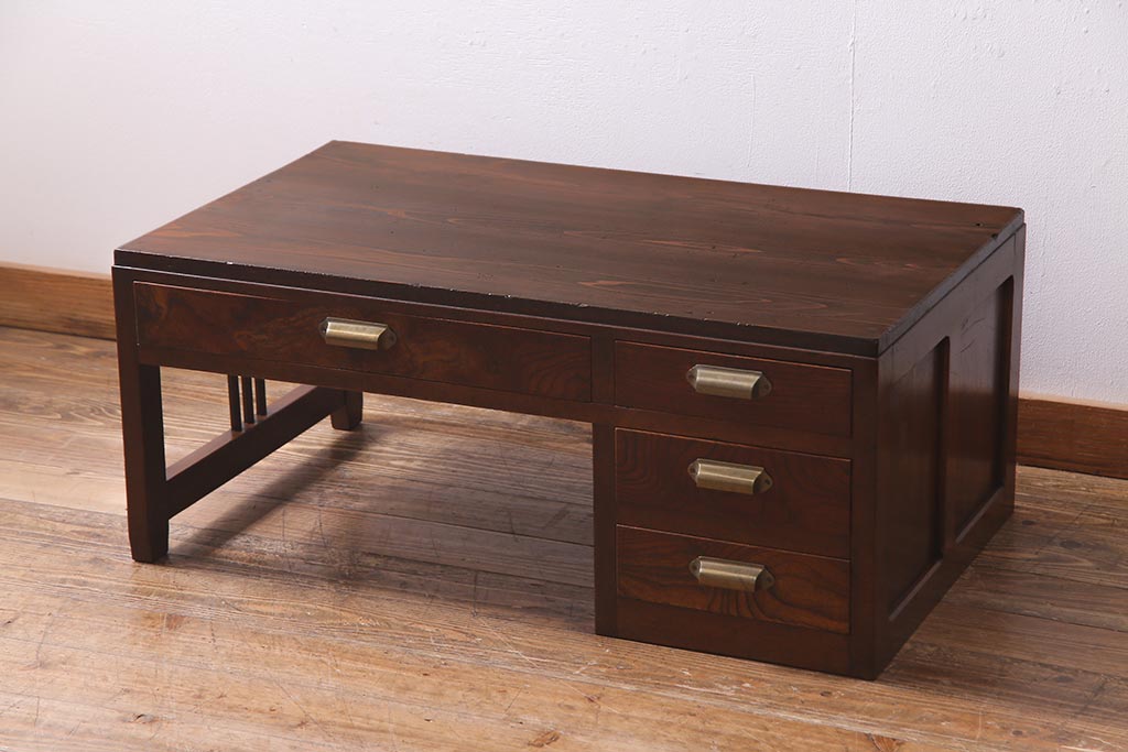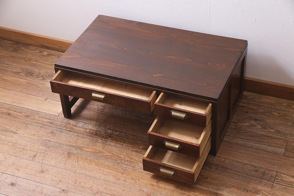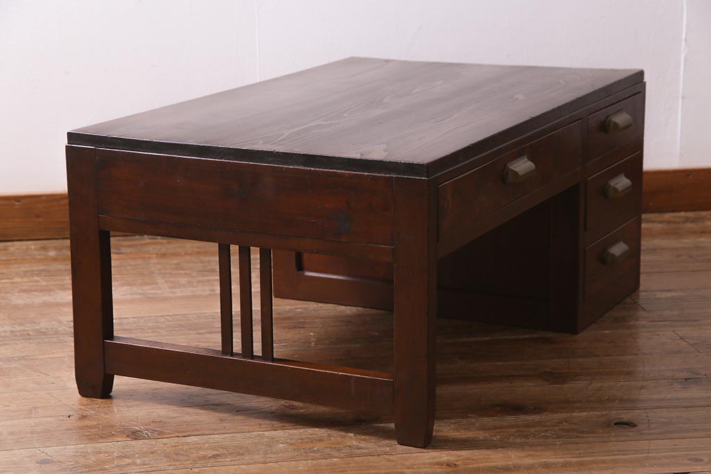 レトロ家具 昭和初期 民芸家具 味わい深い木肌が魅力の文机(片袖机、ローテーブル、座卓)(R-038247)です。