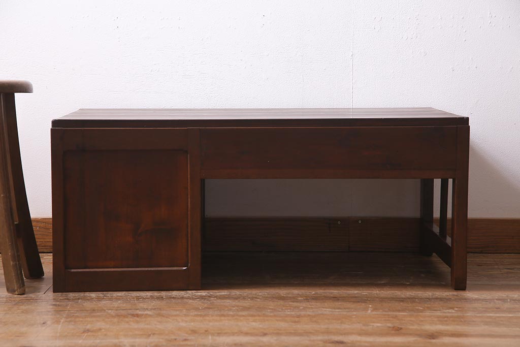 デスク> 文机・座机 > レトロ家具 昭和初期 民芸家具 味わい深い木肌が魅力の文机(片袖机、ローテーブル、座卓)(R-038247)