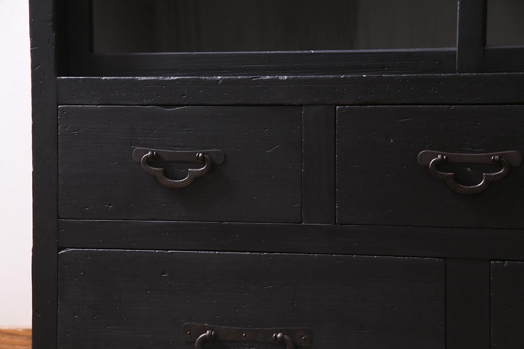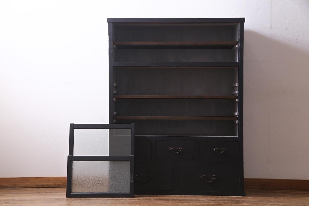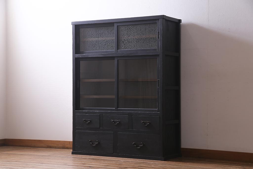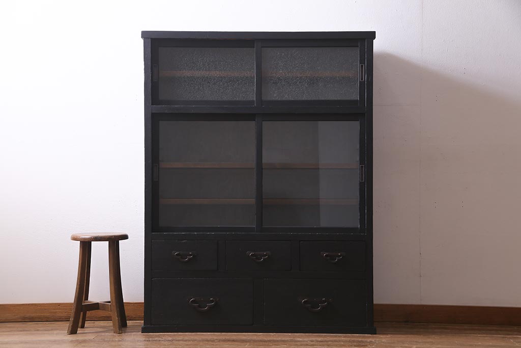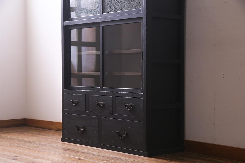 アンティーク家具 和製アンティーク 結霜ガラス入りのノスタルジックなキャビネット(戸棚、収納棚)(R-038266)